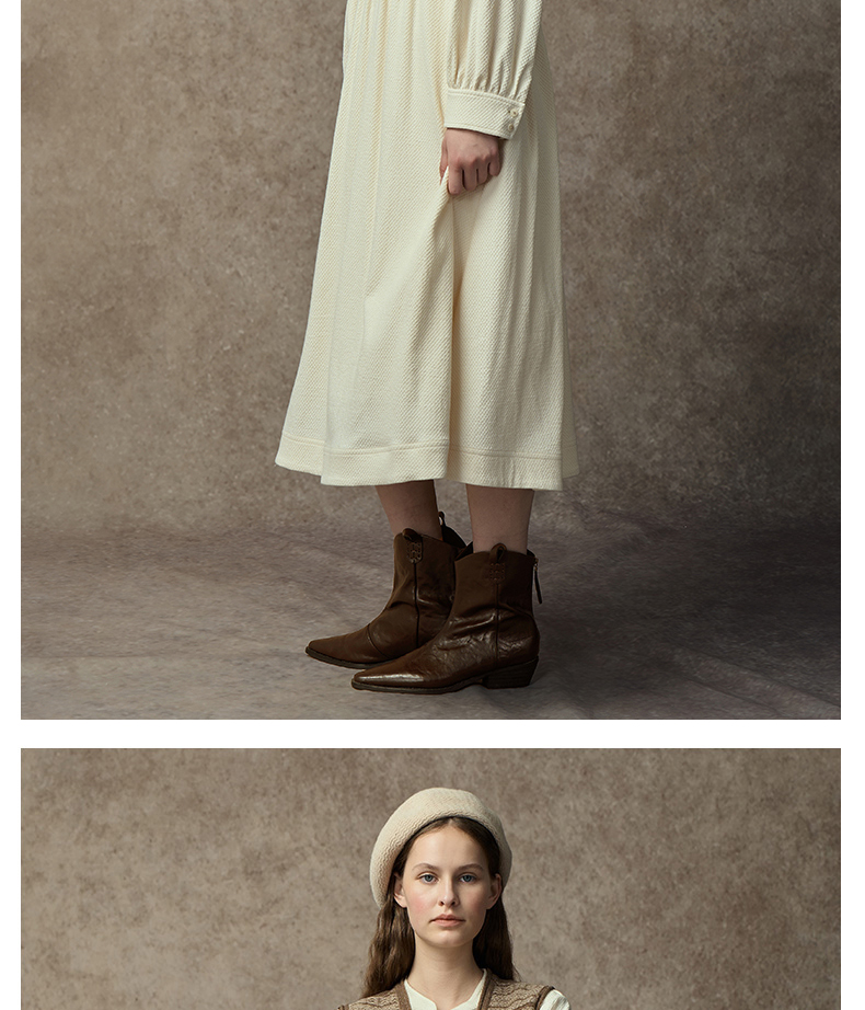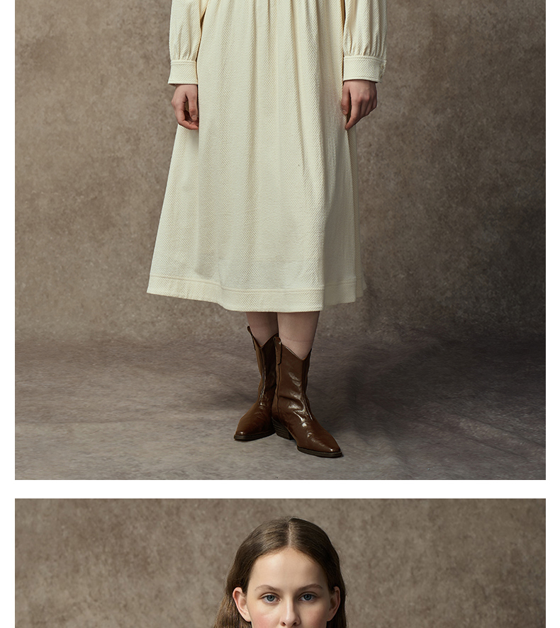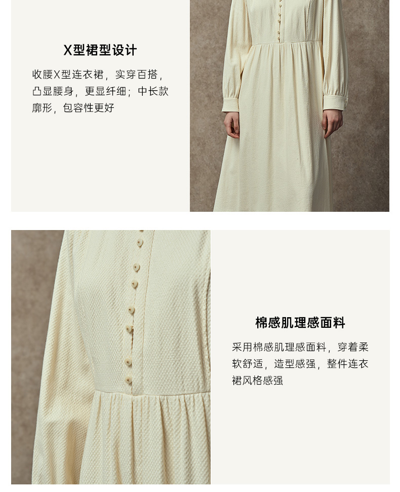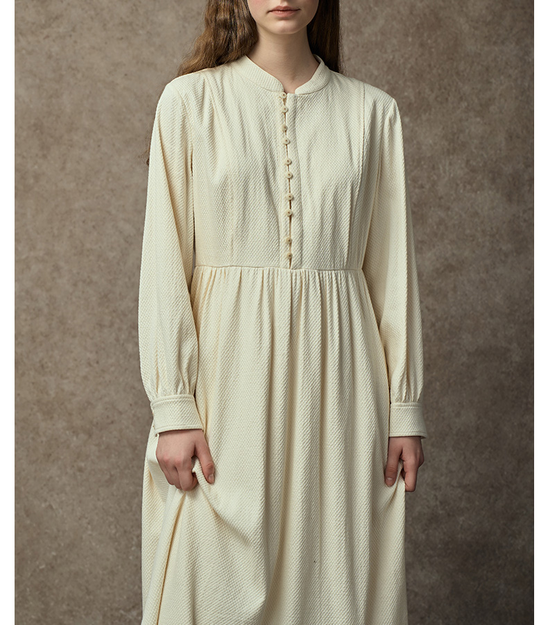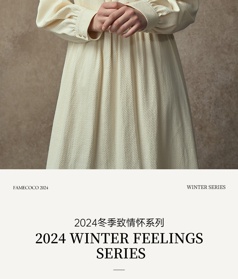 Famecoco范可儿中式小立领棉质加厚高腰长裙复古文艺打底连衣裙FAC8FA009