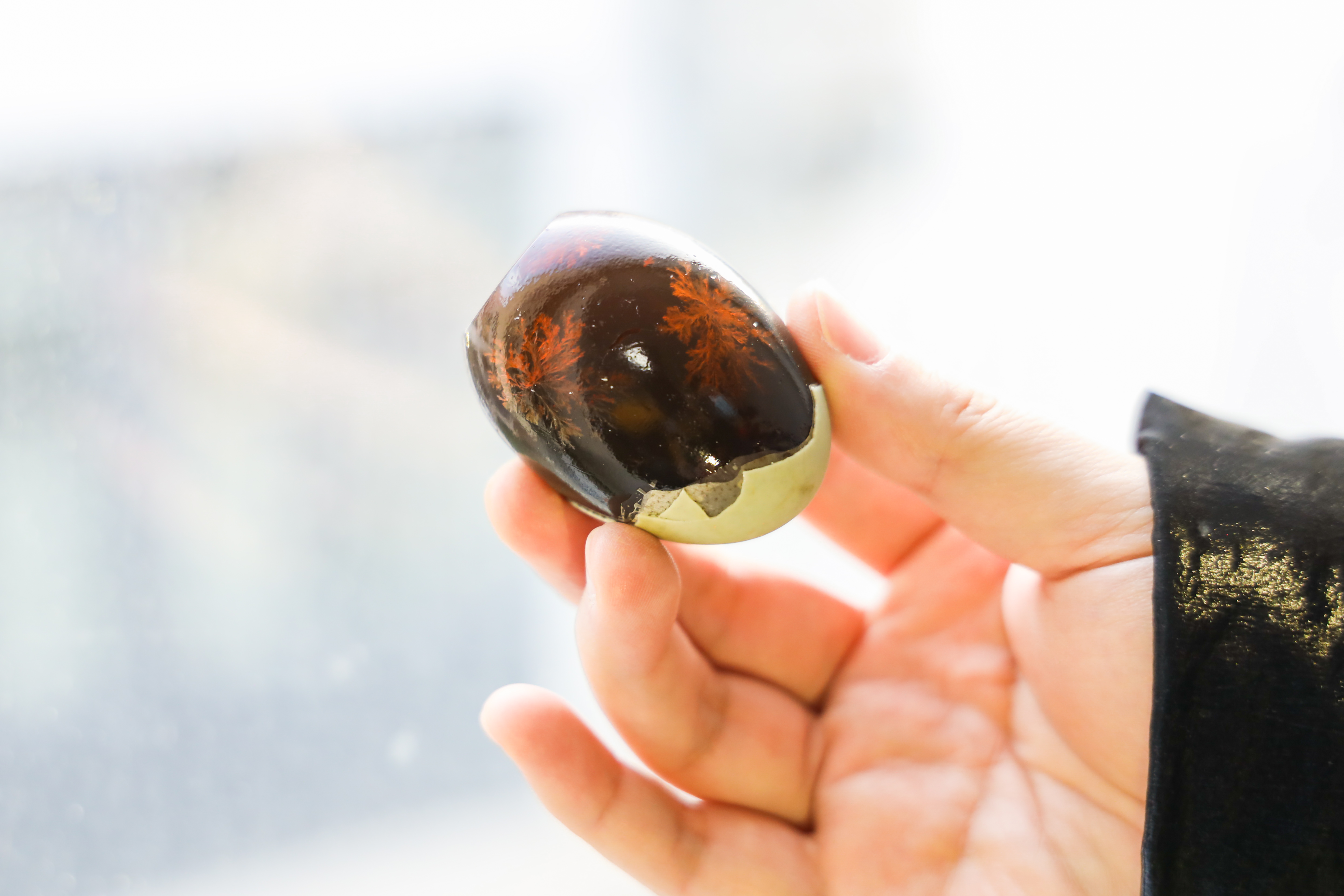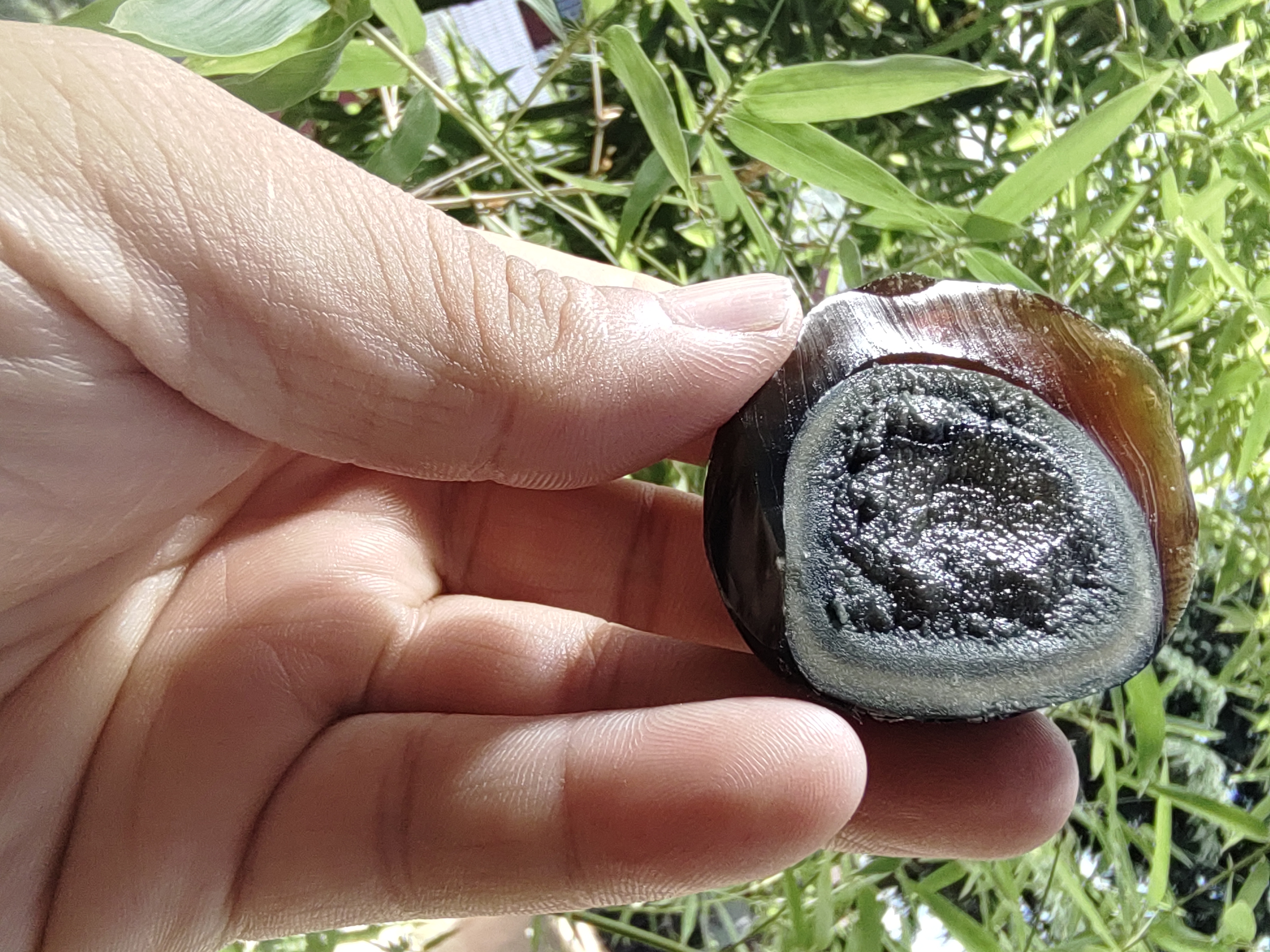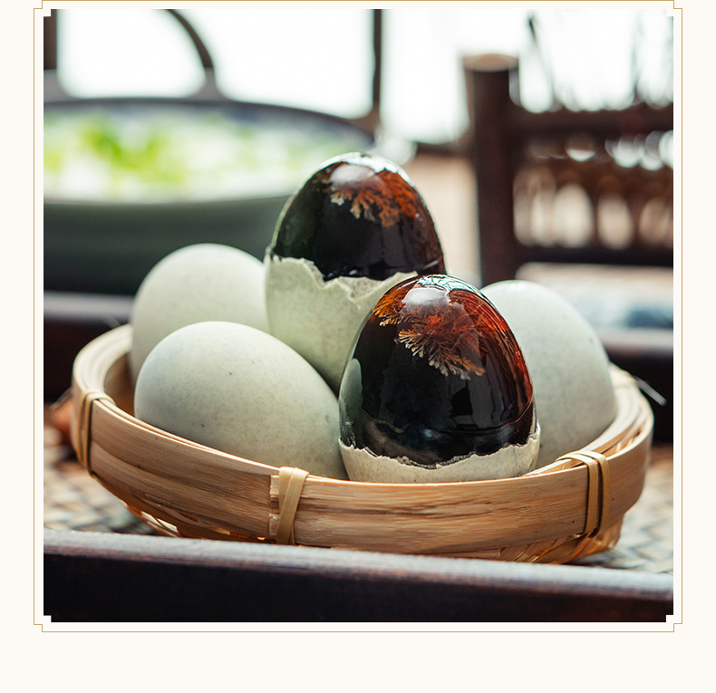 1️⃣ 2个人吃4个松花蛋,把蛋直接剥壳切开成月牙状摆入盘中。