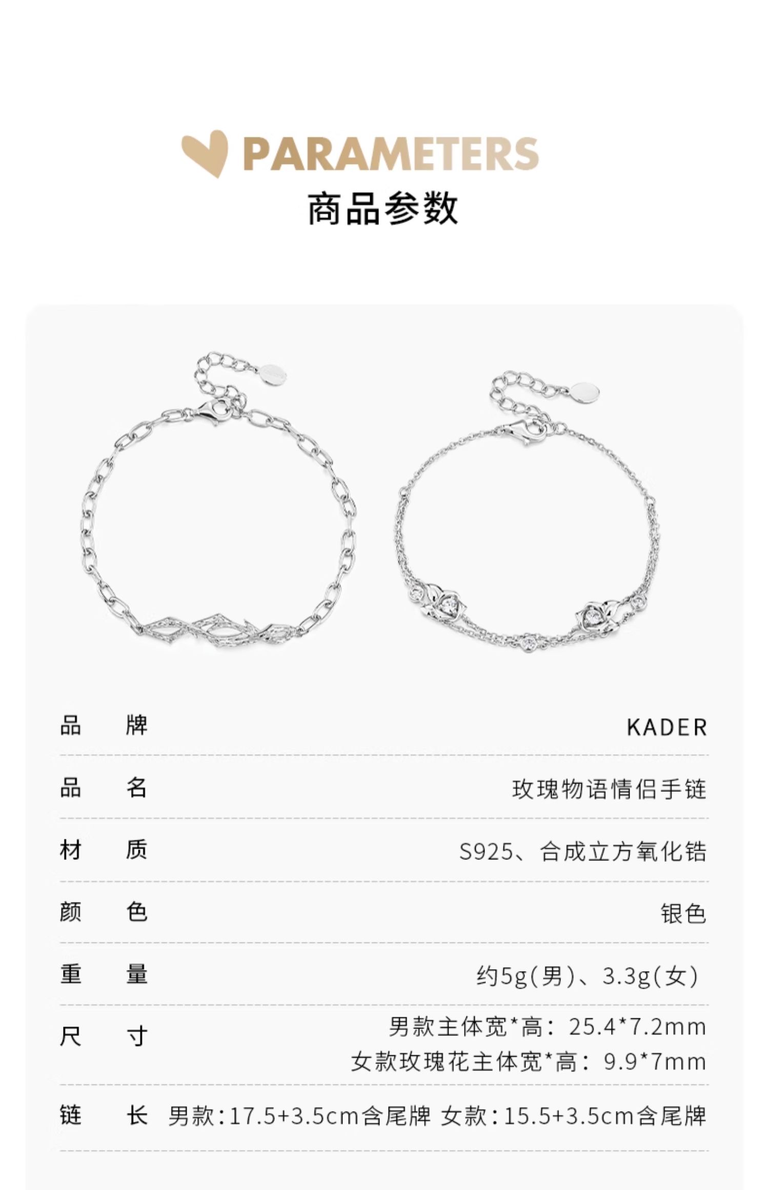 卡蒂罗玫瑰物语情侣手链女925银轻奢小众设计2023年新款生日礼物