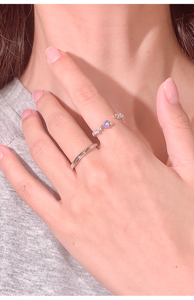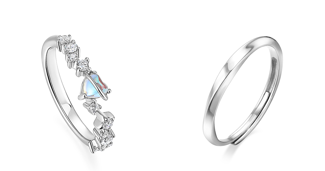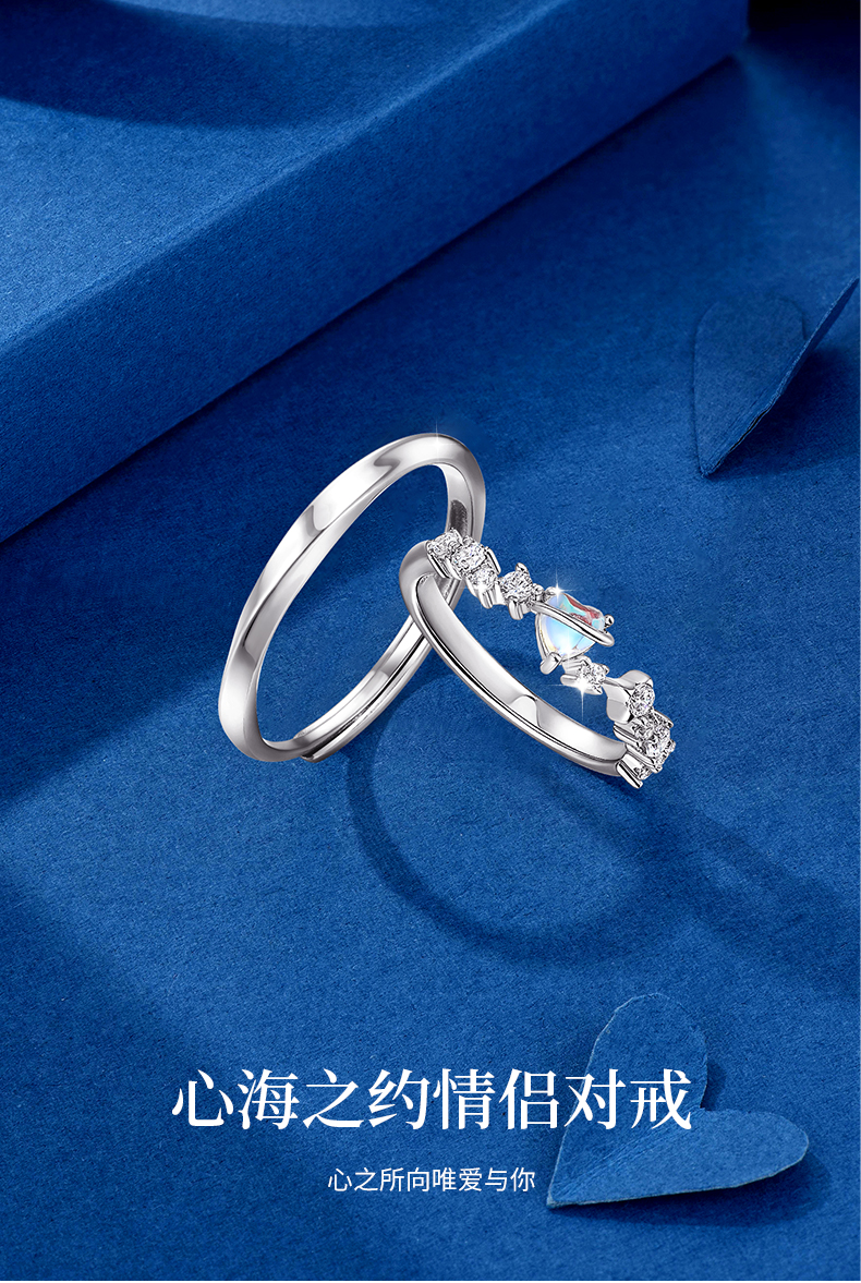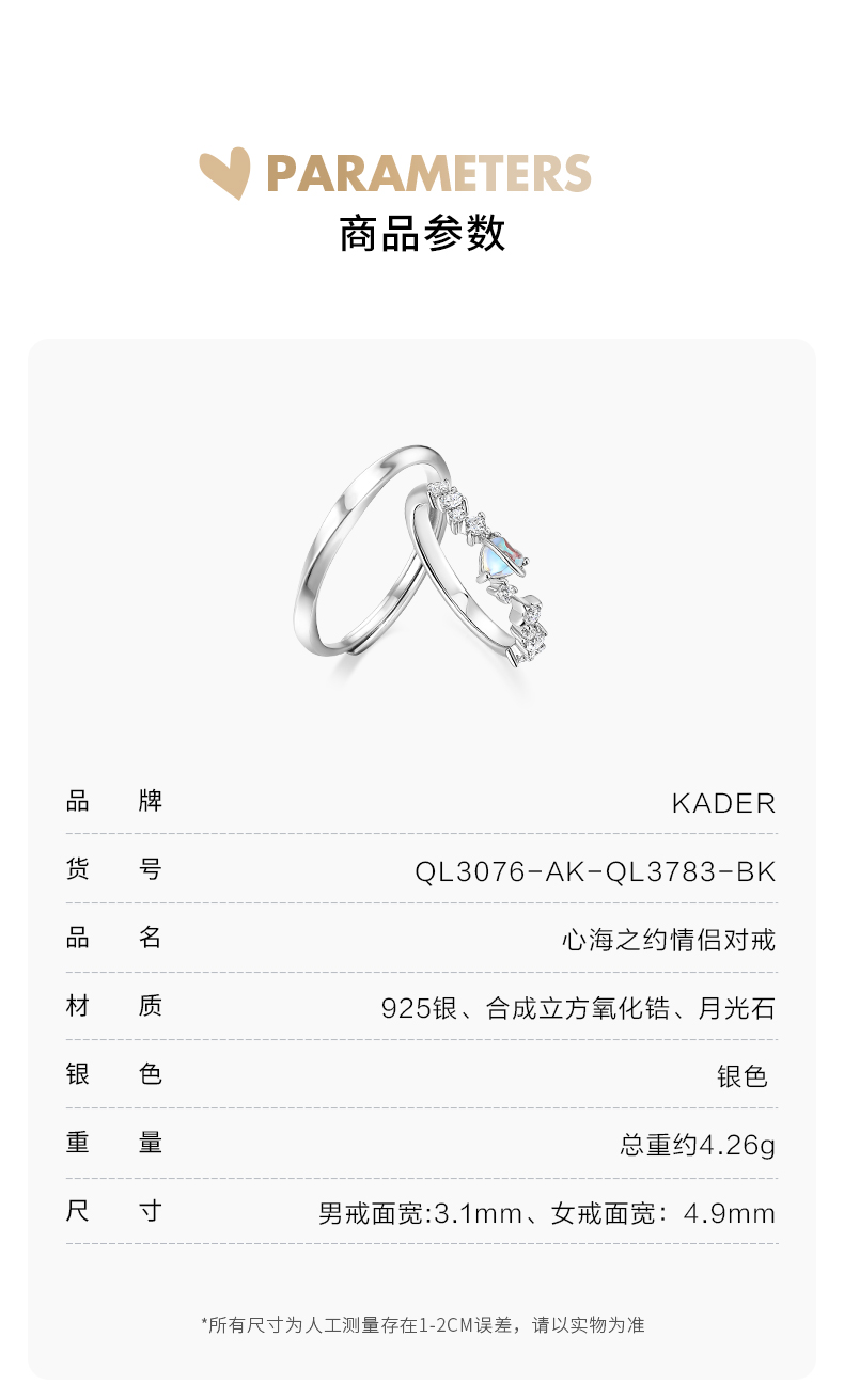 卡蒂罗/KADER 在逃公主系列 心海之约对戒 梦幻月光石经典爱心满镶锆石可调节情侣对戒 恋爱频率轻奢素圈 925银