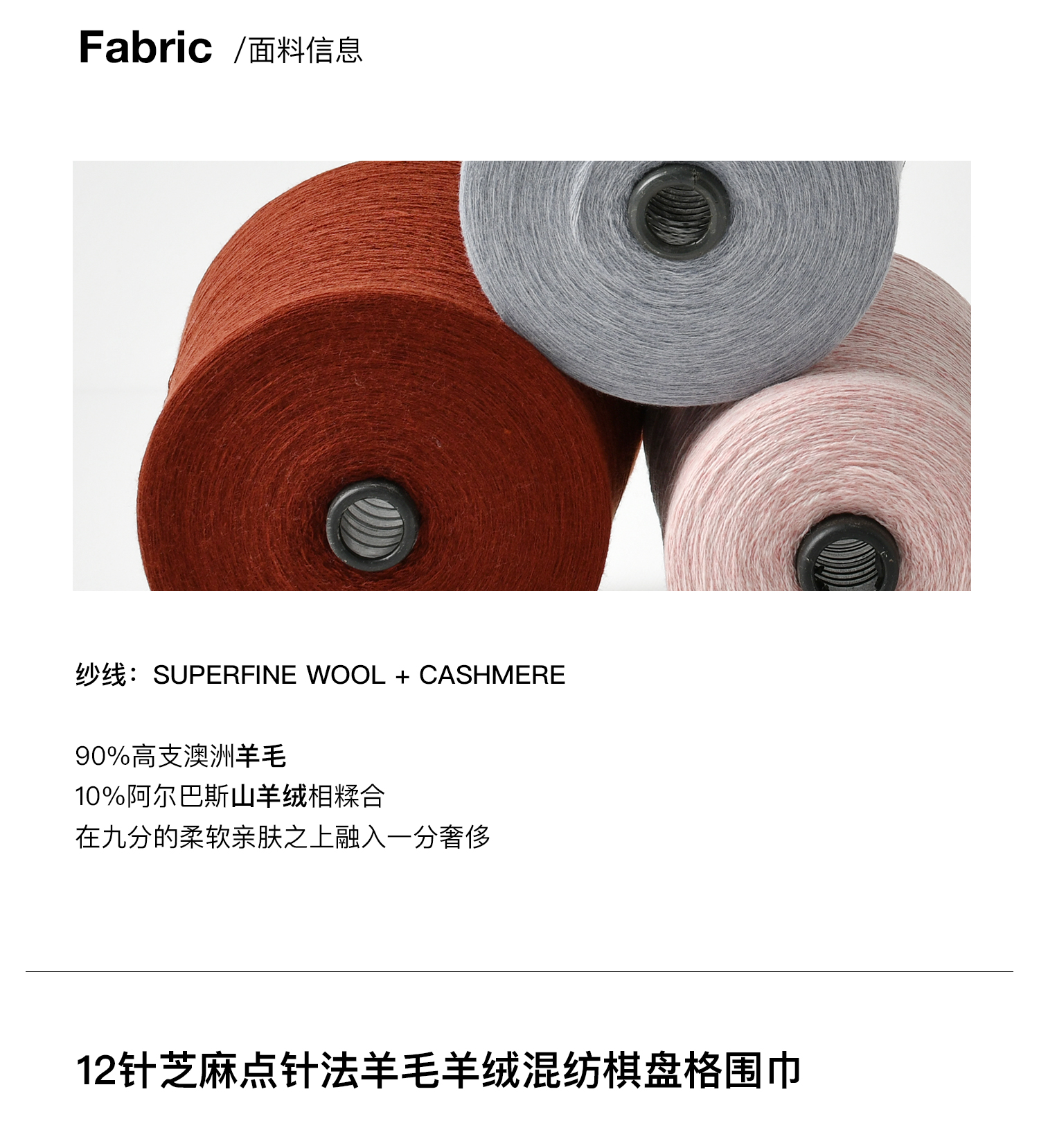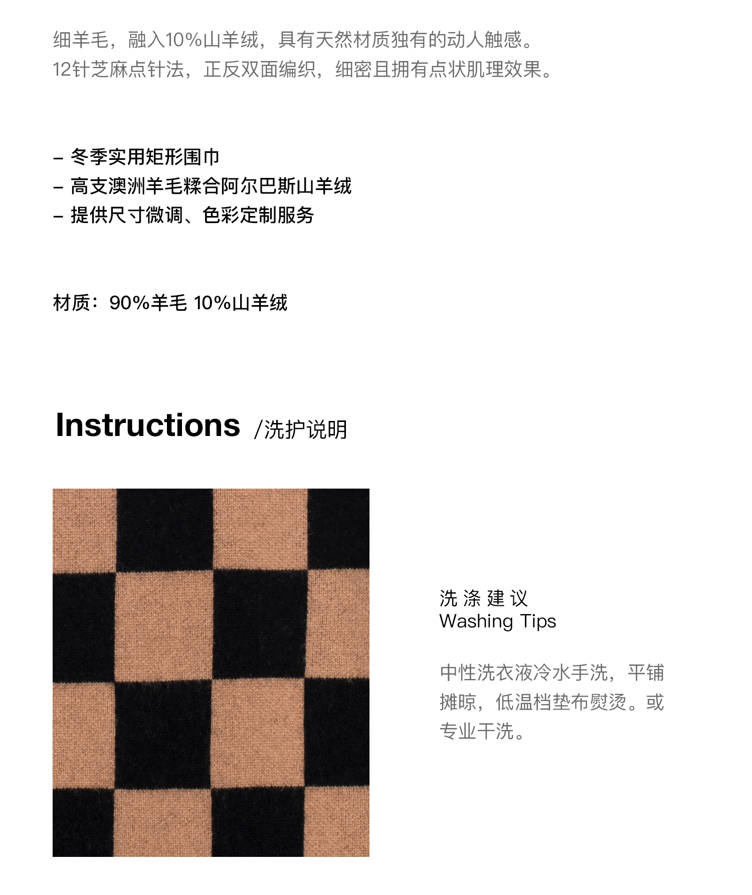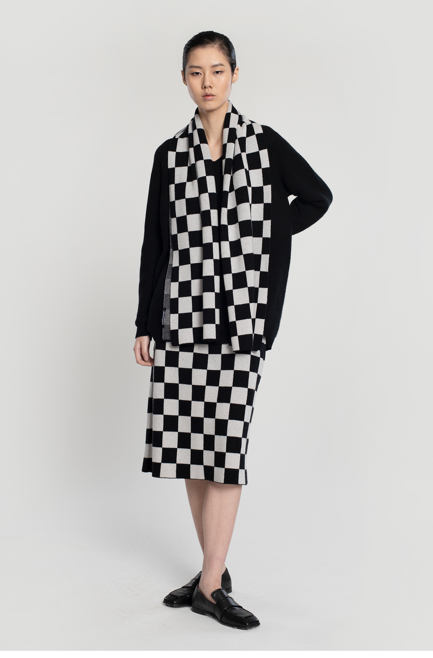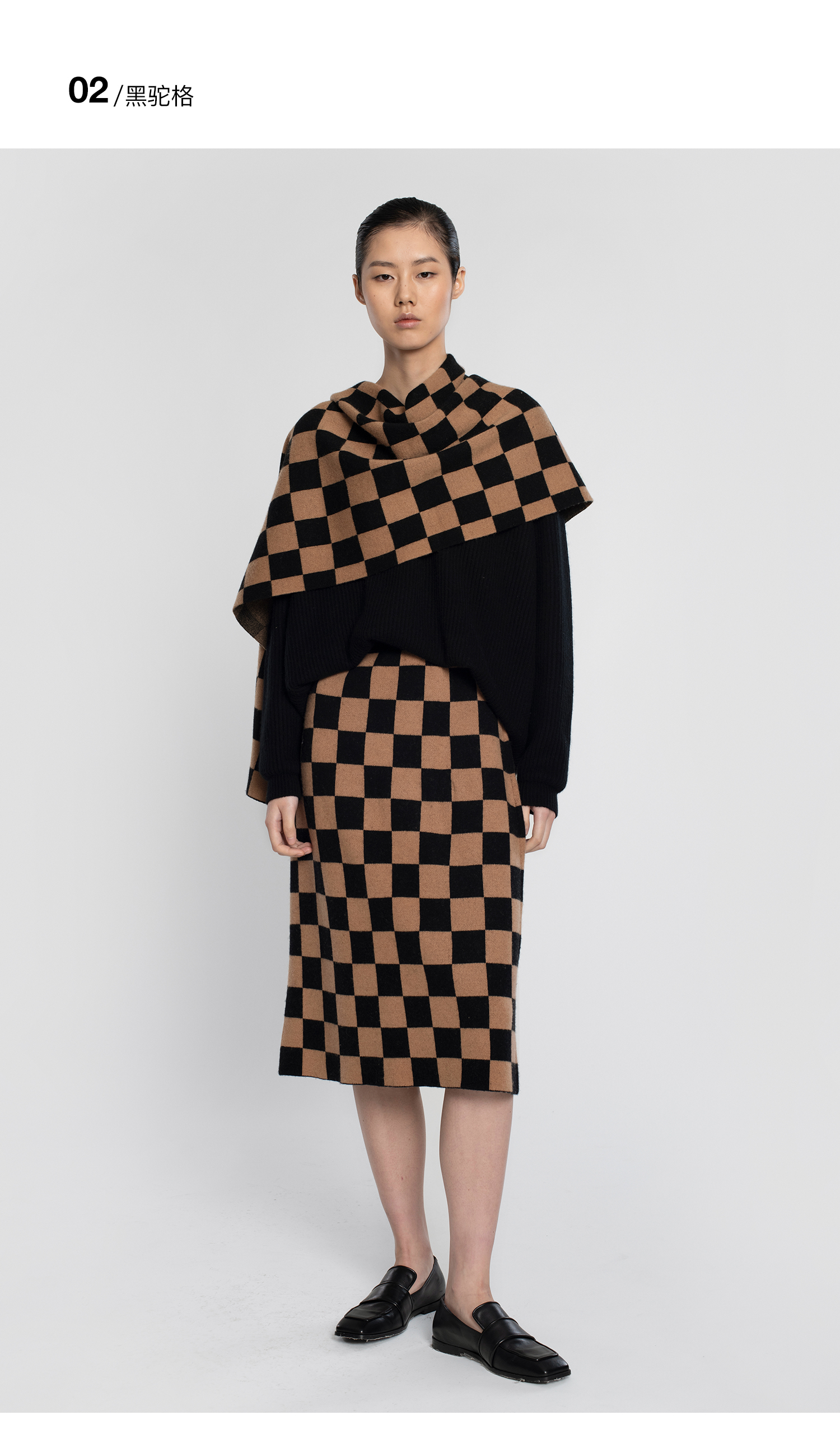 322工房羊毛混纺棋盘格针织围巾女新款冬季加厚百搭黑白格子披肩