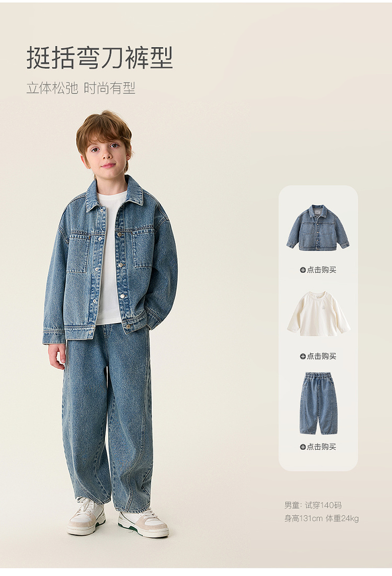 马克珍妮复古型录男女童牛仔弯刀裤2026年春装新款560131