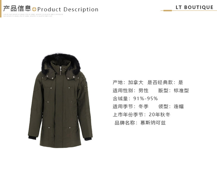 MOOSE KNUCKLES 男士金属驼鹿指关节徽标绗缝连帽羽绒服 军绿色 MK4661MP 775