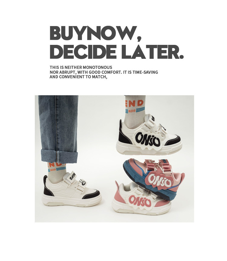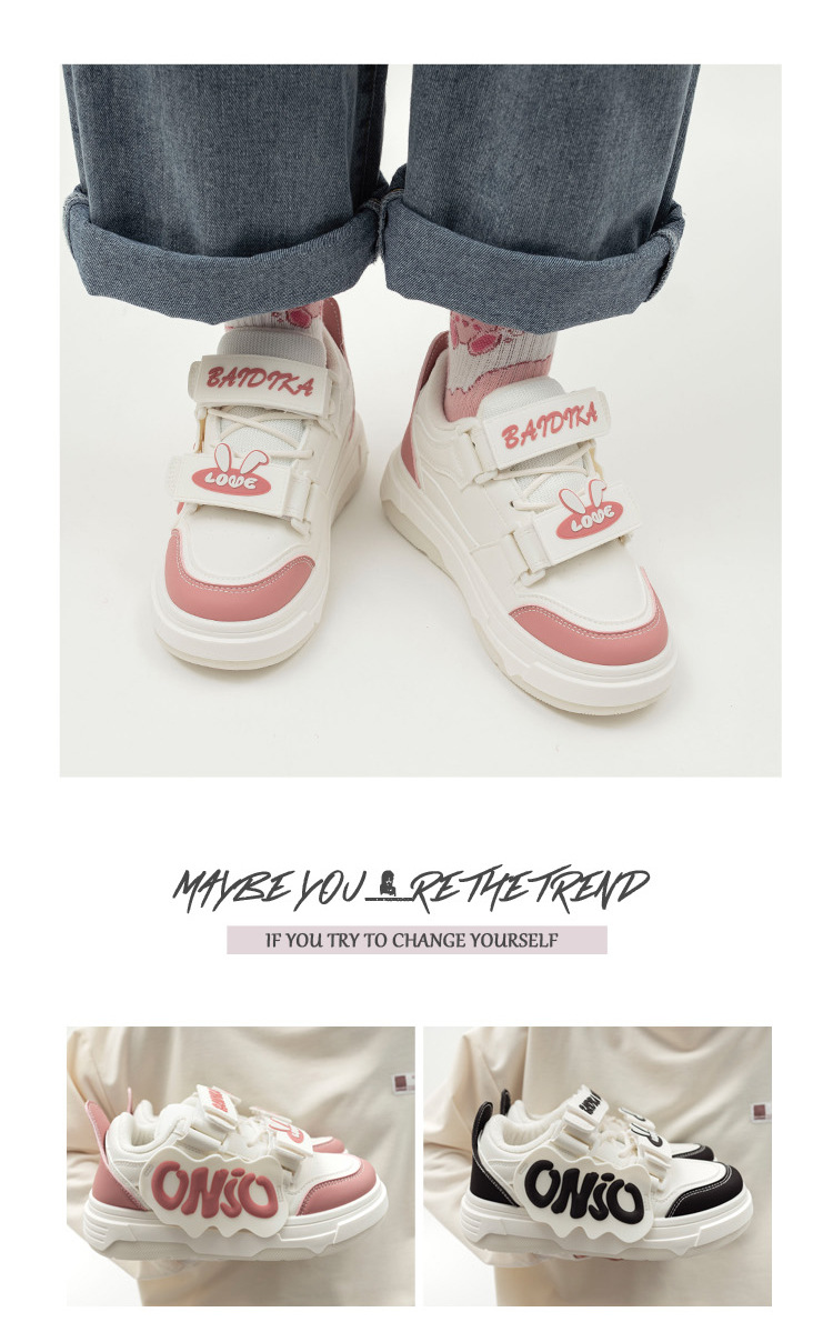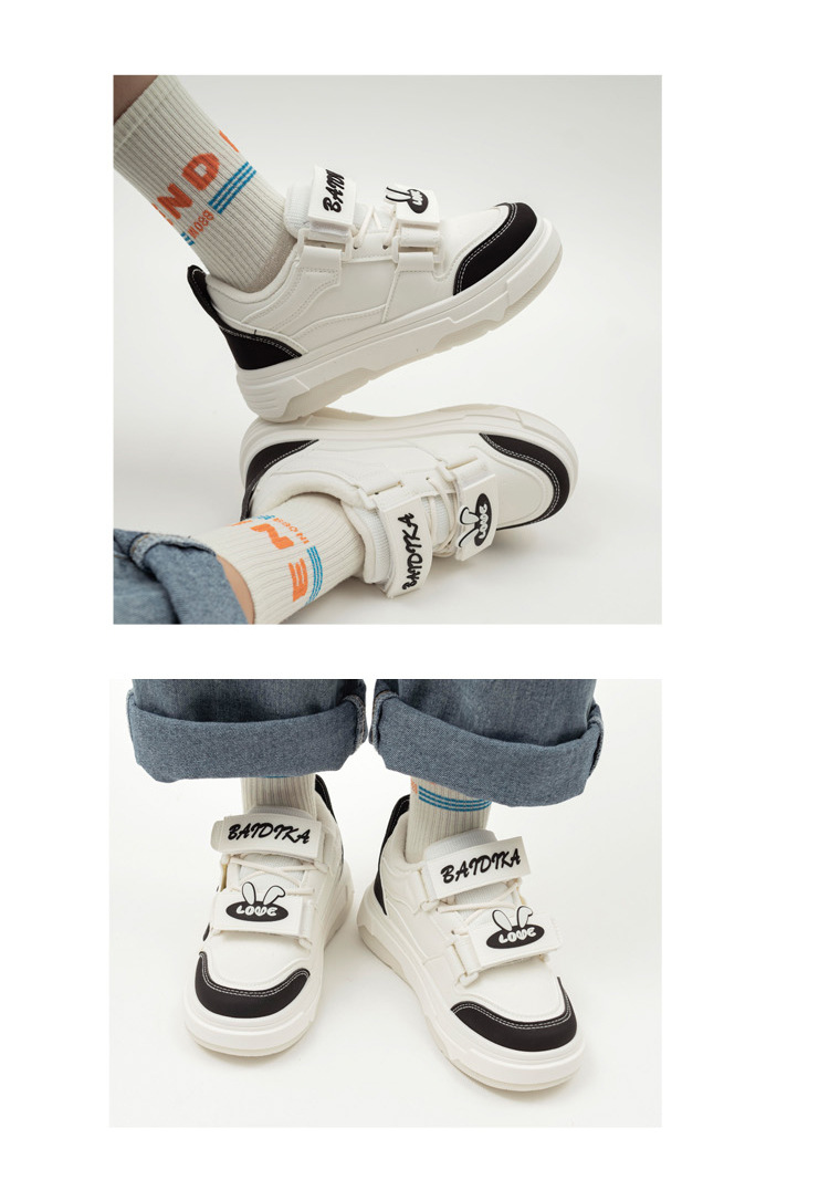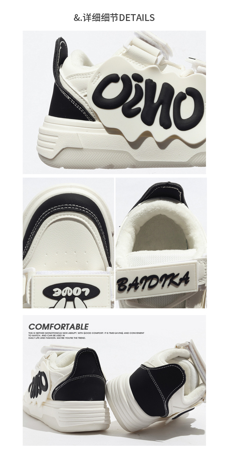 「三款配色!港风小白鞋」港风chic加绒小白鞋女 2023冬新款颜值字母魔术贴设计厚底板鞋子