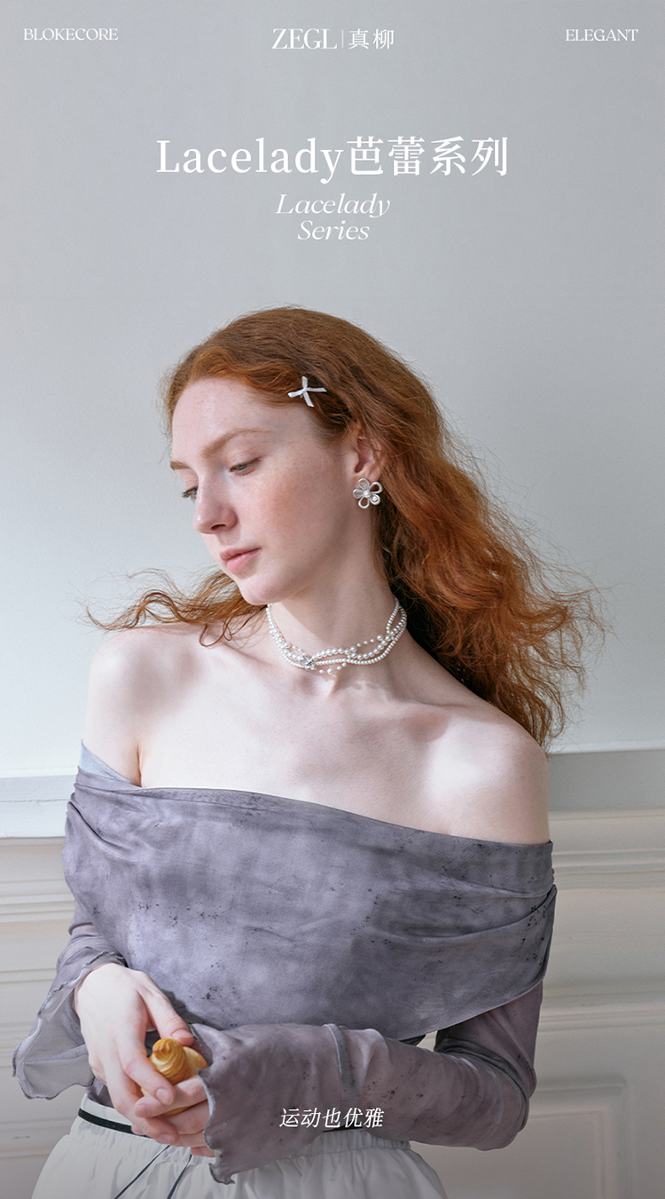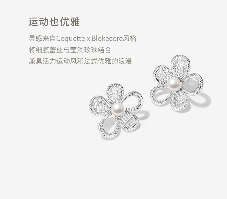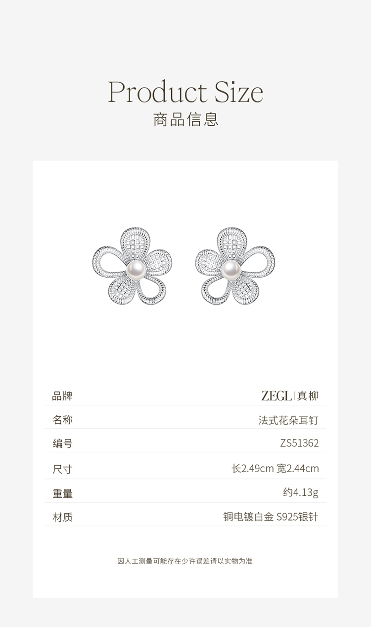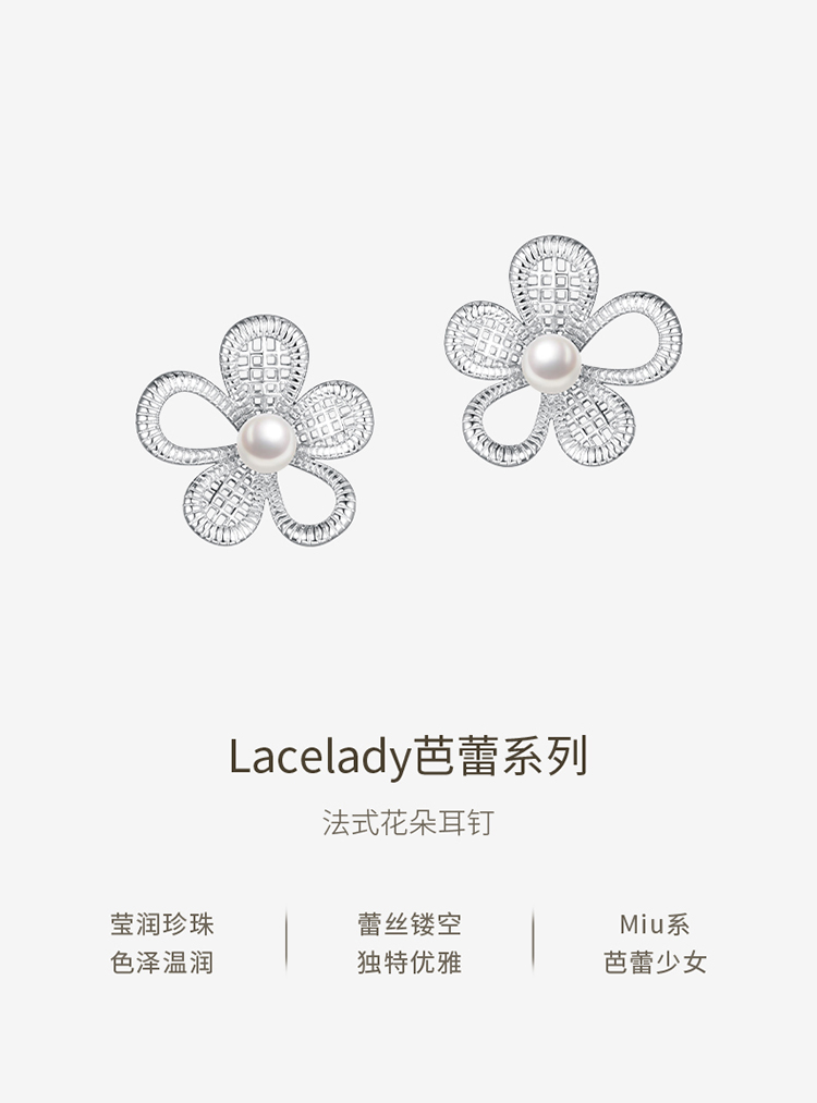 ZEGL真柳设计师lacelady芭蕾系列花朵耳钉女独特耳环人造珍珠耳饰