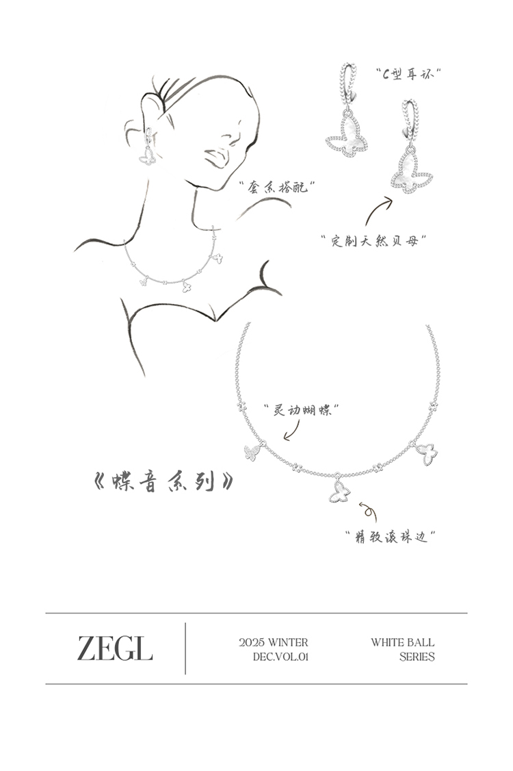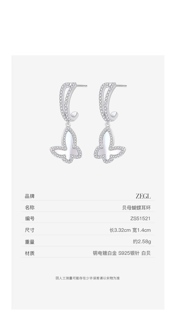 ZEGL真柳设计师蝶音系列蝴蝶耳环女新款爆款耳钉耳坠轻奢高级耳饰