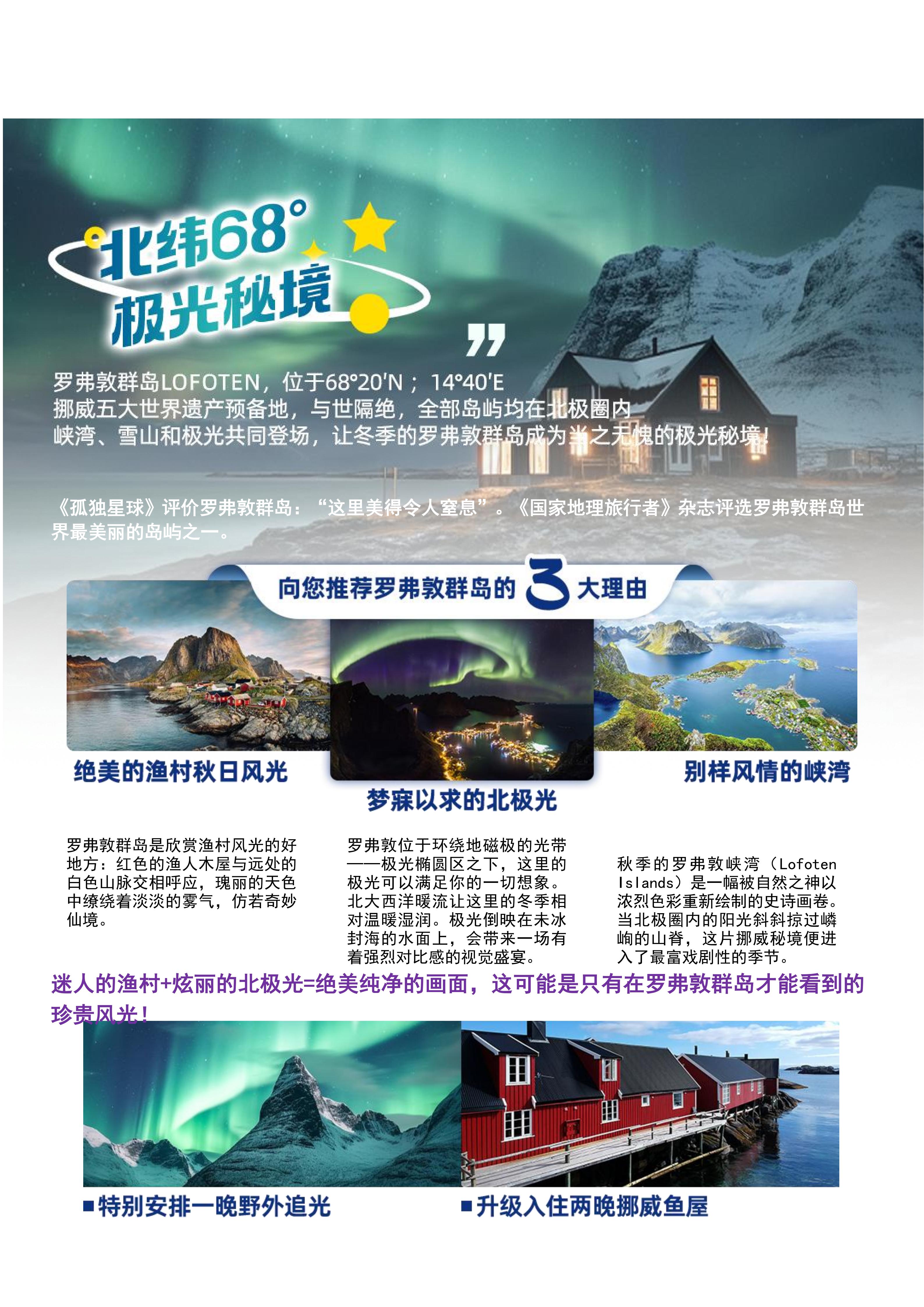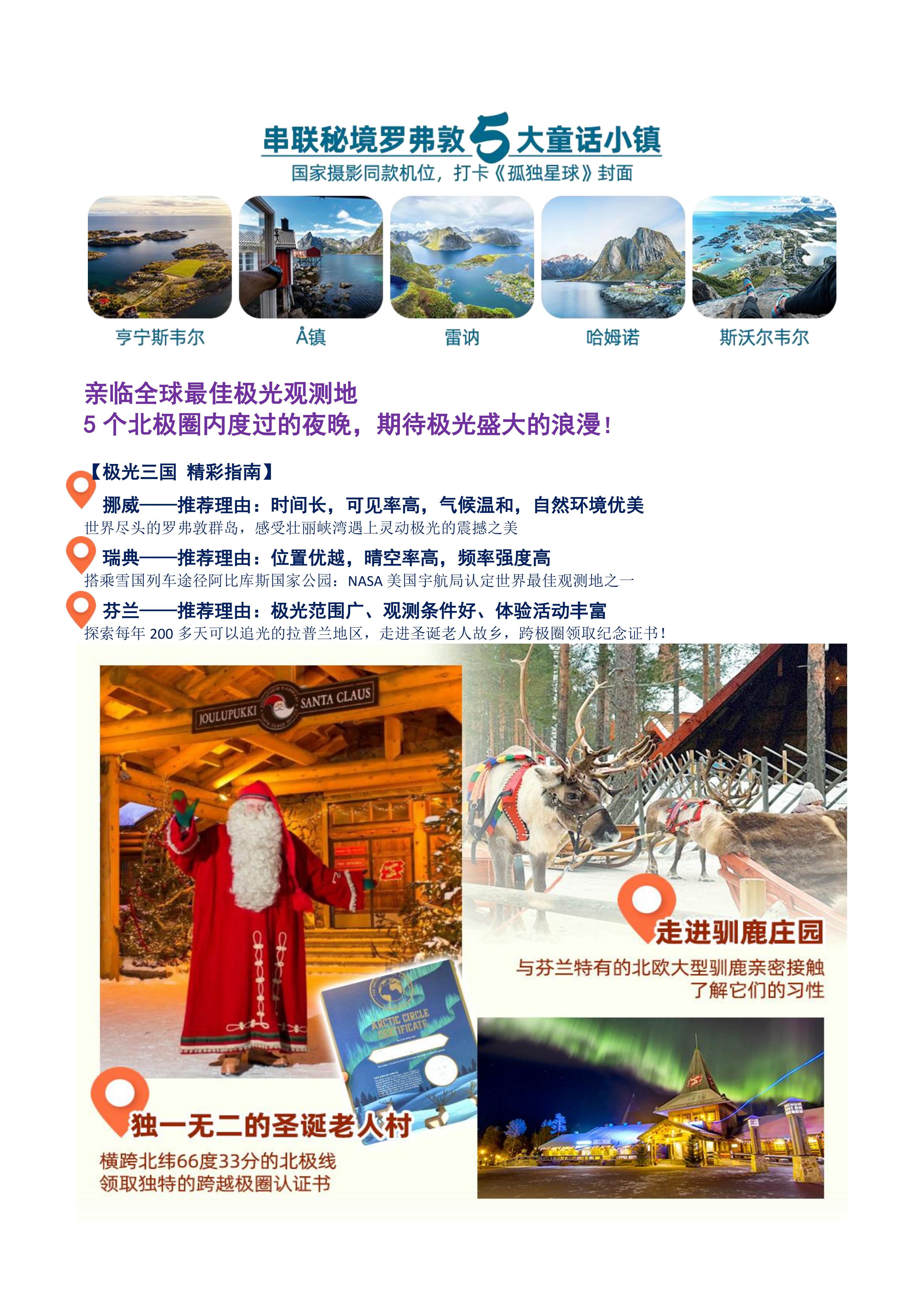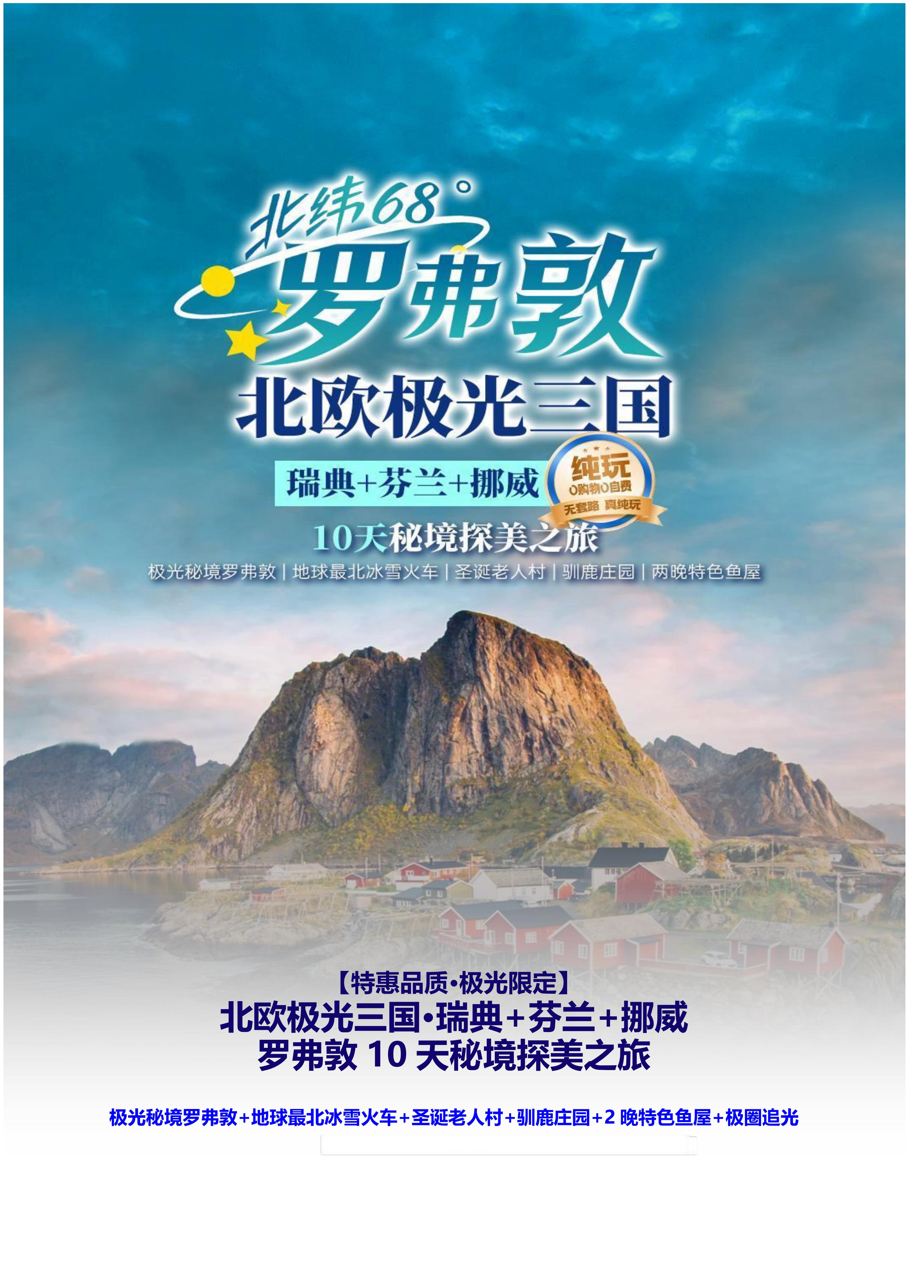 【春节、寒假】<北欧极光三国·瑞典+芬兰+挪威 罗弗敦10天秘境探美之旅>极光秘境罗弗敦+地球最北冰雪火车+圣诞老人村+驯鹿庄园+2 晚特色鱼屋+极圈追光