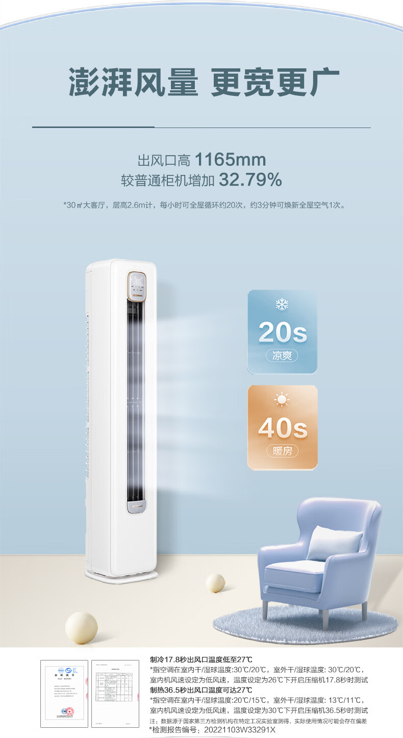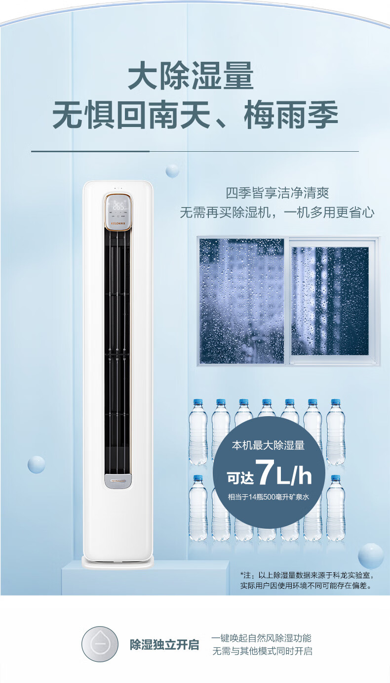 科龙(KELON)空调 3匹 新一级能效 独立大除湿量 变频冷暖圆柱立式柜 KFR-72LW/LM1J-X1(2N87)