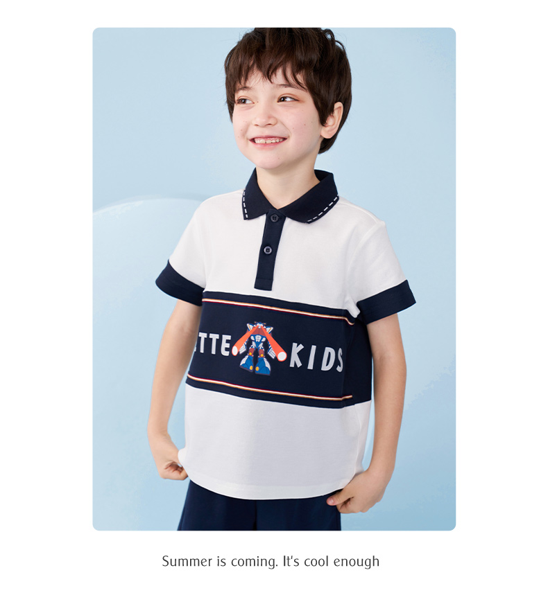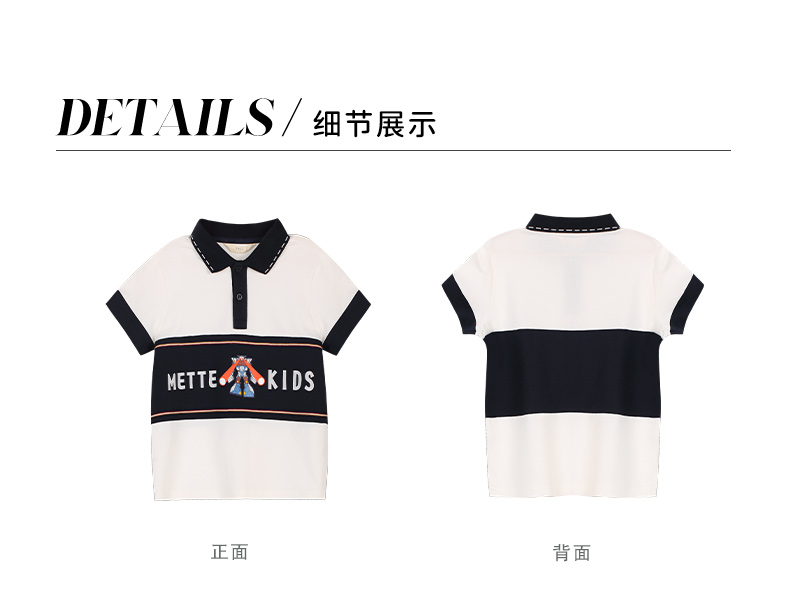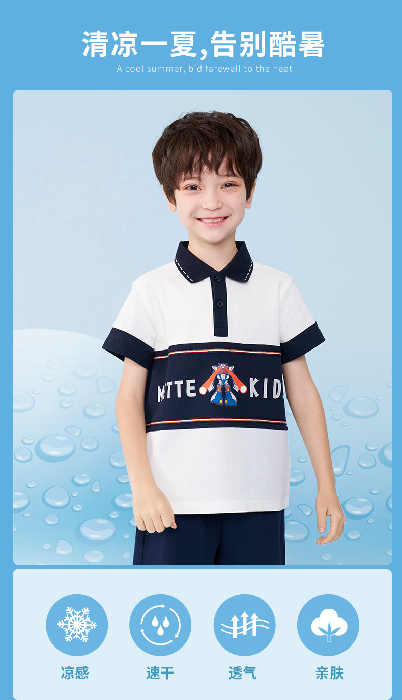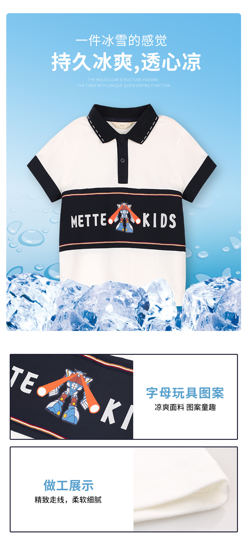 mettekids男童短袖t恤夏季儿童卡通上衣中大童帅气凉感polo衫童装