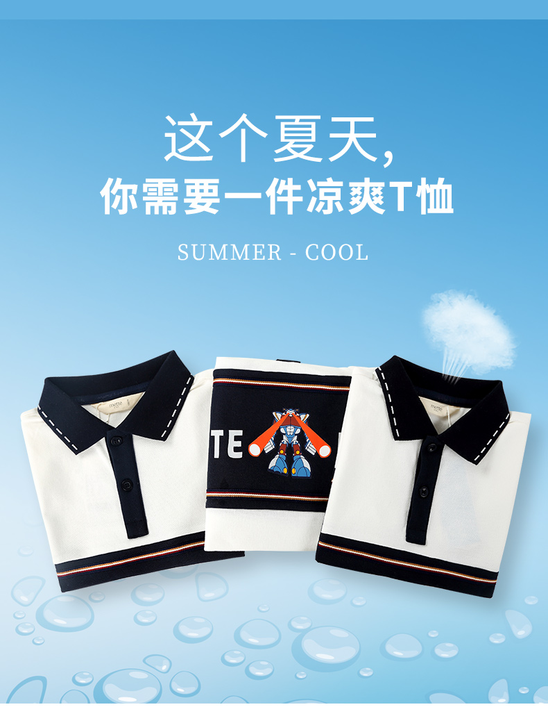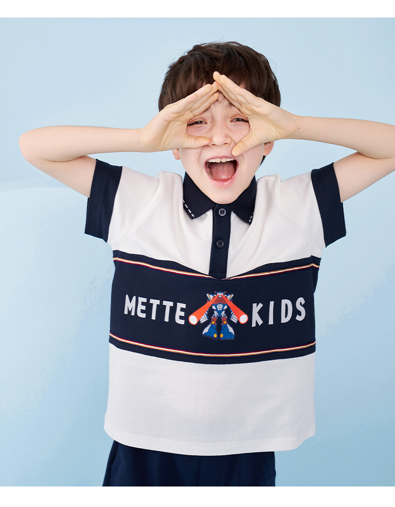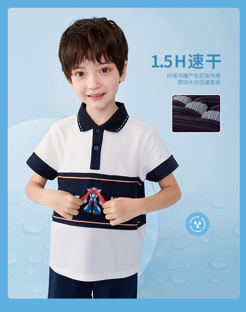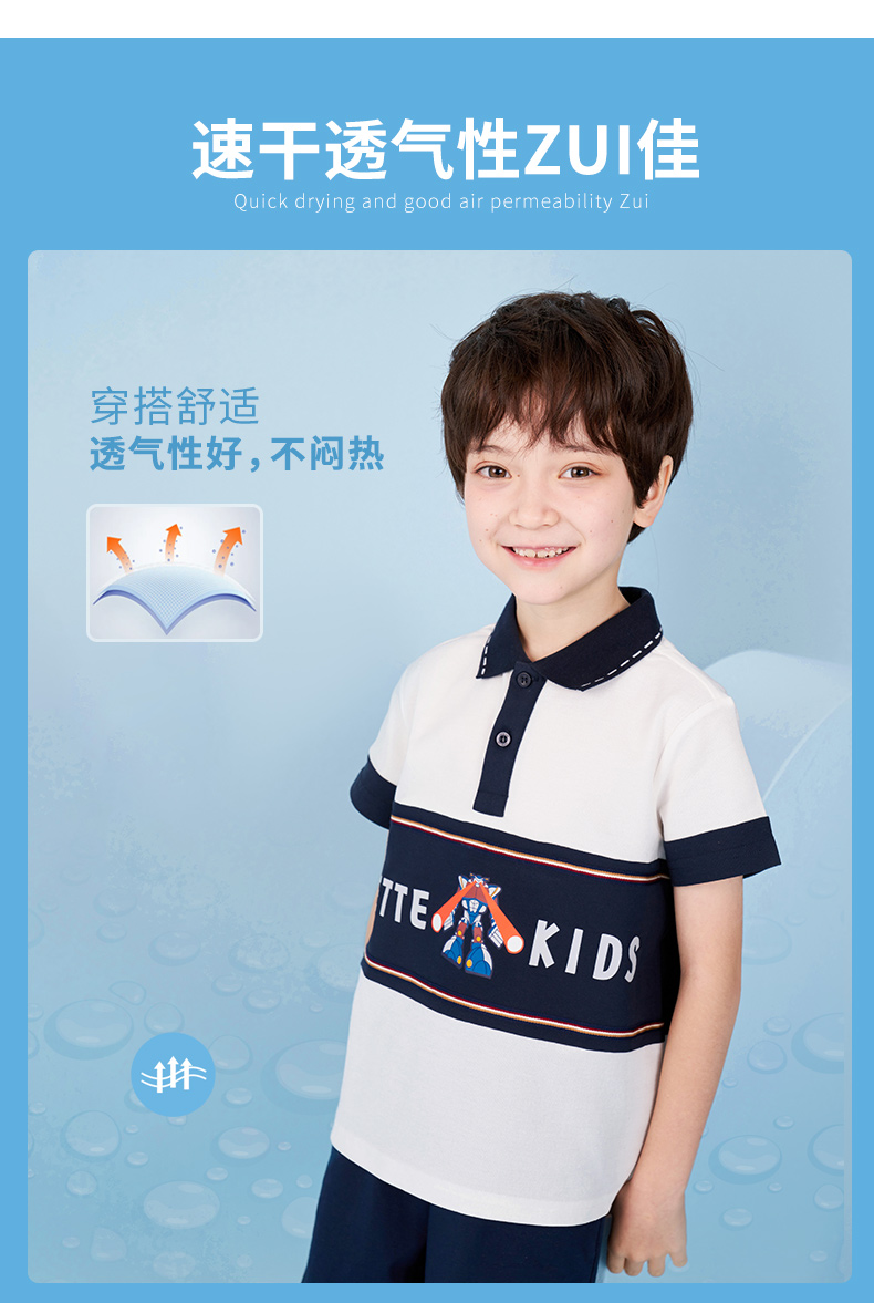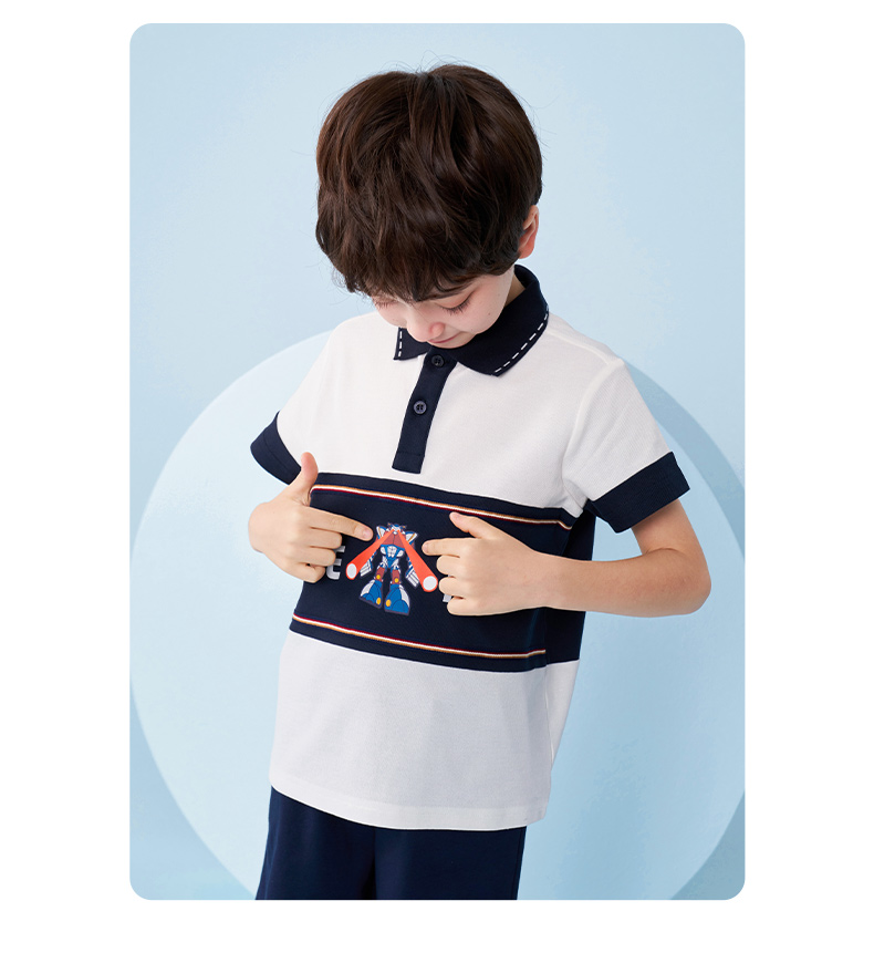 mettekids男童短袖t恤夏季儿童卡通上衣中大童帅气凉感polo衫童装