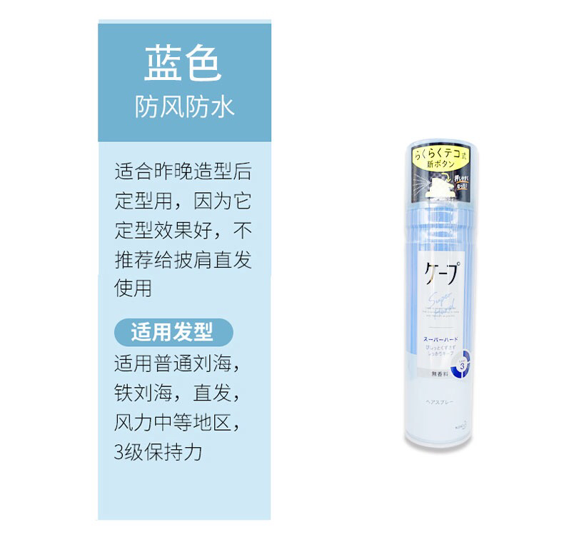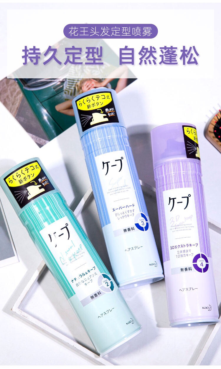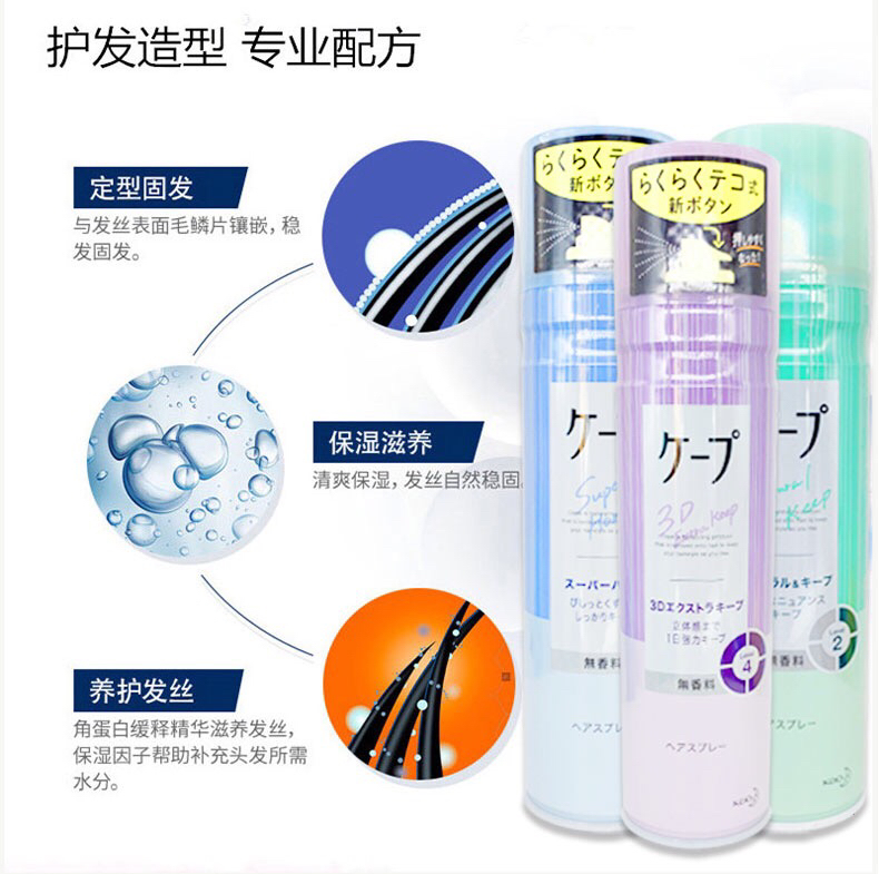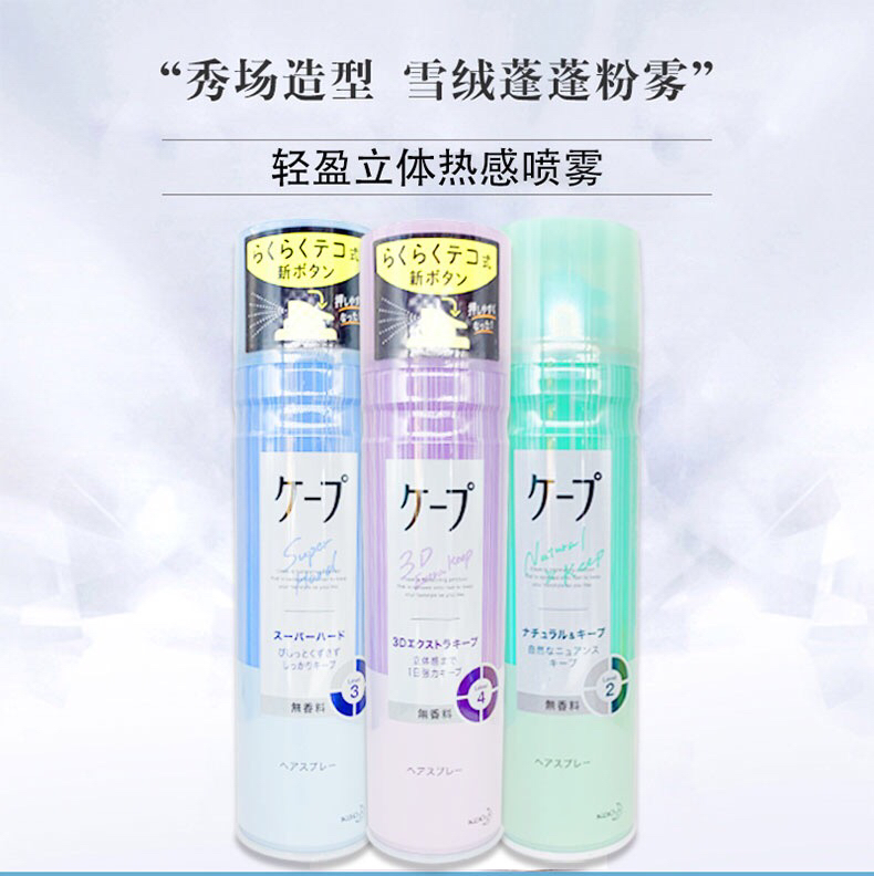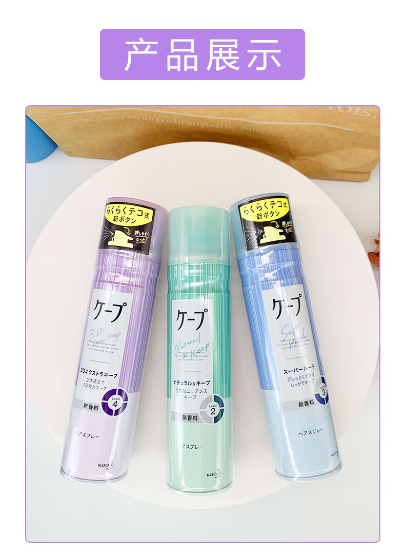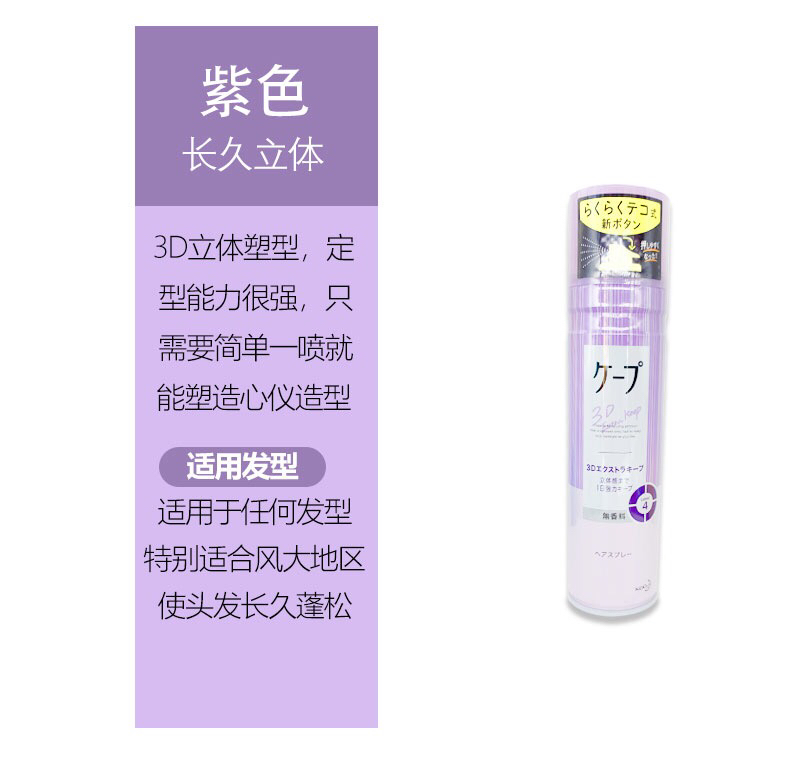 日本花王Cape头发定型喷雾紫色瓶女士空气感3d铁刘海蓬松发胶无香-会员8折