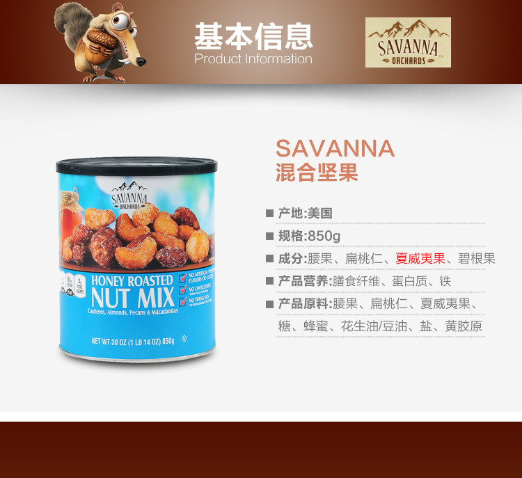 SAVANNA蜂蜜盐焗混合坚果仁 850g
