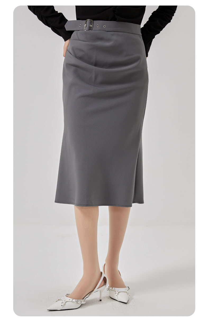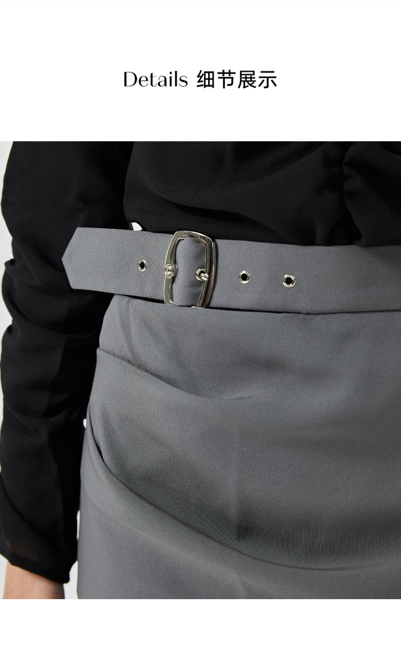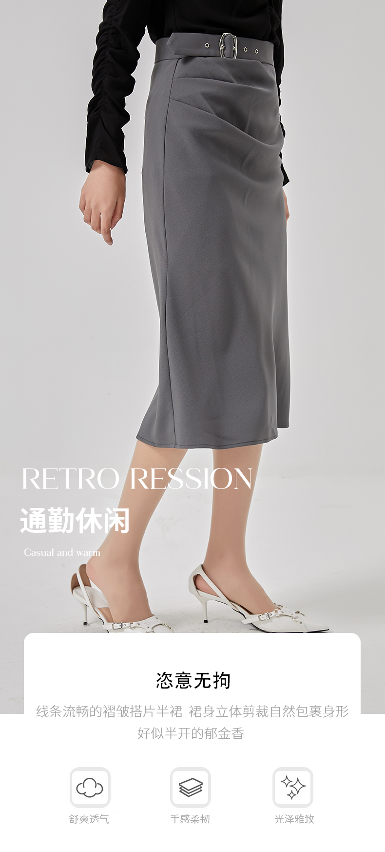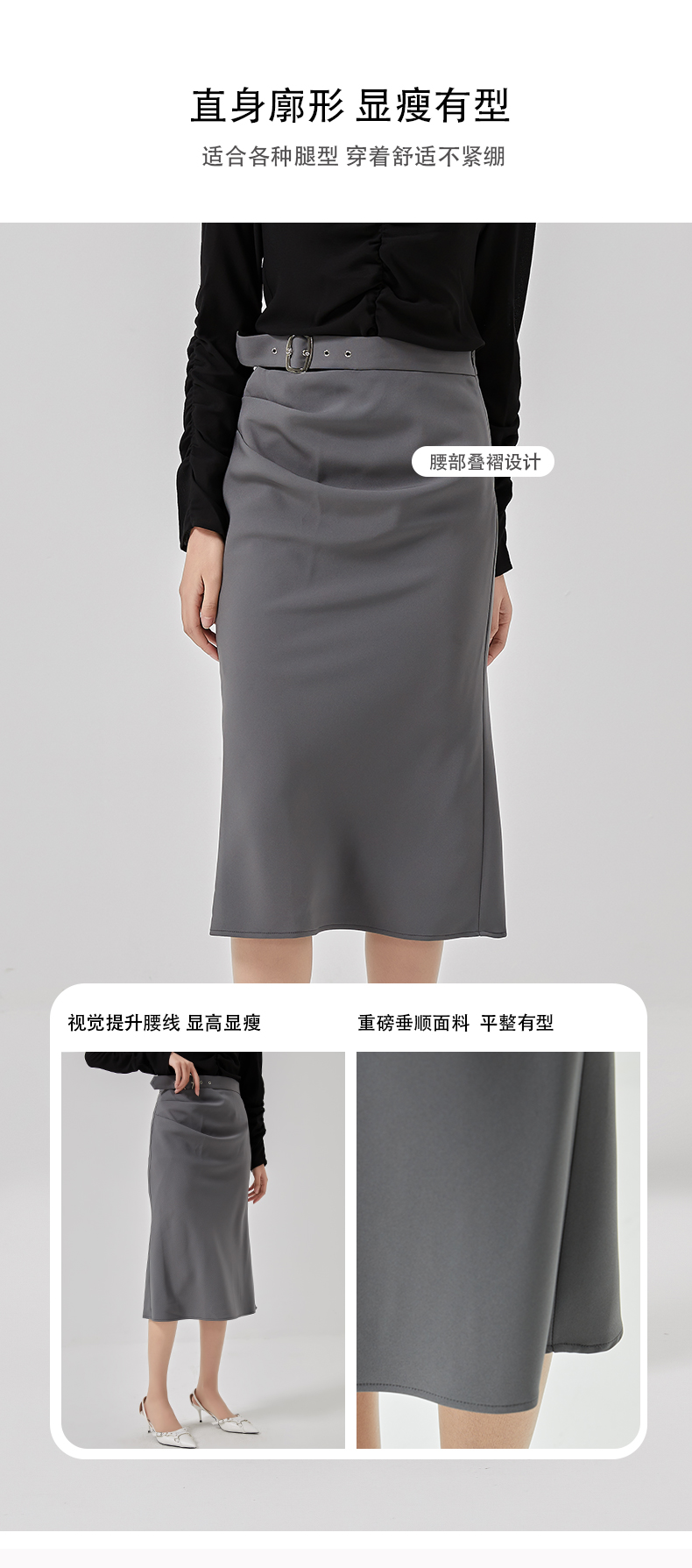 oldcolour2023春季新款灰色高腰包臀职场通勤半身裙女HO14063420