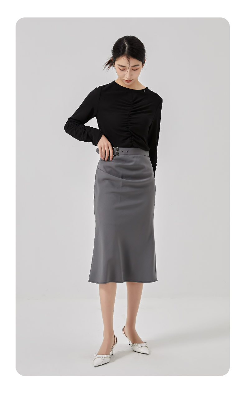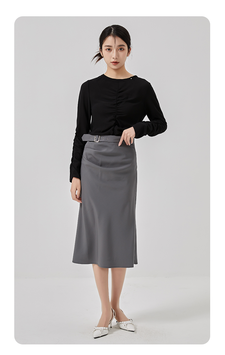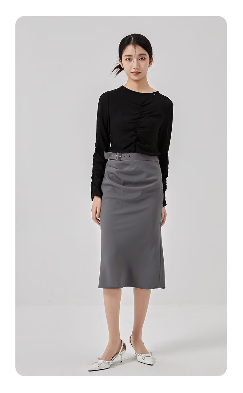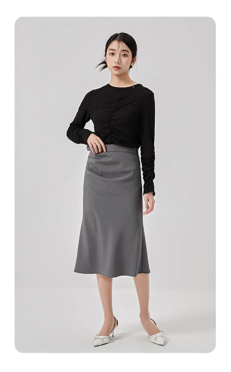 oldcolour2023春季新款灰色高腰包臀职场通勤半身裙女HO14063420