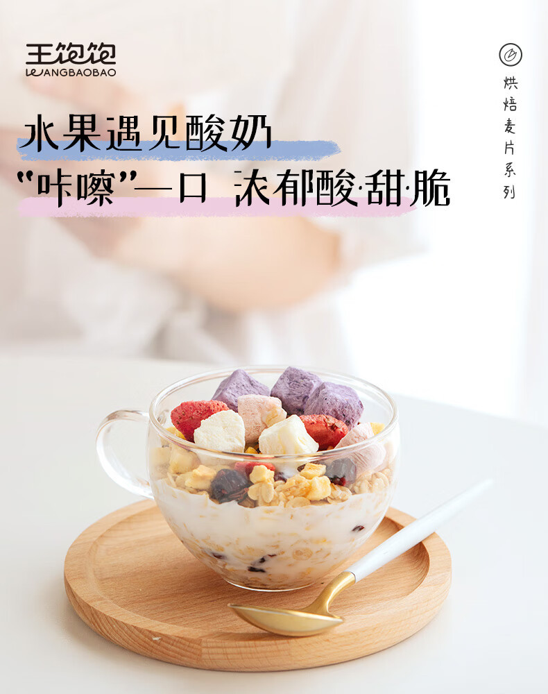 王饱饱燕麦片早餐即食冲饮水果坚果泡酸奶果粒-220g酸奶果然多烘焙麦片
