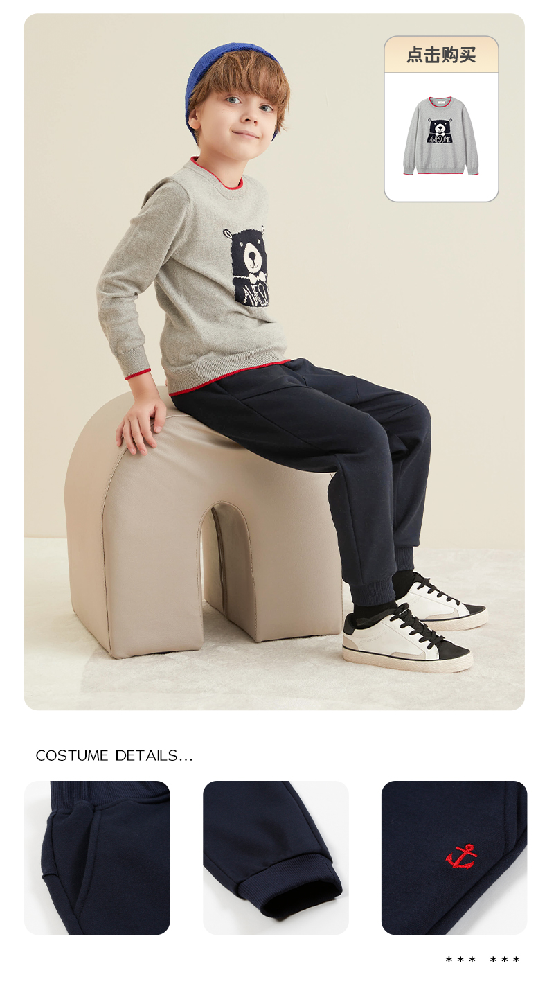 羊绒世家童装男童裤子秋季儿童运动裤潮童服卫裤透气舒适休闲裤