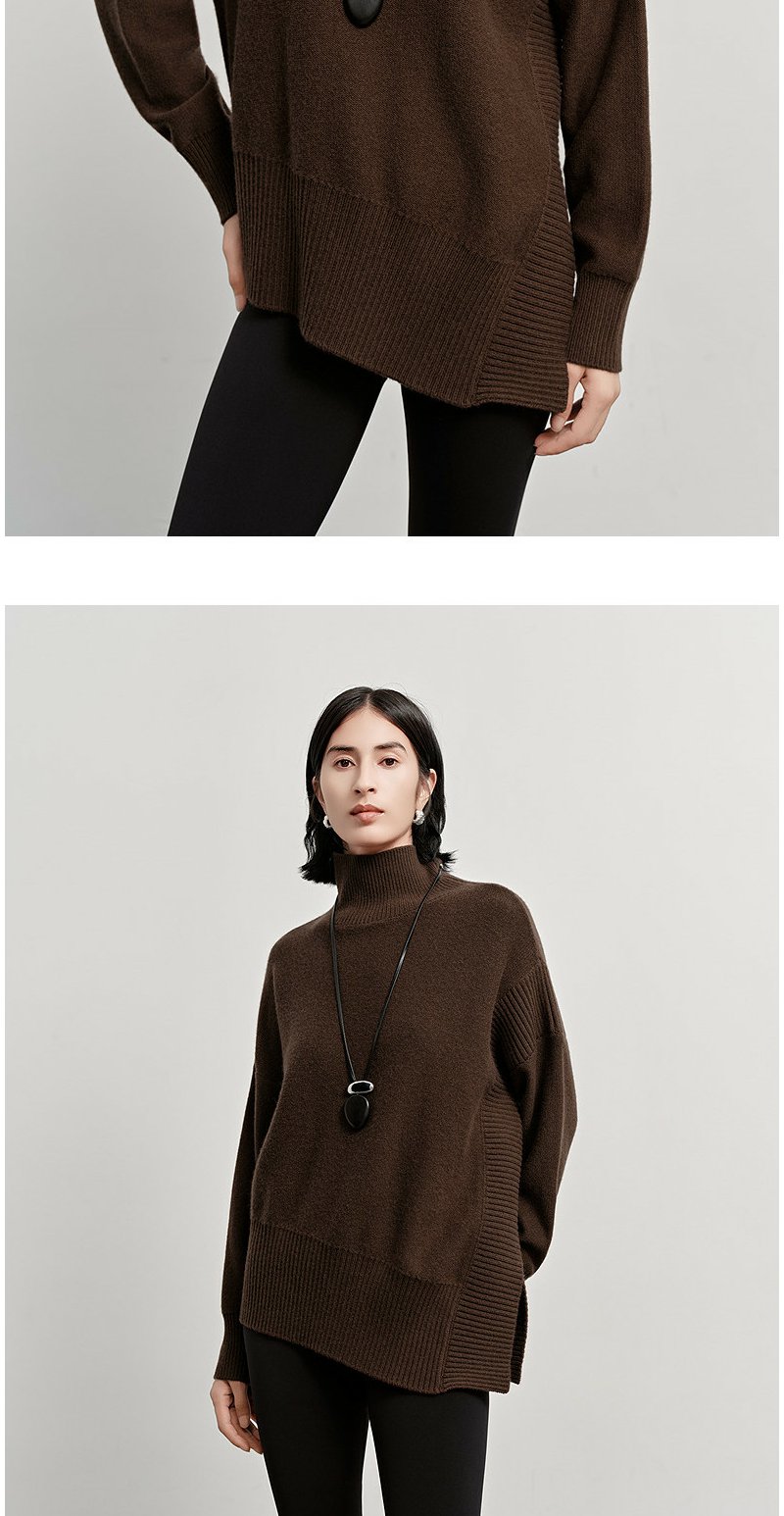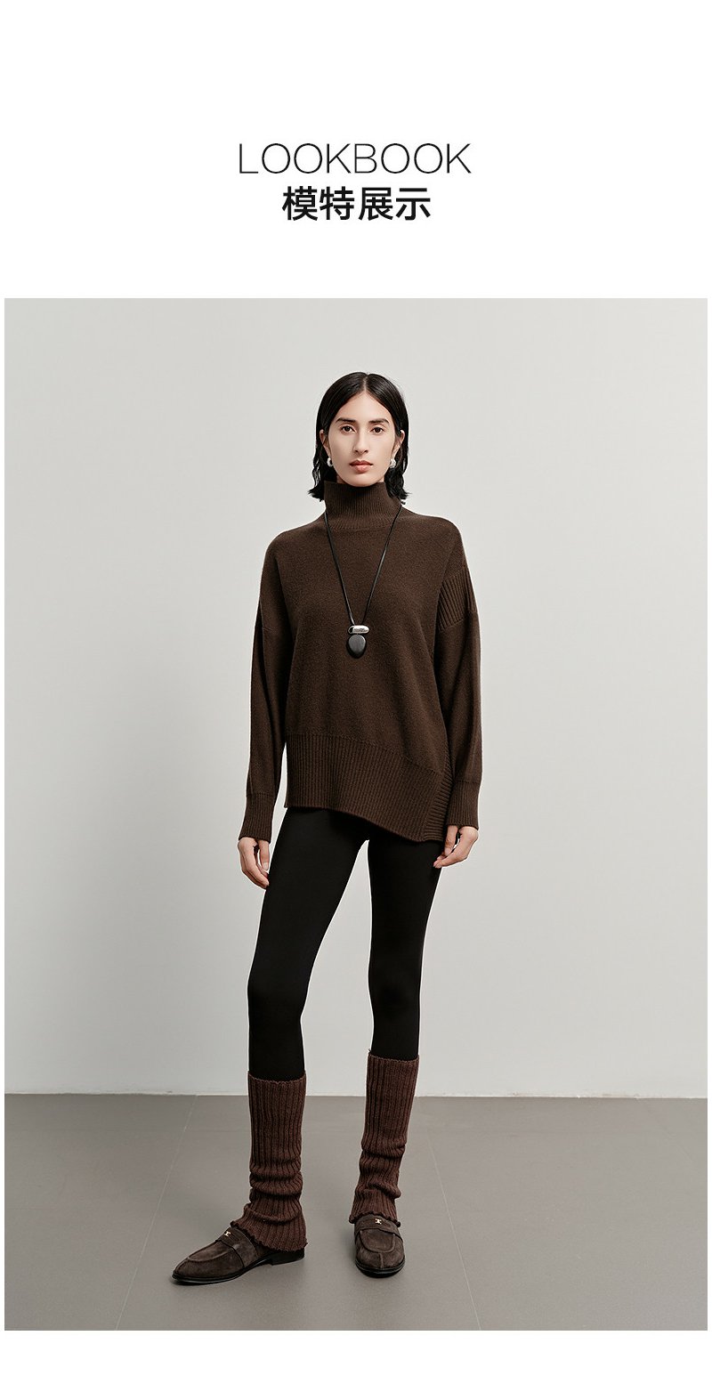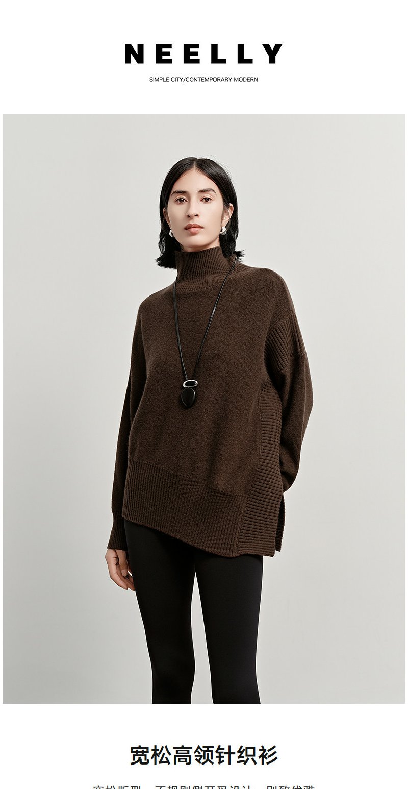 NEELLY纳俪商场同款冬季新款宽松高领气质针织衫女松弛感百搭上衣N25112A01120