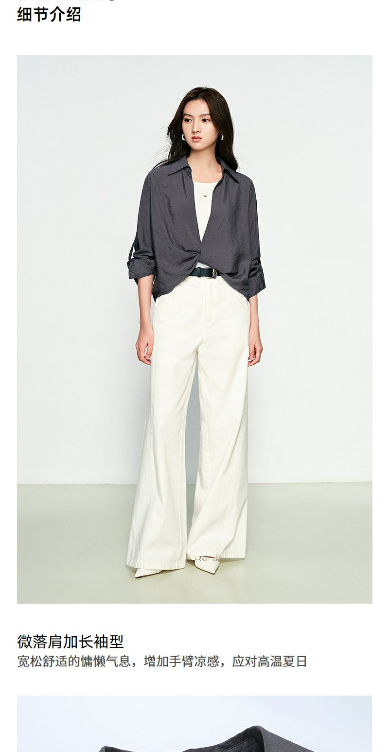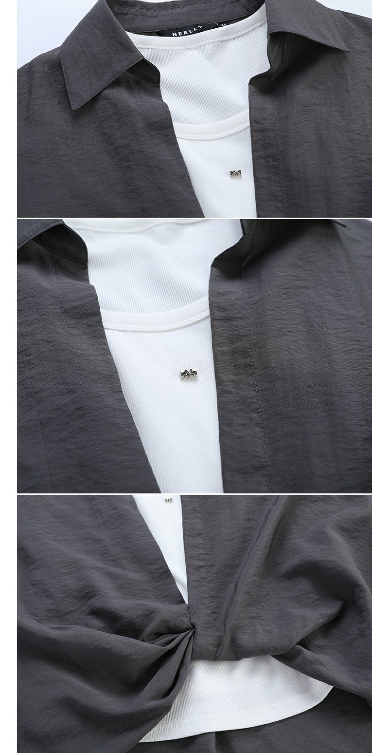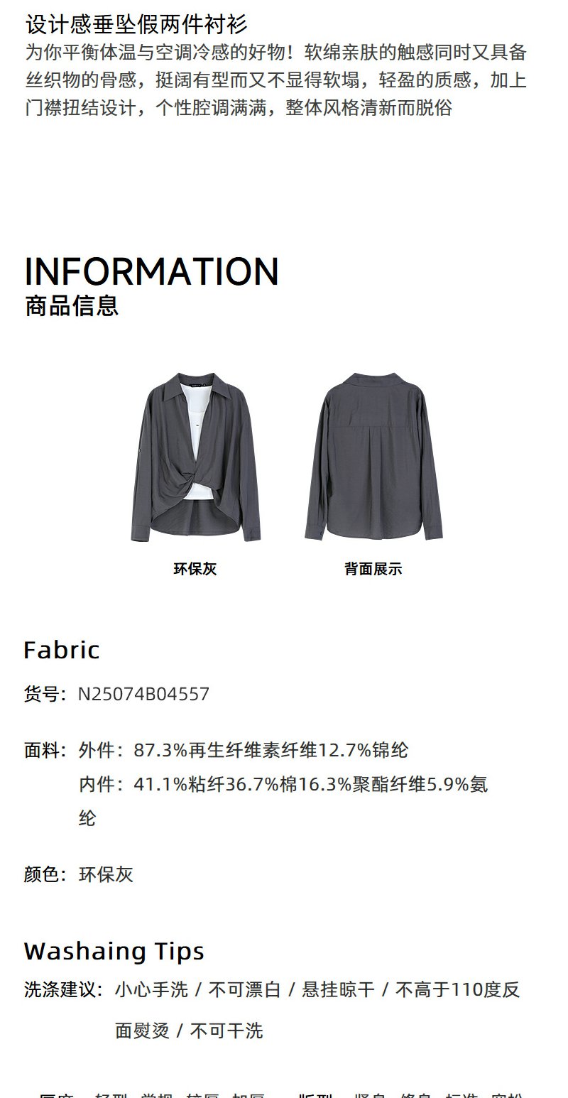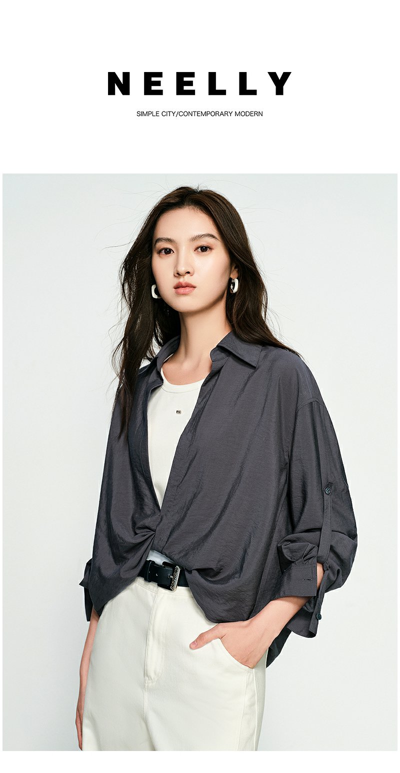 NEELLY纳俪商场同款春季新款时尚设计感垂坠假两件衬衫女宽松上衣N25074B04557