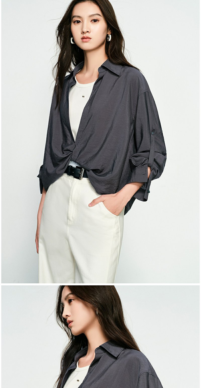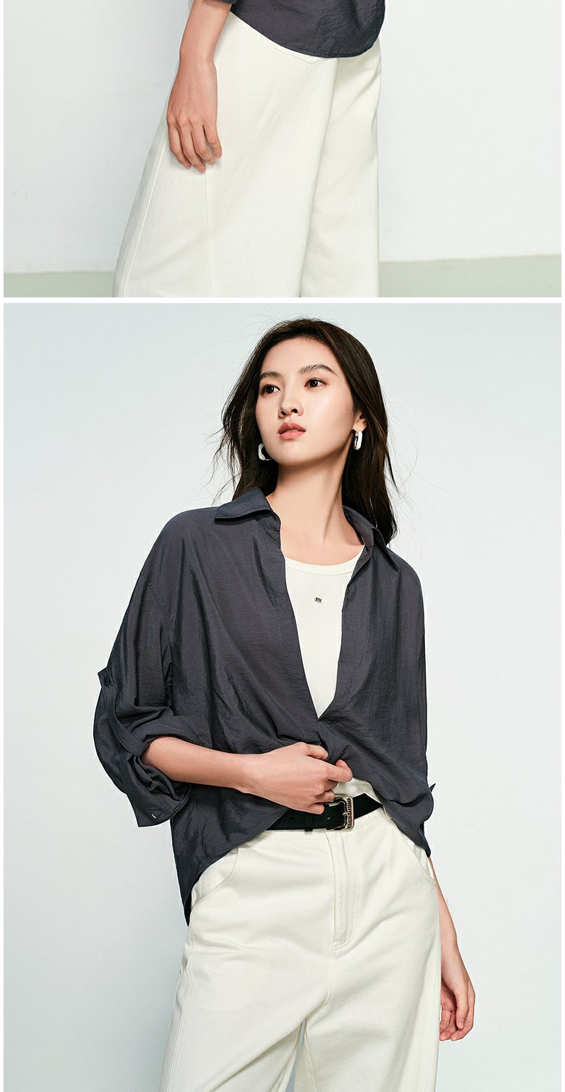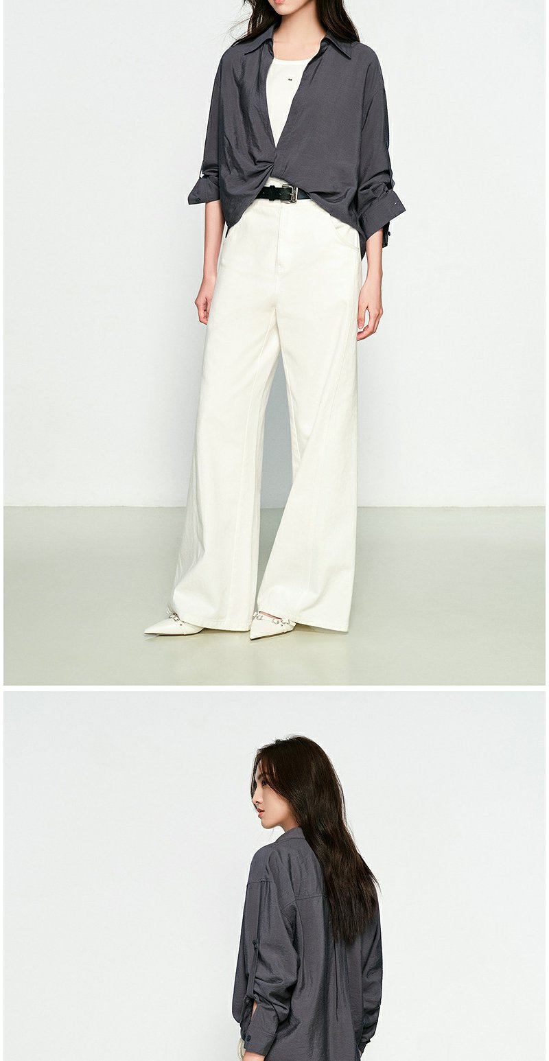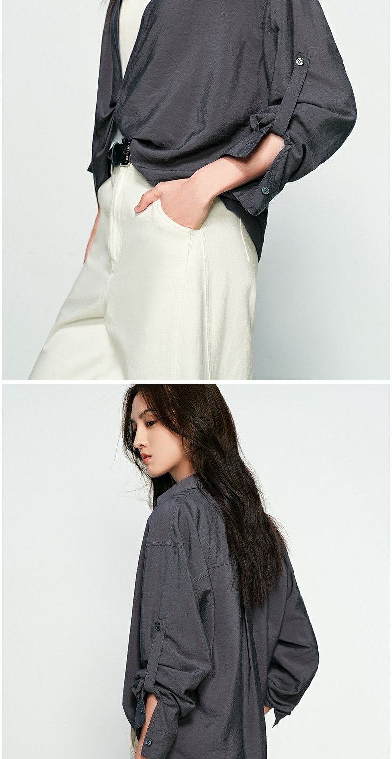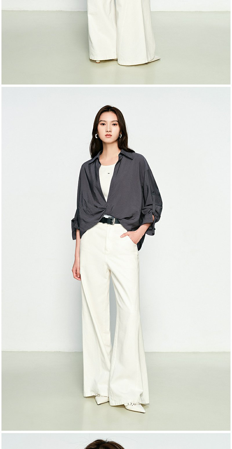 NEELLY纳俪商场同款春季新款时尚设计感垂坠假两件衬衫女宽松上衣N25074B04557