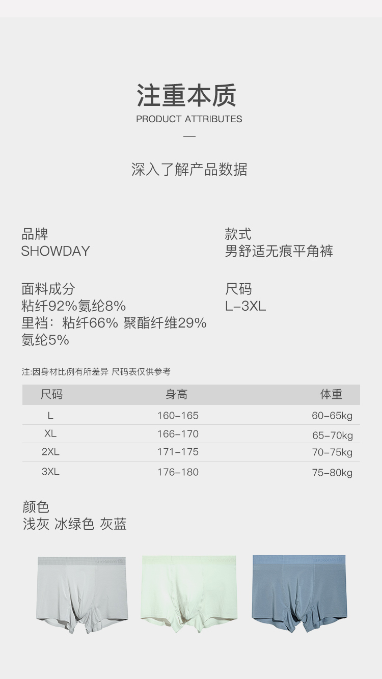 【满3条/6.7折】【秀黛】男舒适无痕平角裤男士内裤【1条】W5330018T【门店同款】【内裤非质量问题不退换,介意勿拍】