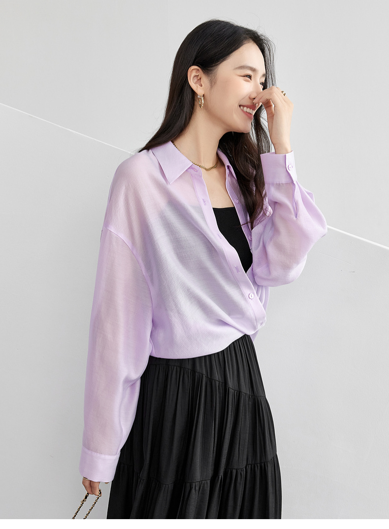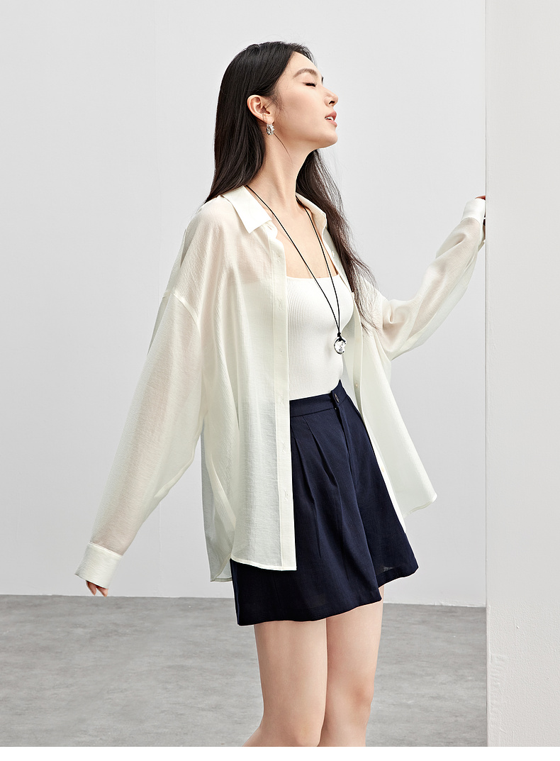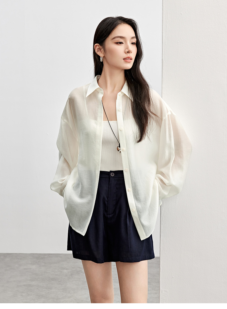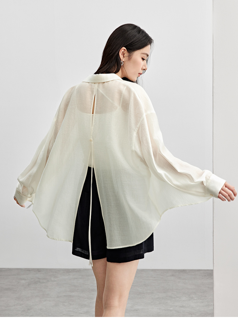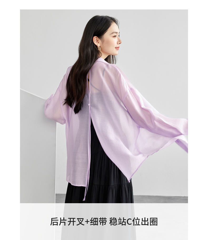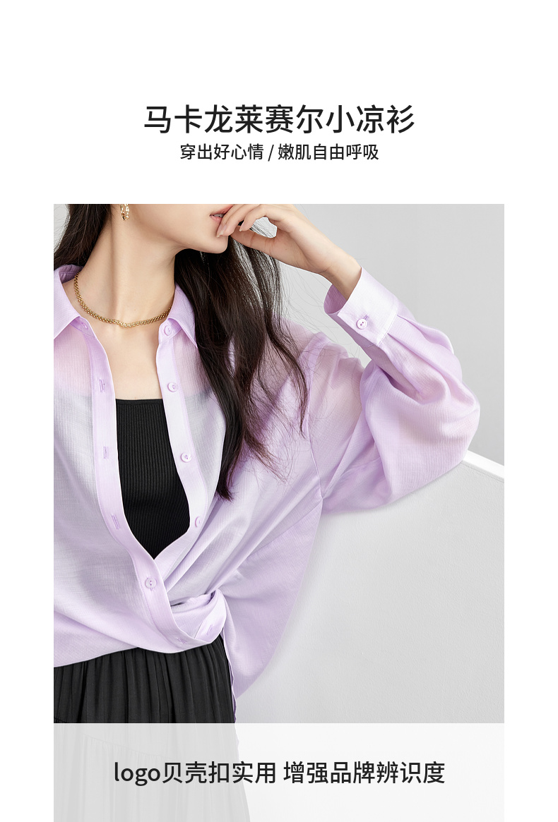 【内购】通勤翻领后片开叉宽松轻薄微透莱赛尔遮阳衫衬衫-151C57807