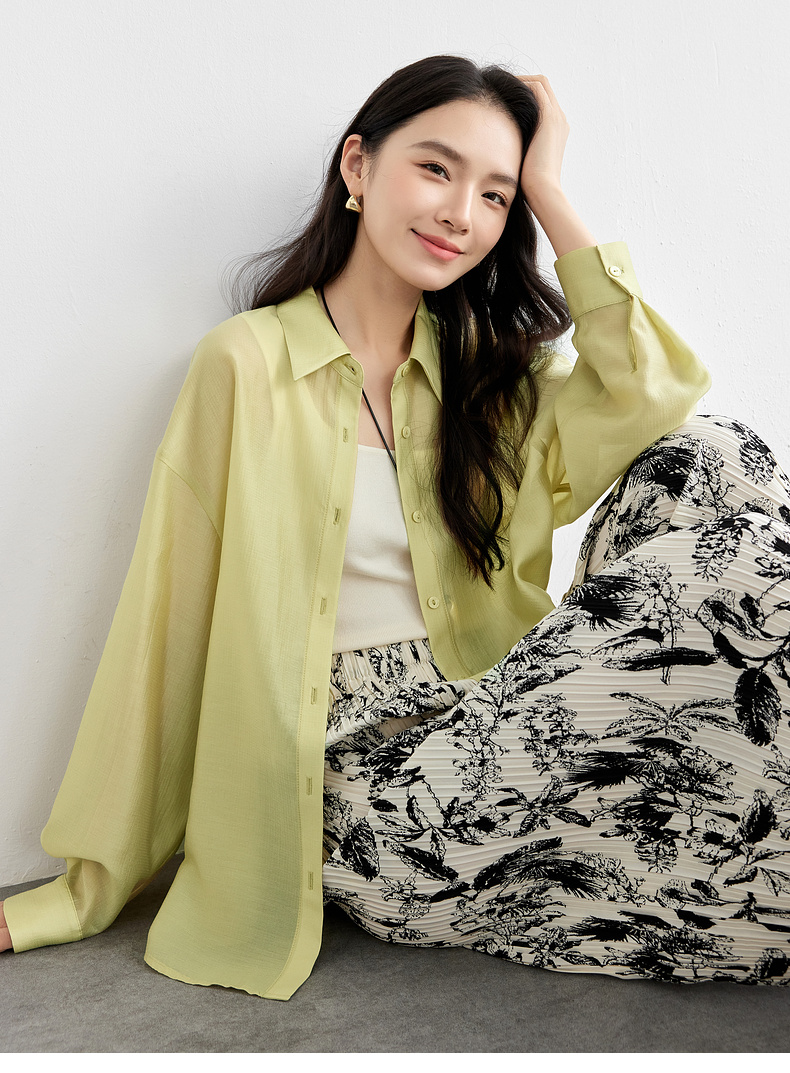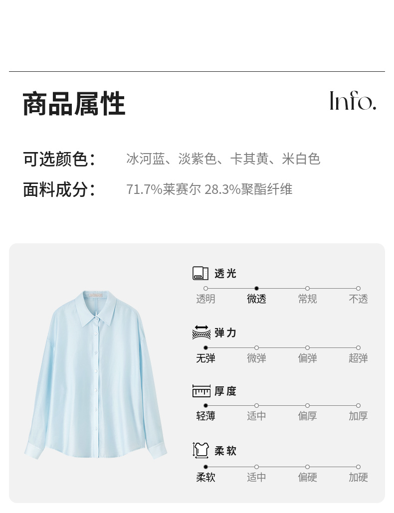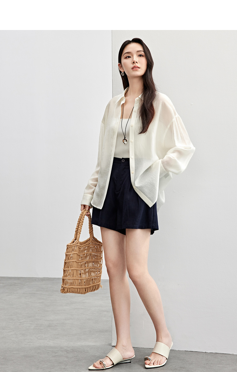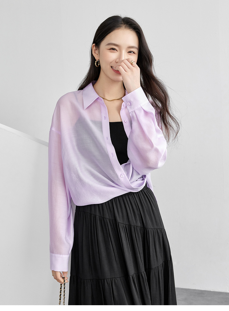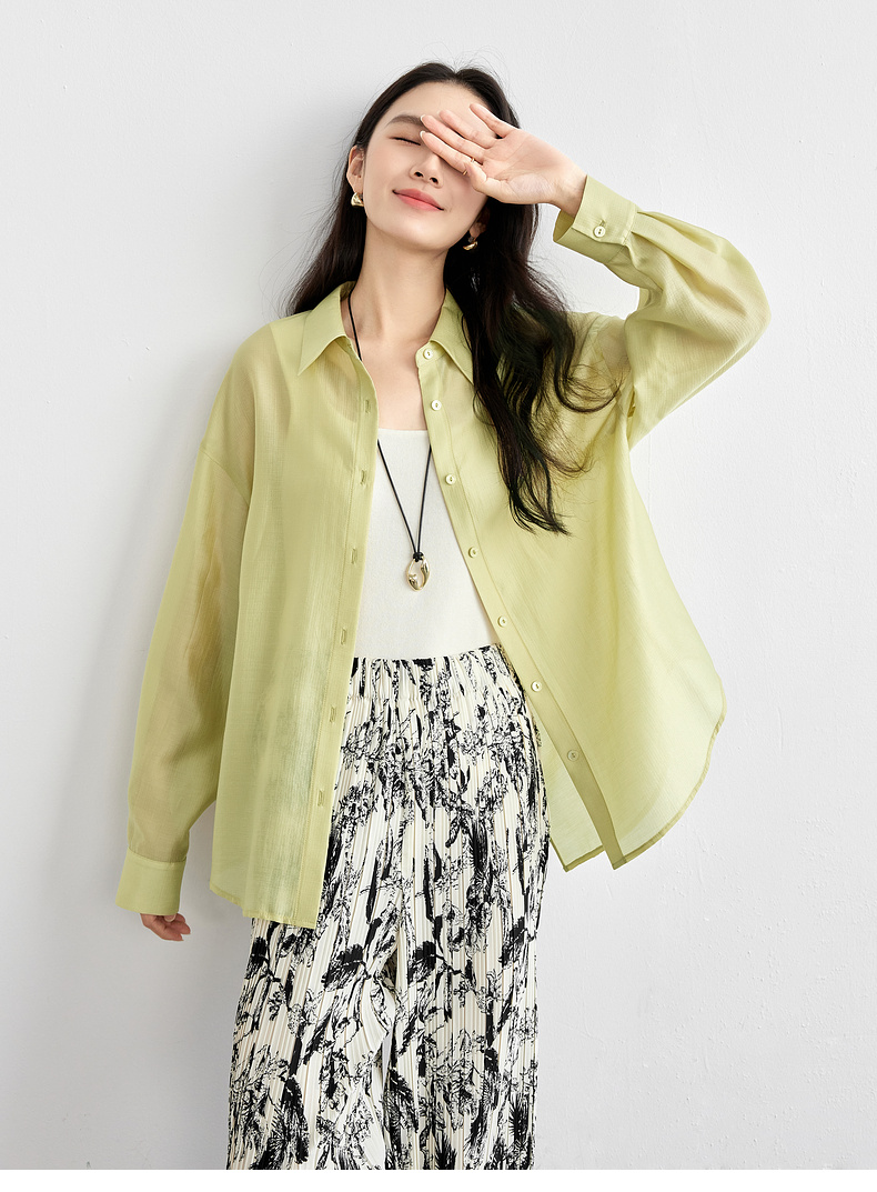 【内购】通勤翻领后片开叉宽松轻薄微透莱赛尔遮阳衫衬衫-151C57807