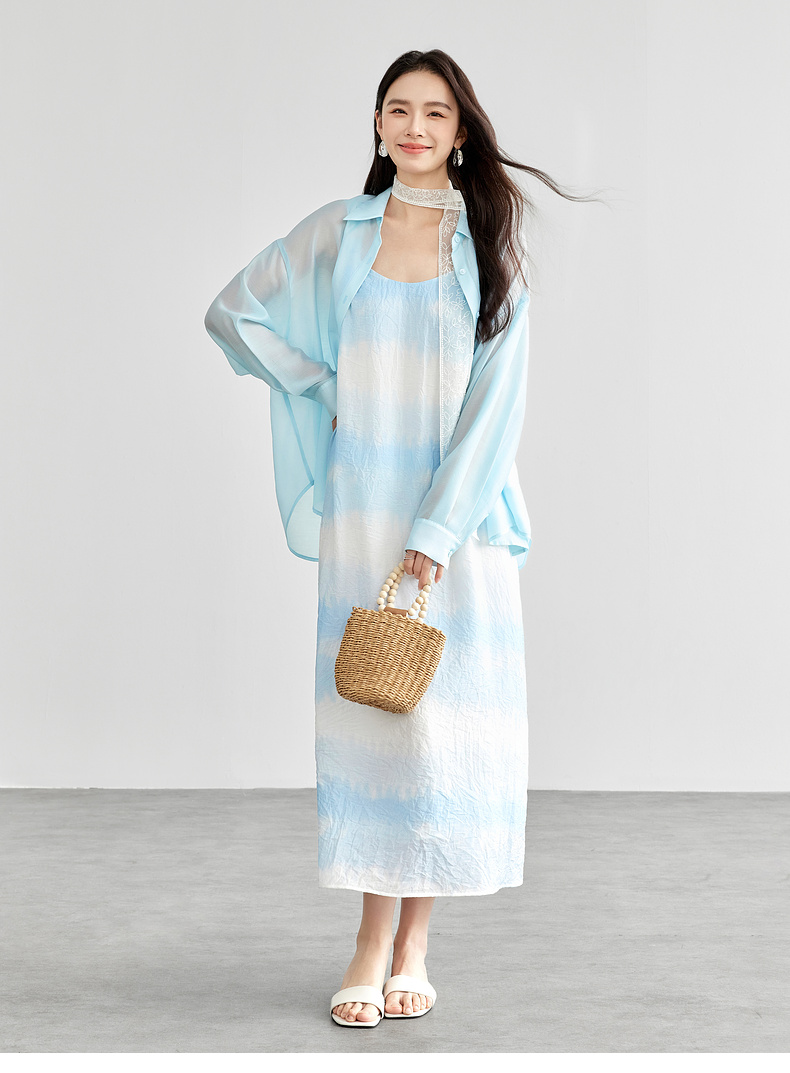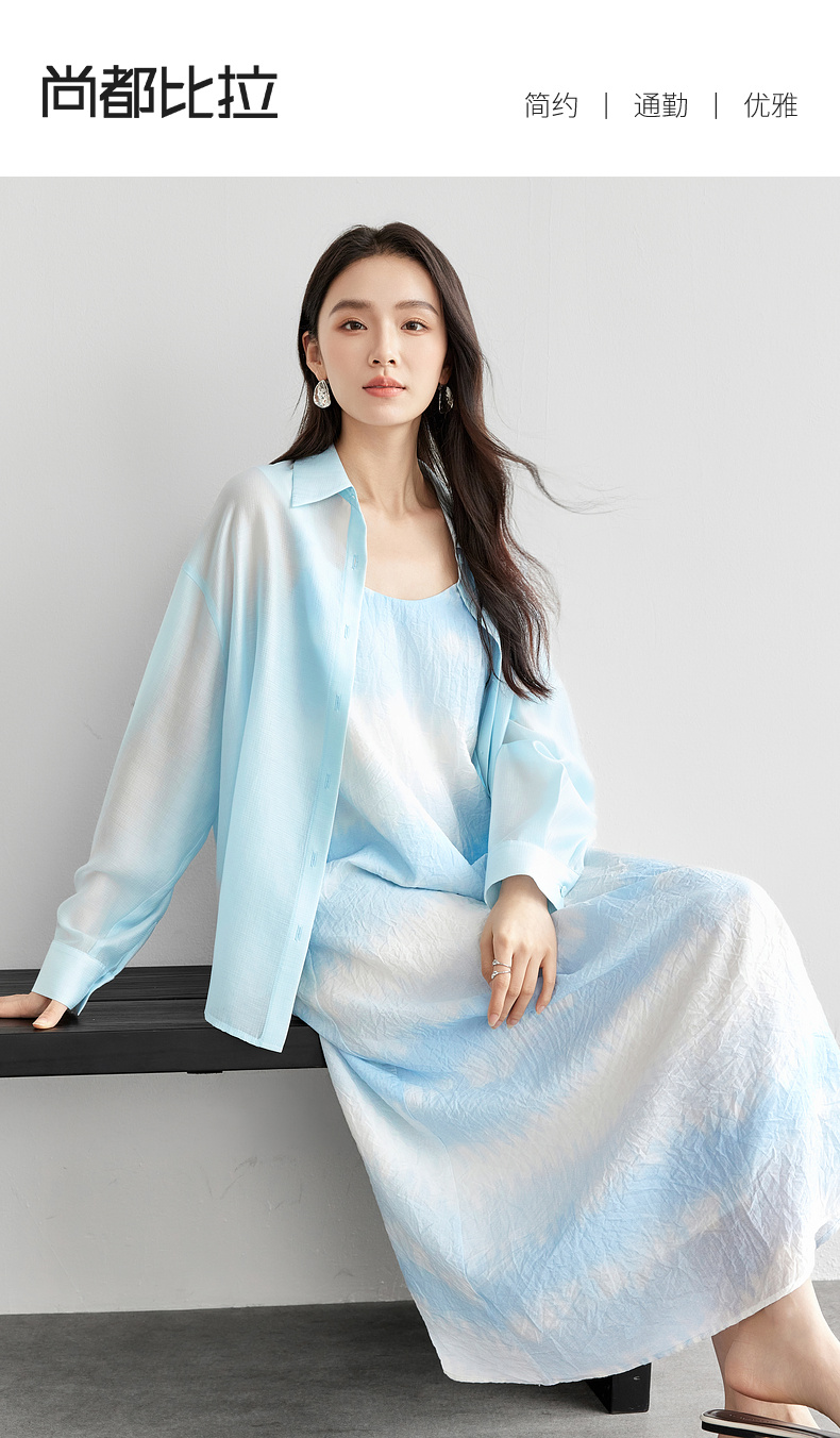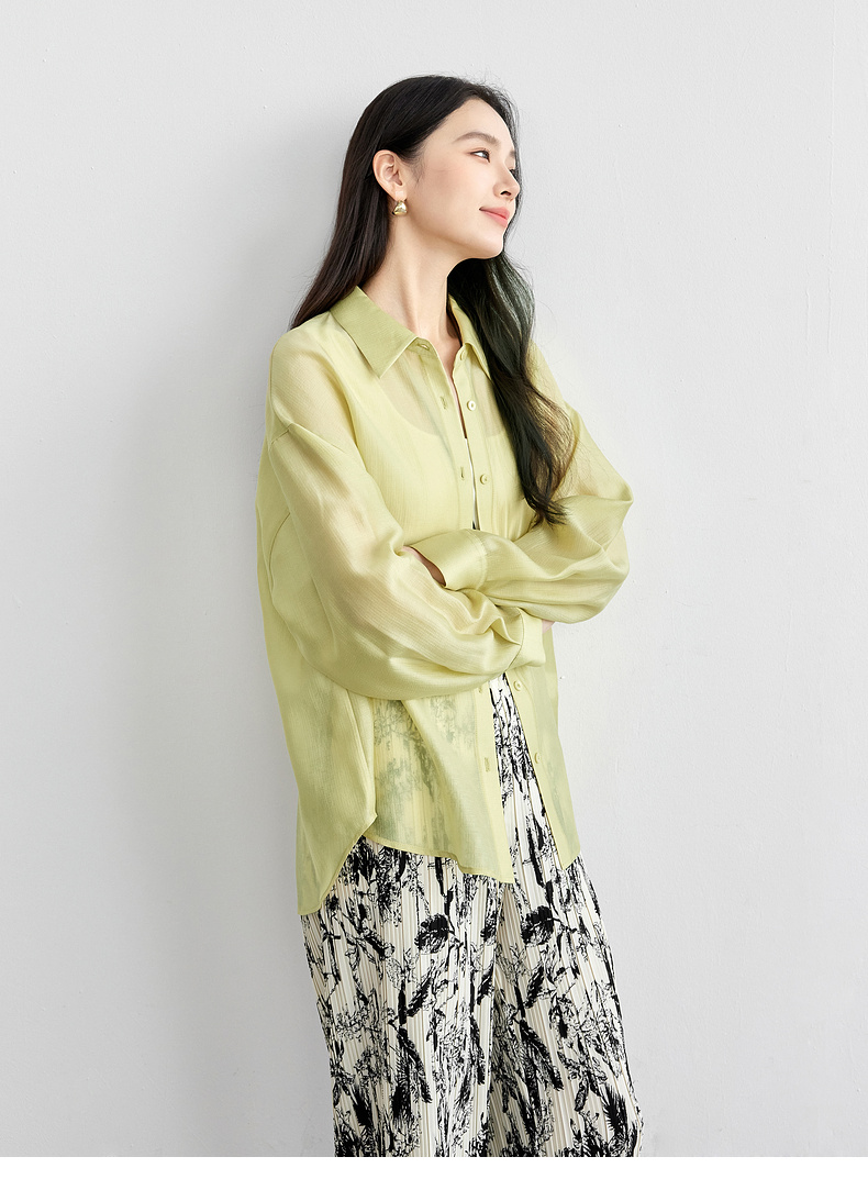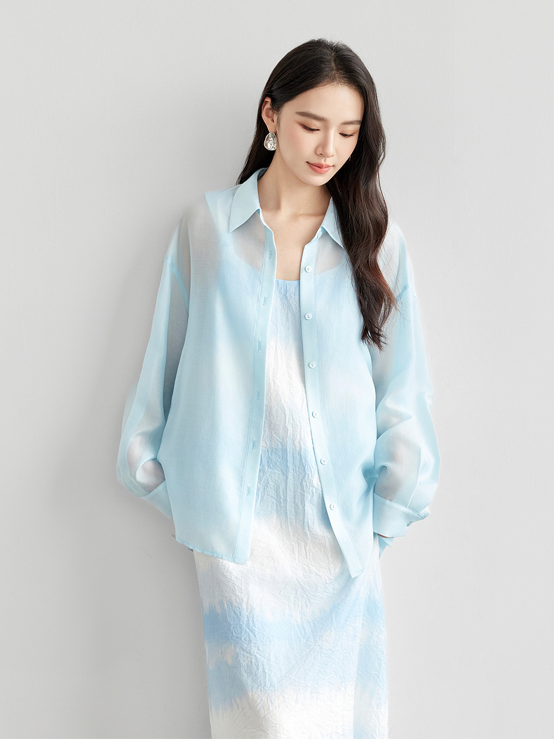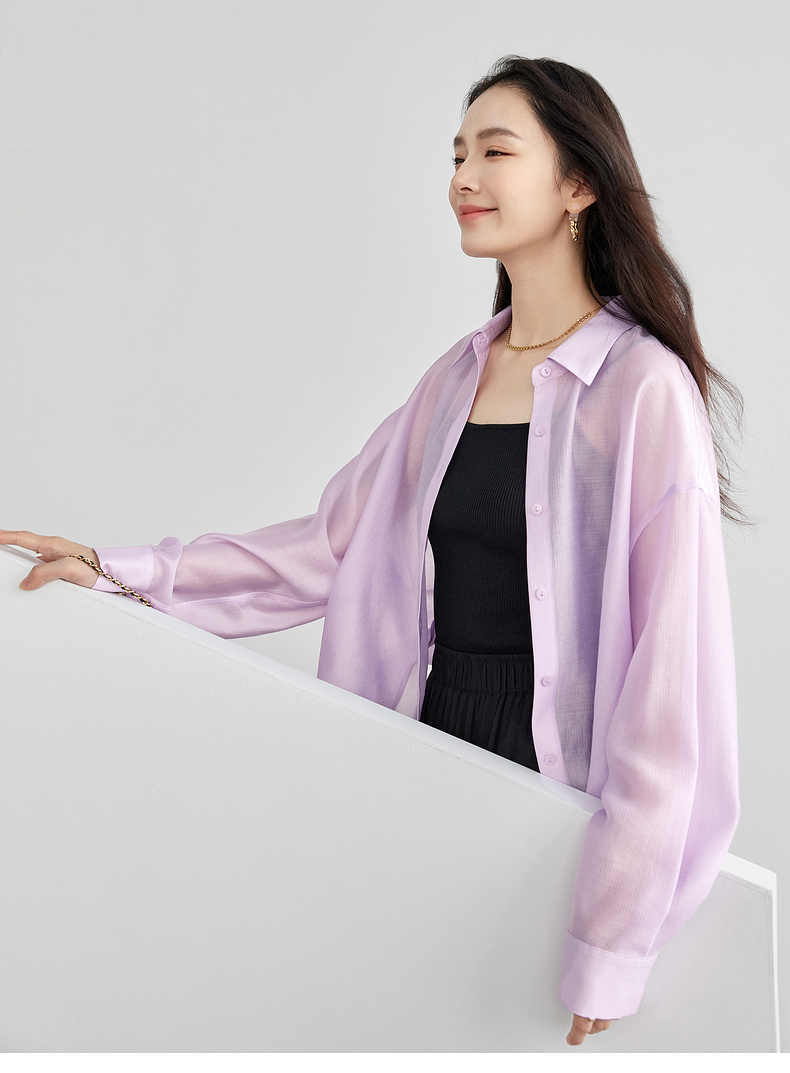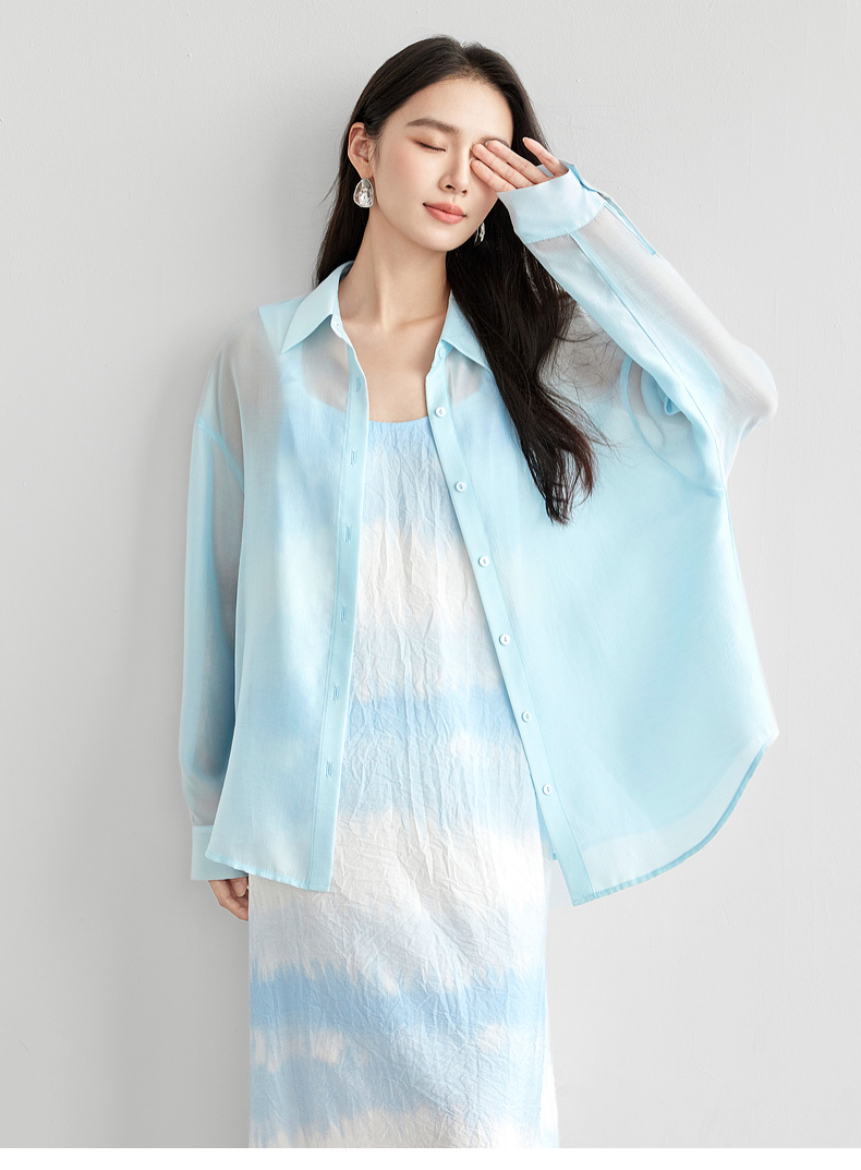 【内购】通勤翻领后片开叉宽松轻薄微透莱赛尔遮阳衫衬衫-151C57807