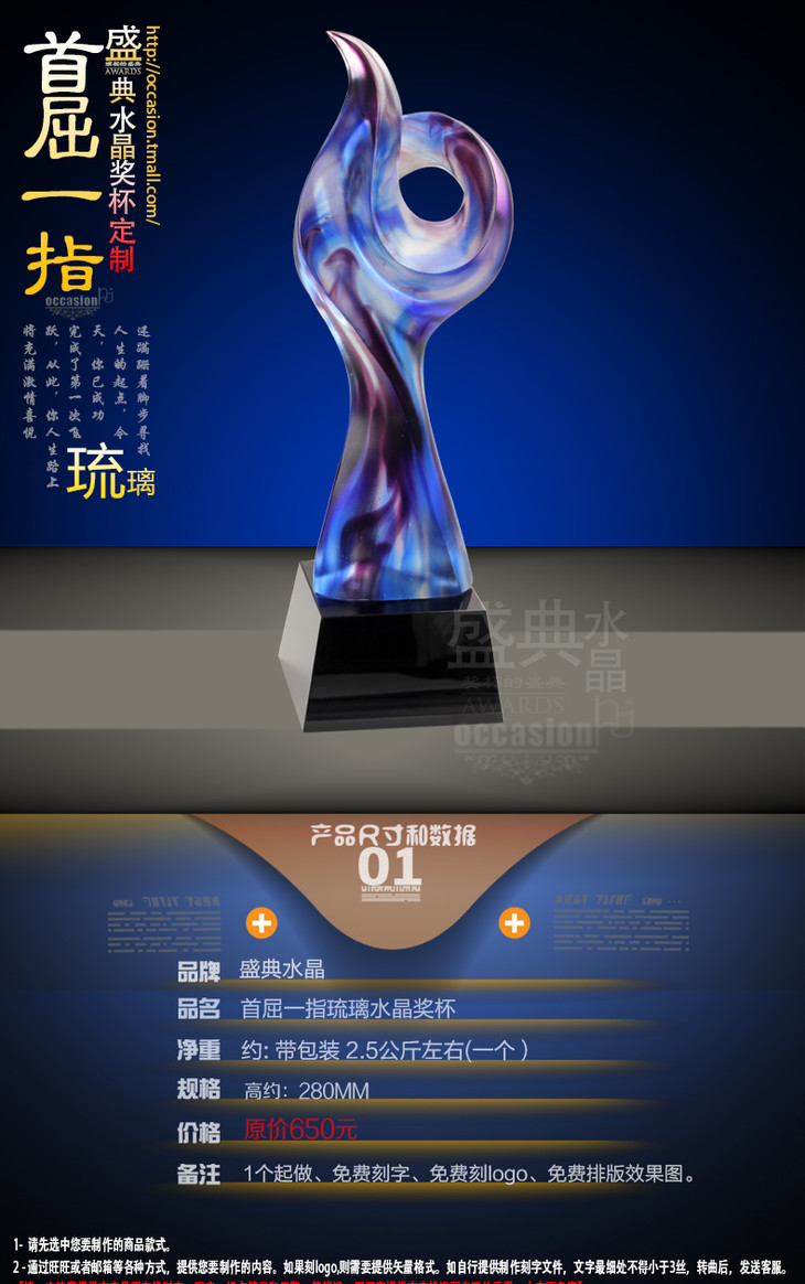 琉璃奖杯 琉璃 奖杯定做 水晶奖杯奖牌奖品琉璃奖牌定制刻字免费