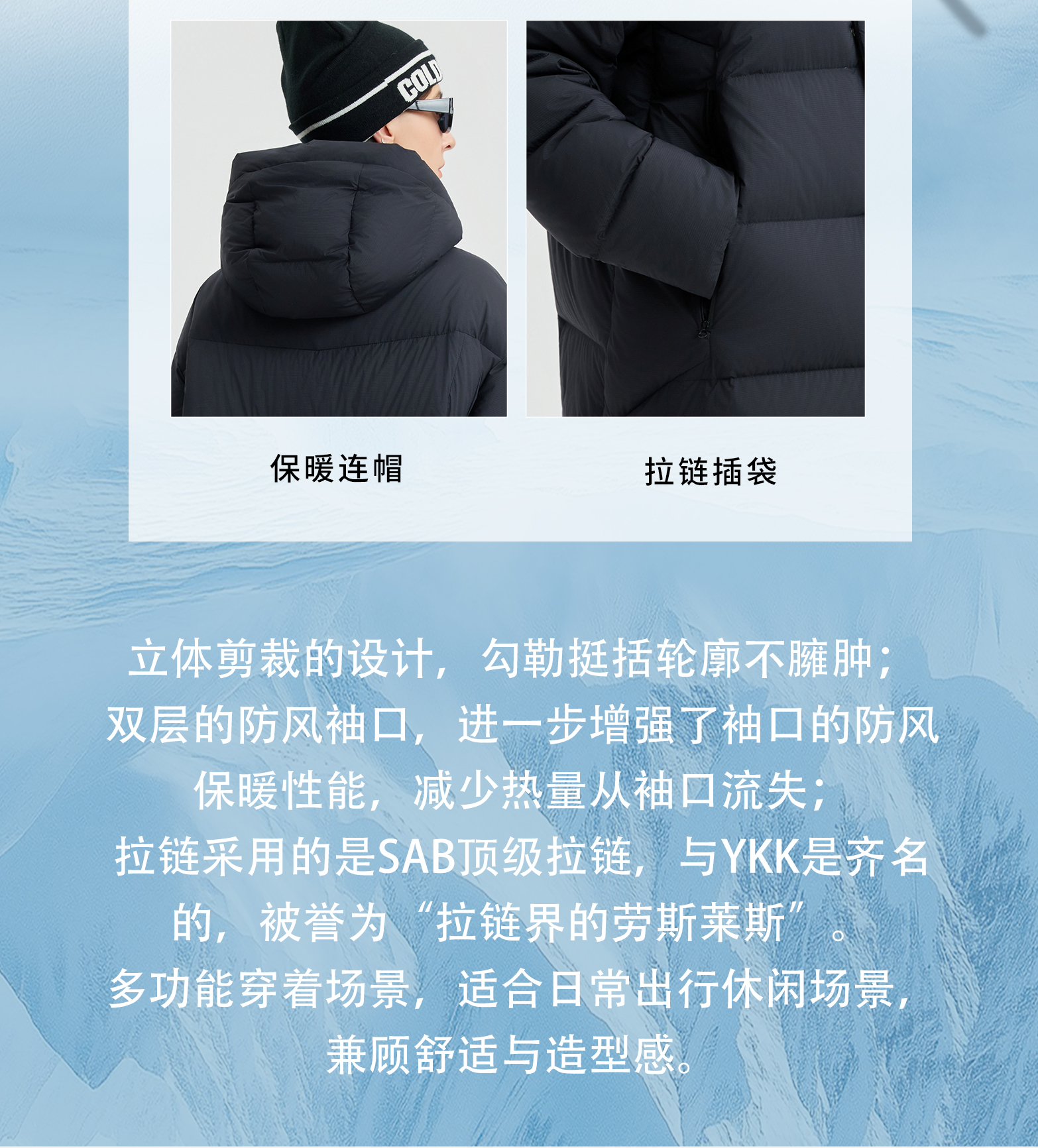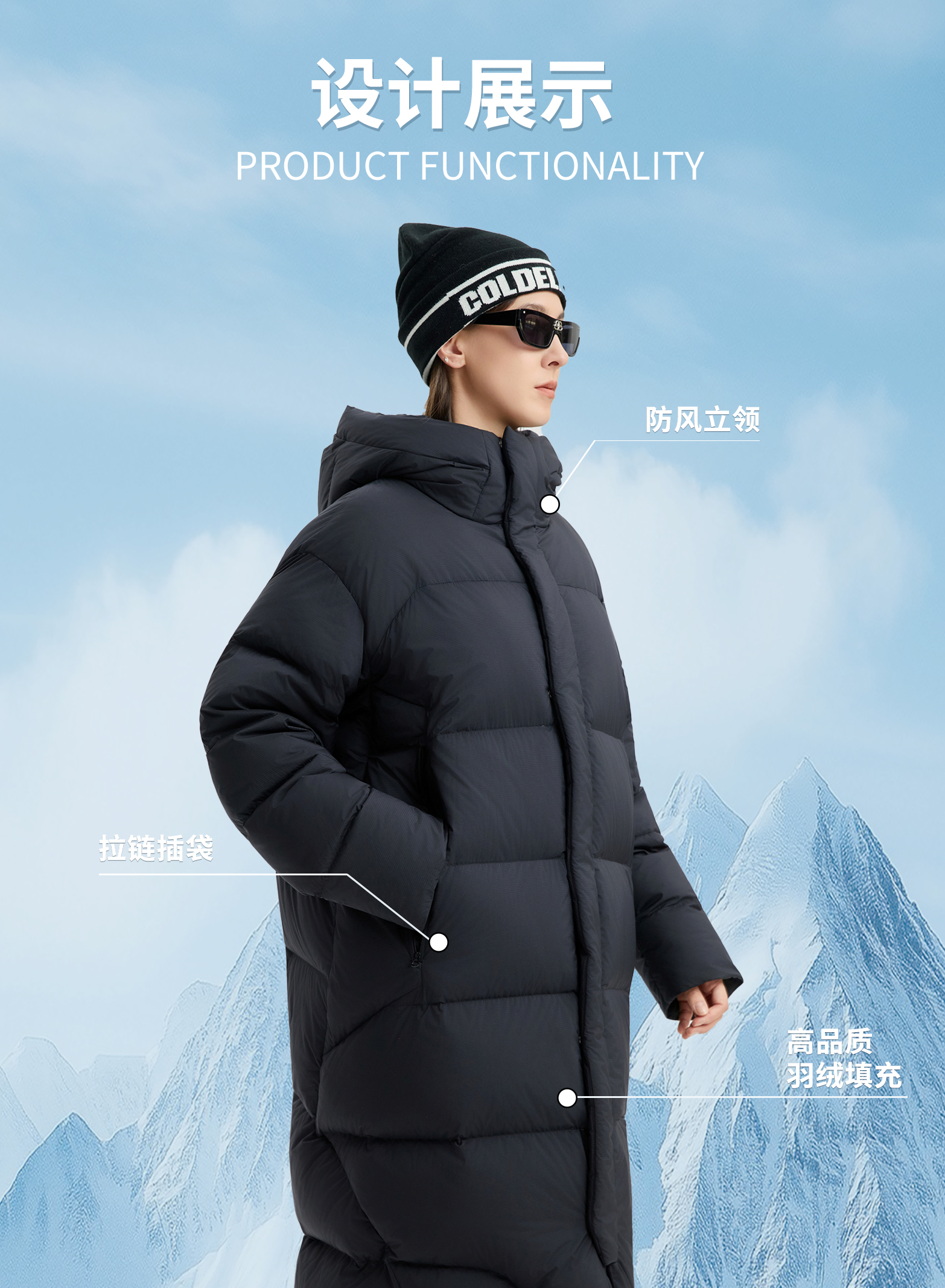 BENATRY贝纳川男女同款长款休闲保暖防风90绒立体裁剪羽绒服外套新款EGF405309402