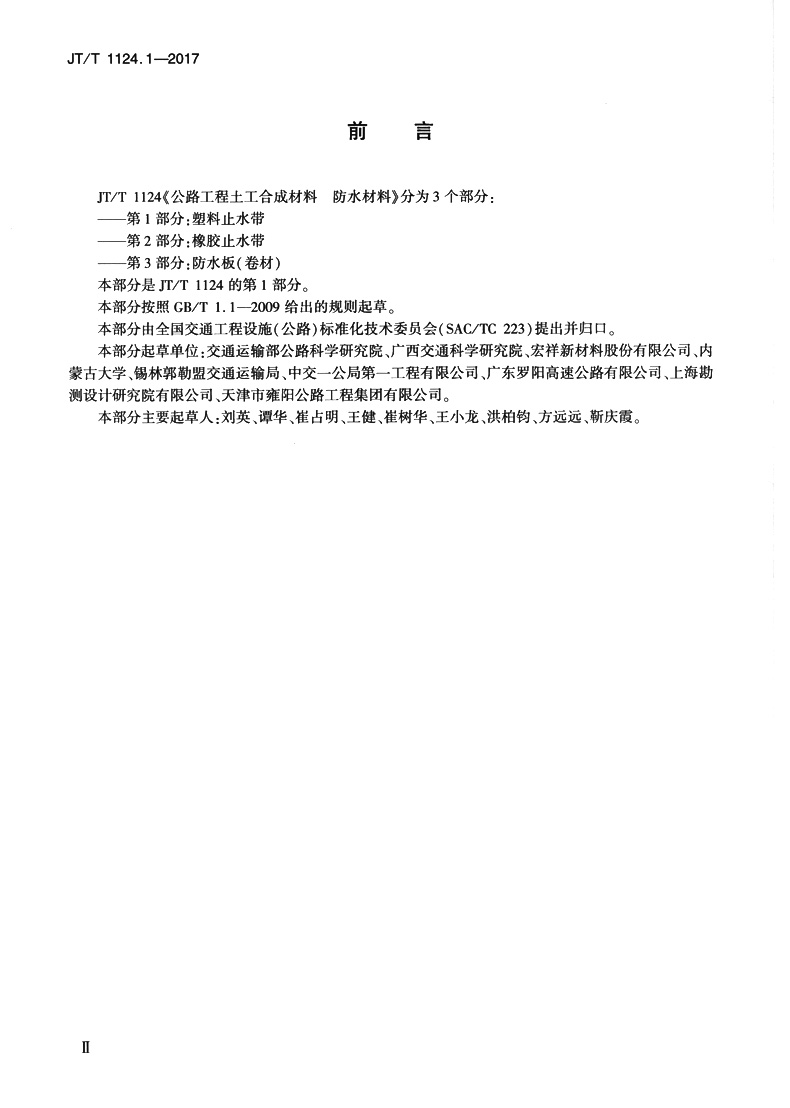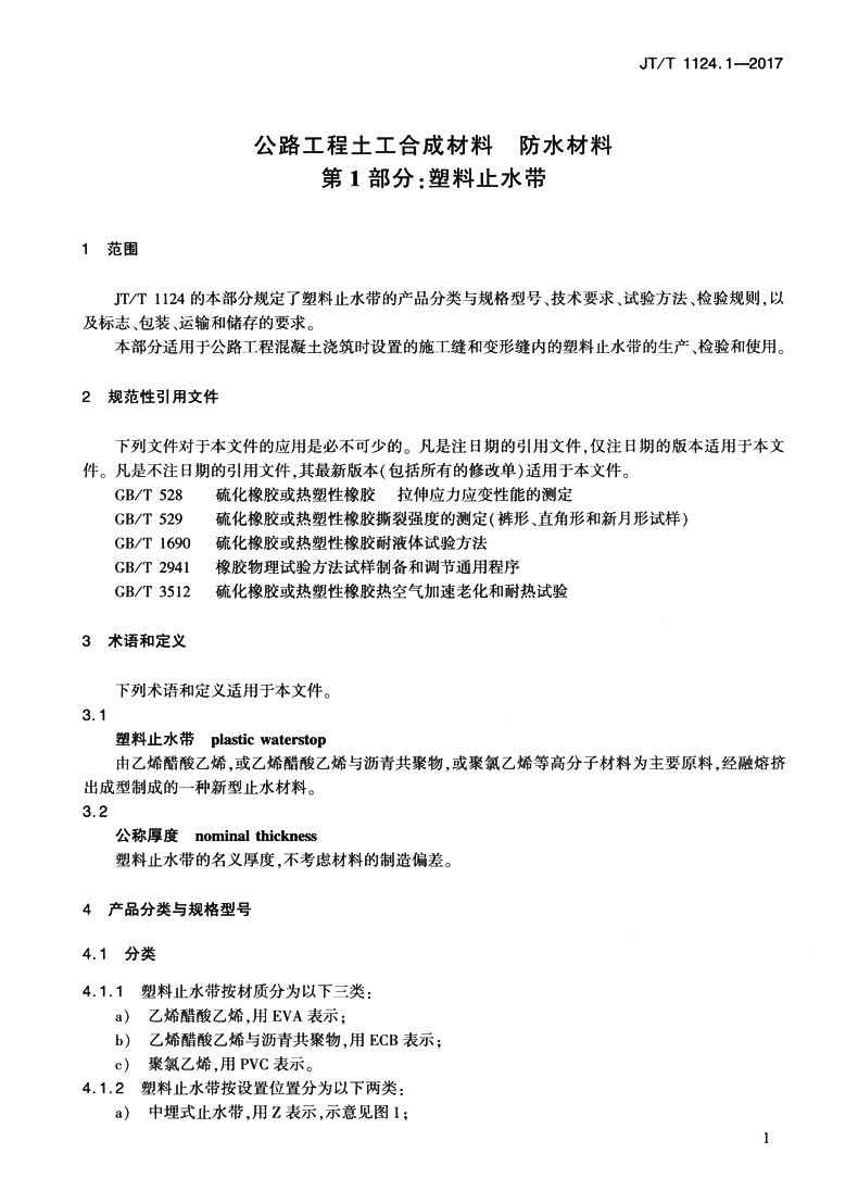 00正版现货 JT/T 1124.1-2017公路工程土工合成材料 防水材料 第1部分 塑料止水带 中华人民共和国交通运输行业标准 公路