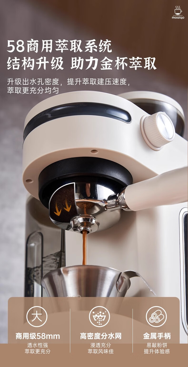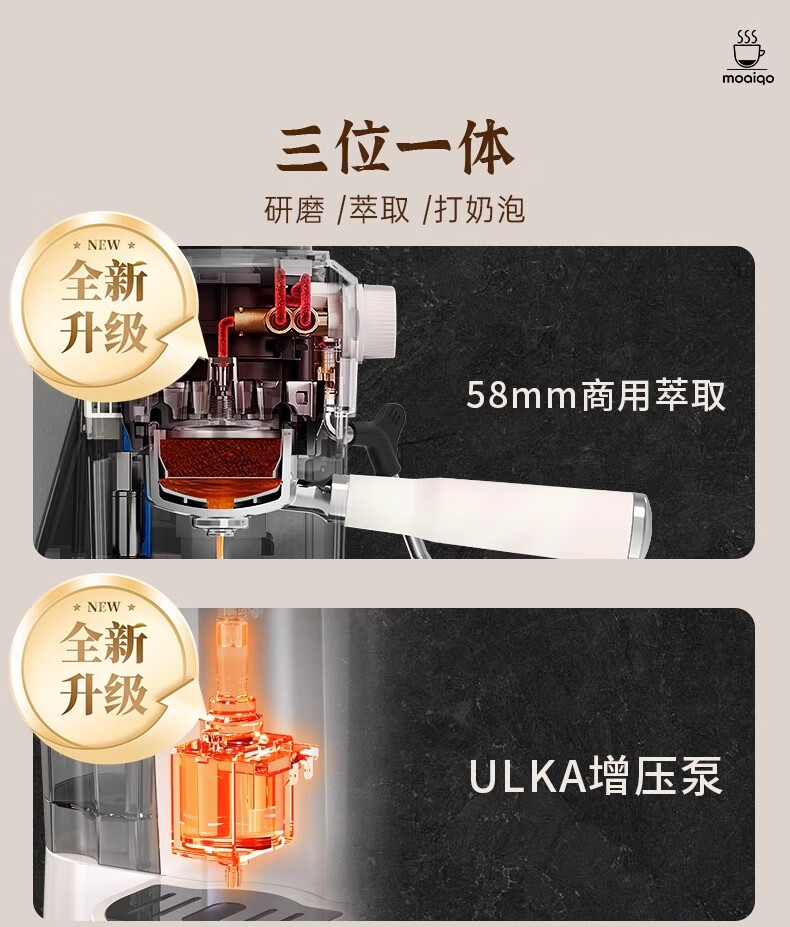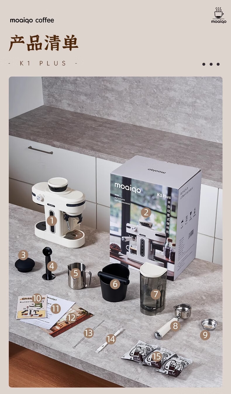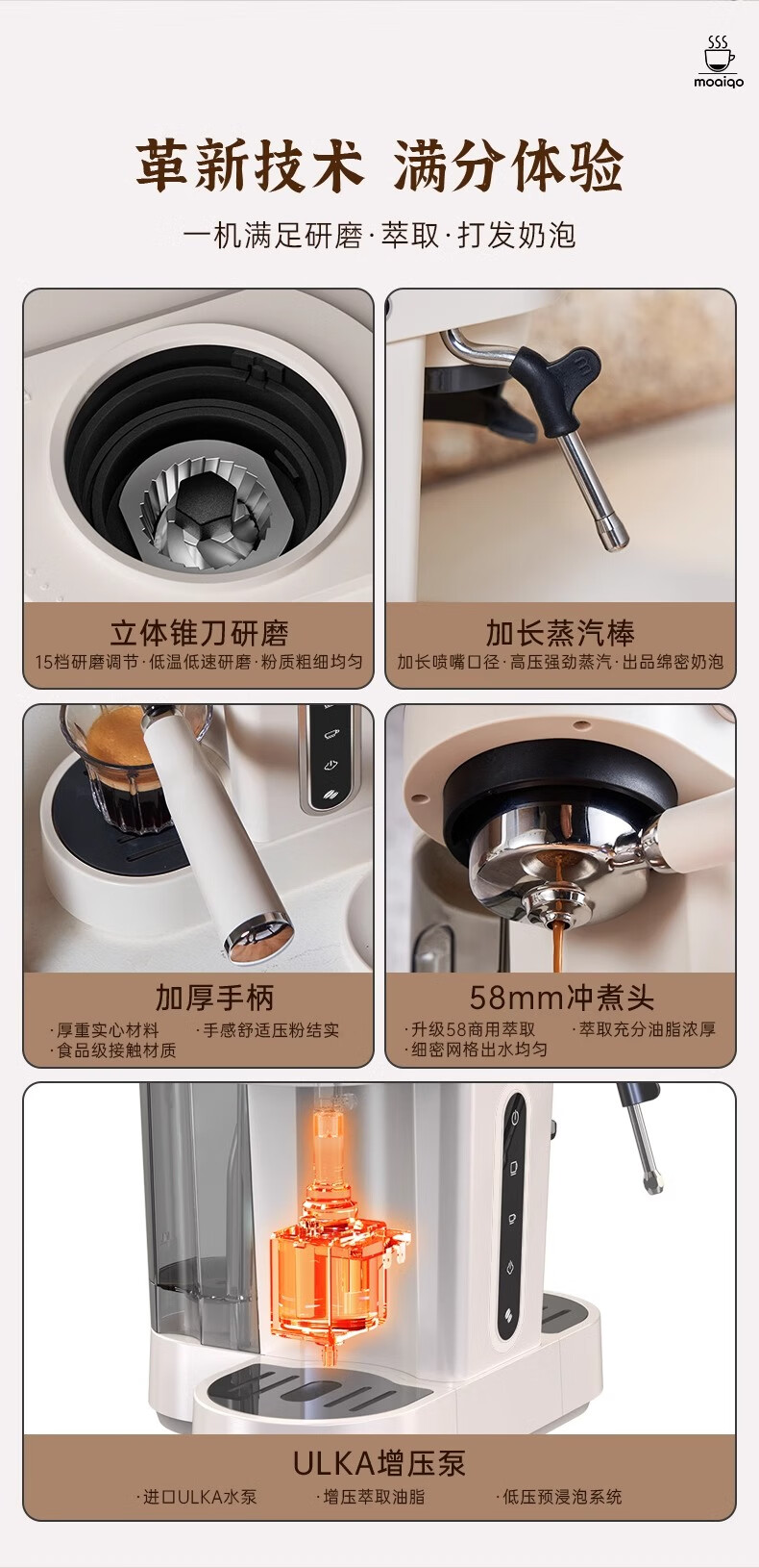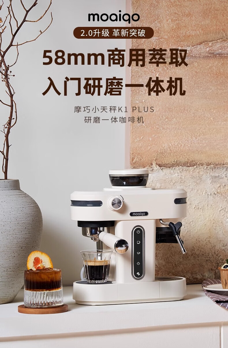 MOAIQO 摩巧咖啡机家用意式半自动研磨一体机萃取商用小型办公室浓缩奶泡防飞粉小天秤K1 PLUS 【全新升级】58mm家商用萃取/多维精磨