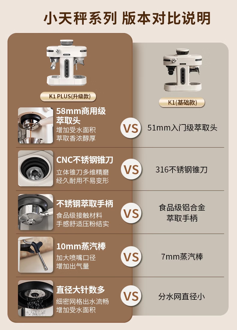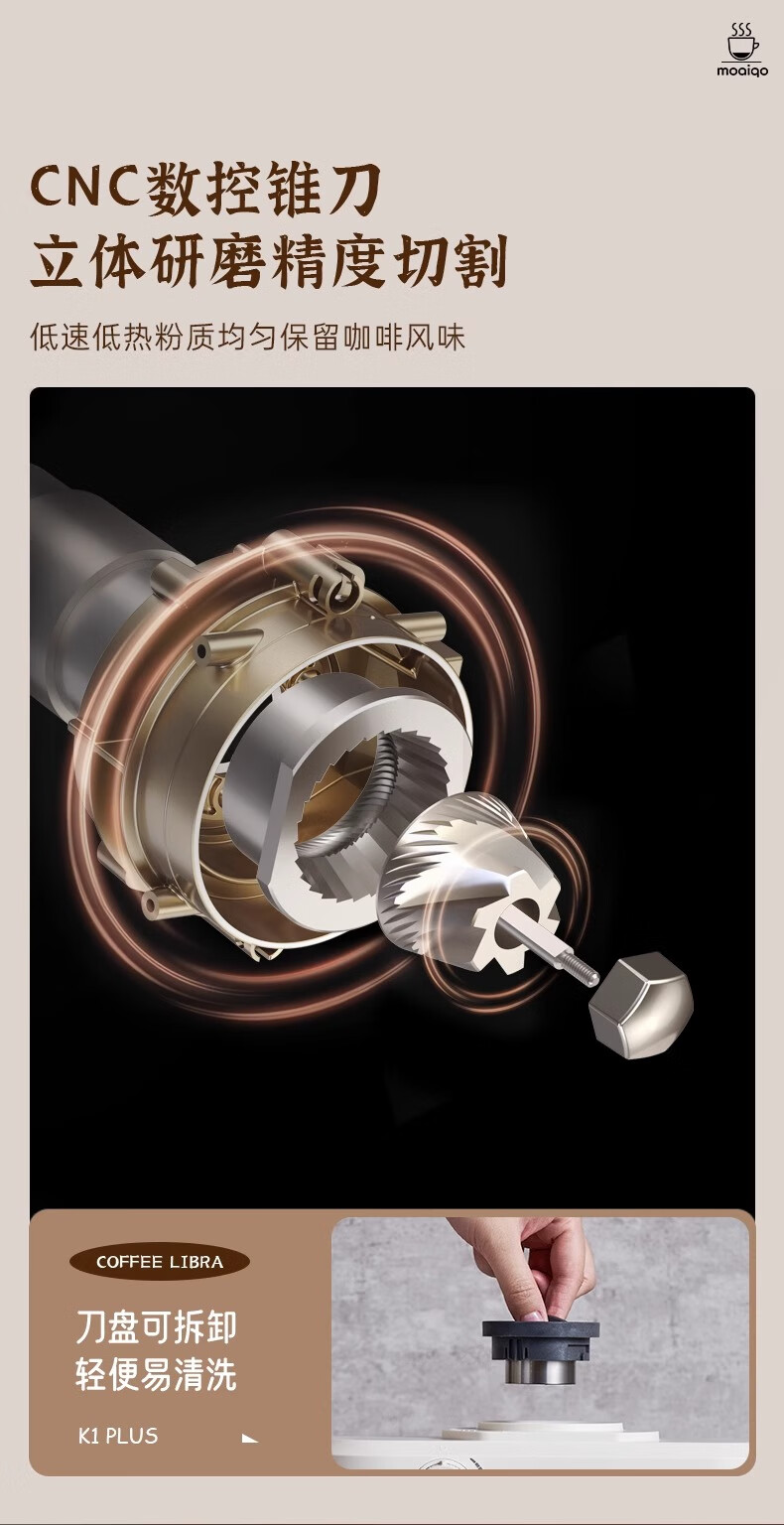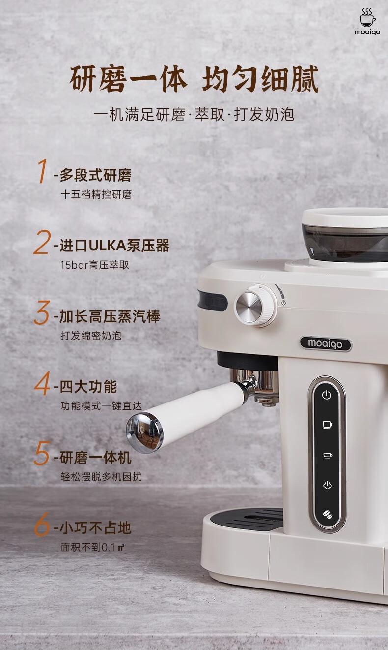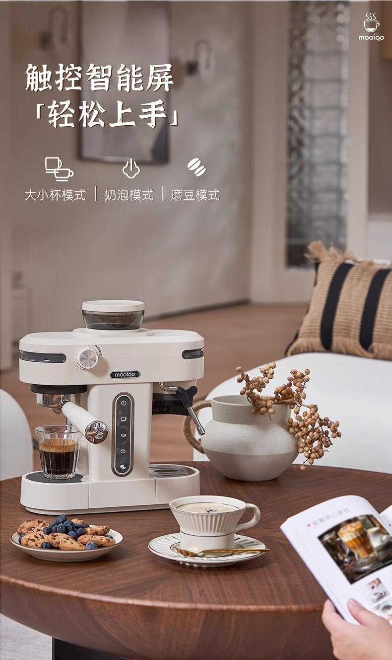 MOAIQO 摩巧咖啡机家用意式半自动研磨一体机萃取商用小型办公室浓缩奶泡防飞粉小天秤K1 PLUS 【全新升级】58mm家商用萃取/多维精磨