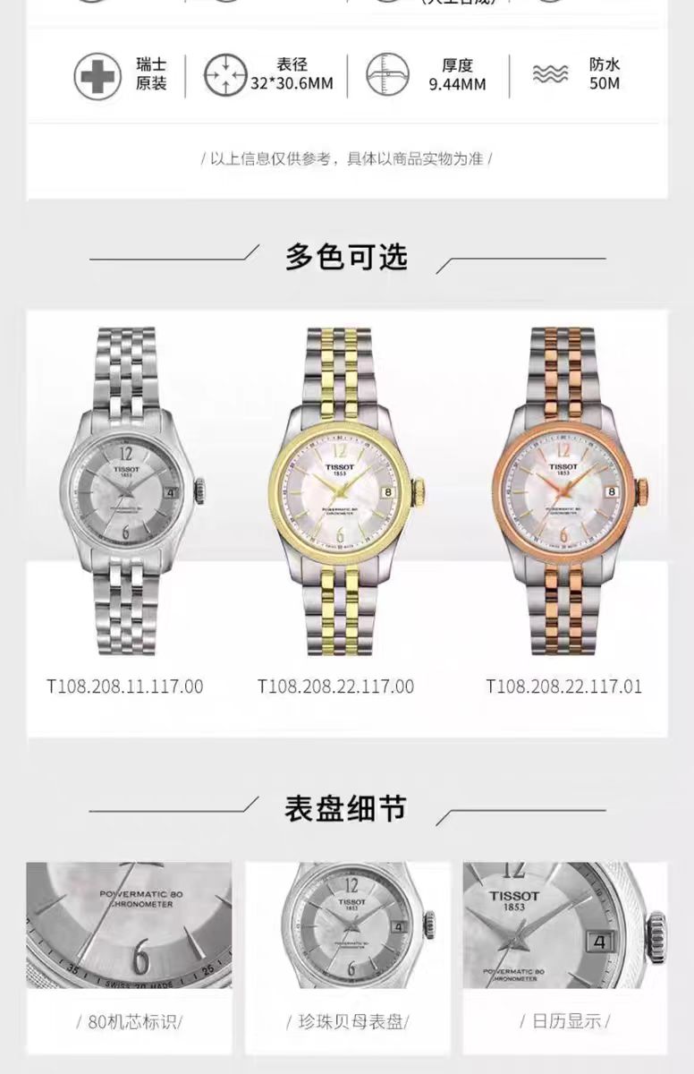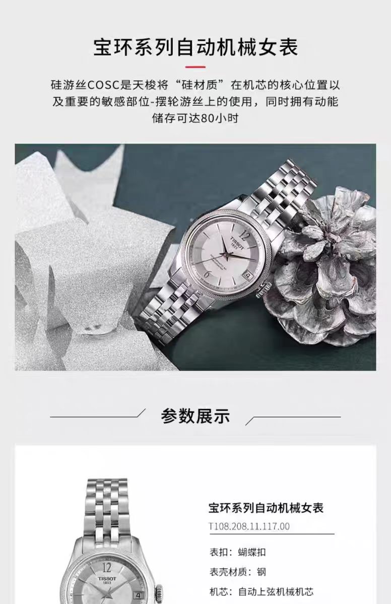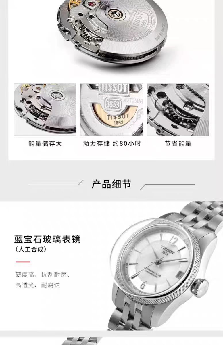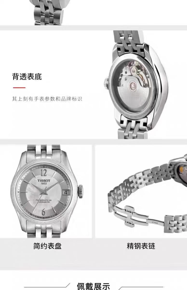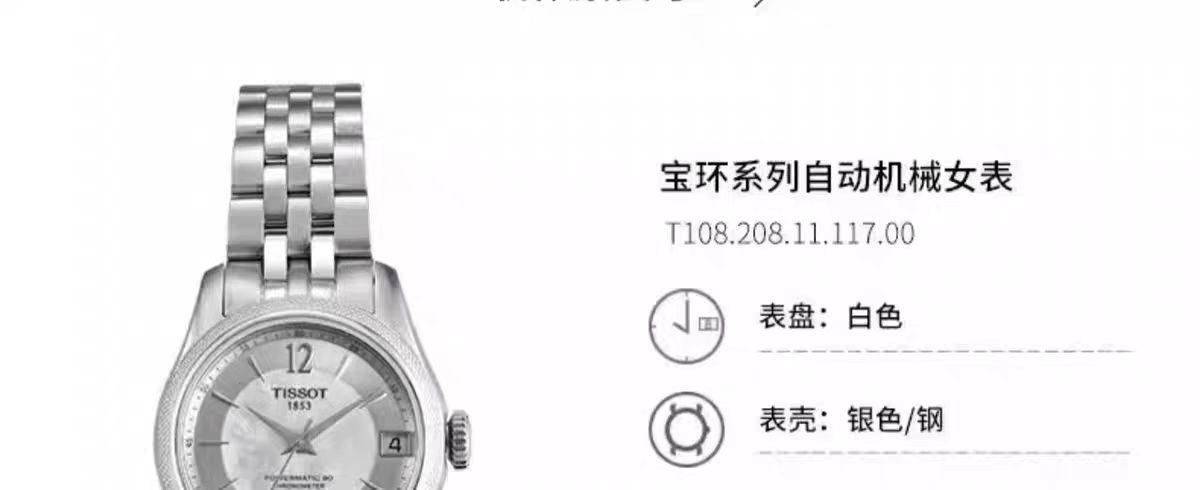 1F【天梭】TISSOT天梭宝环系列天文台认证钢带80机芯机械腕表