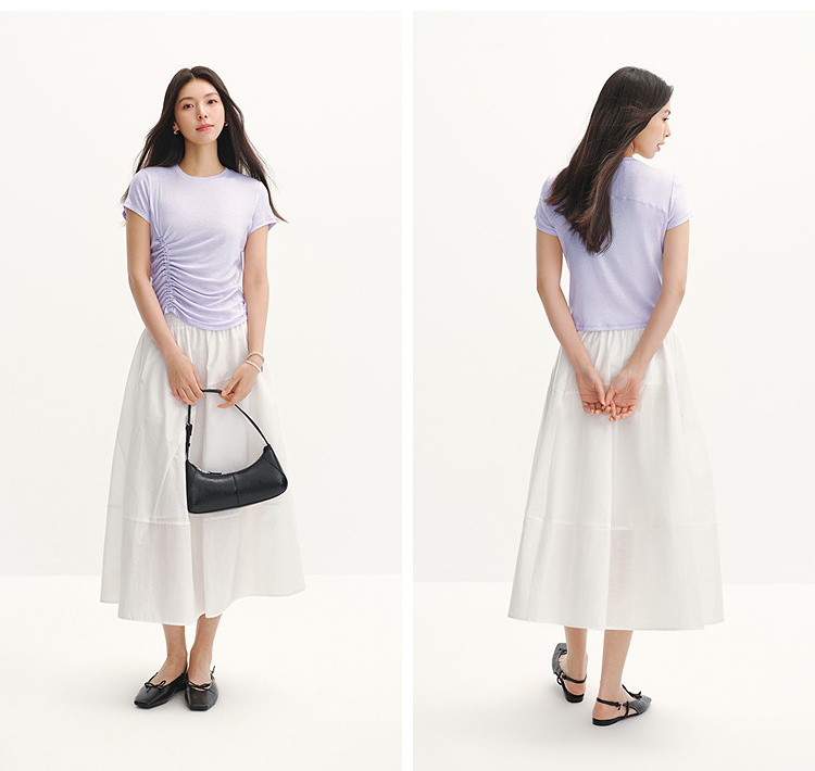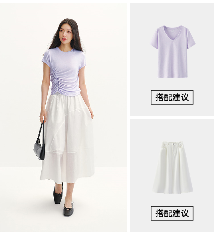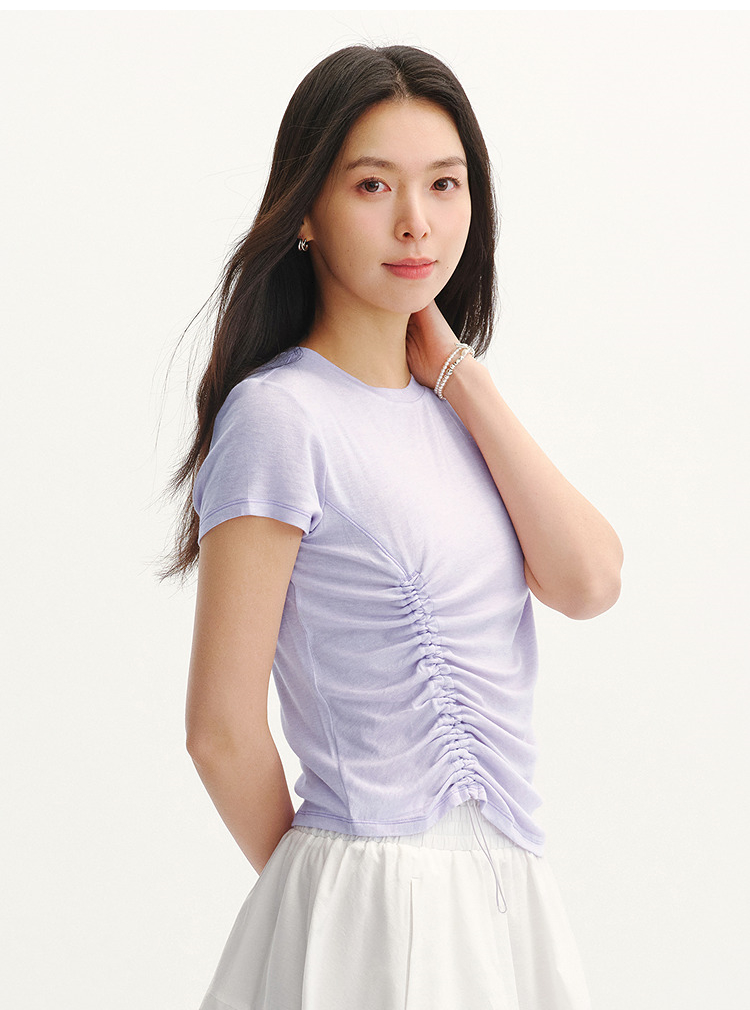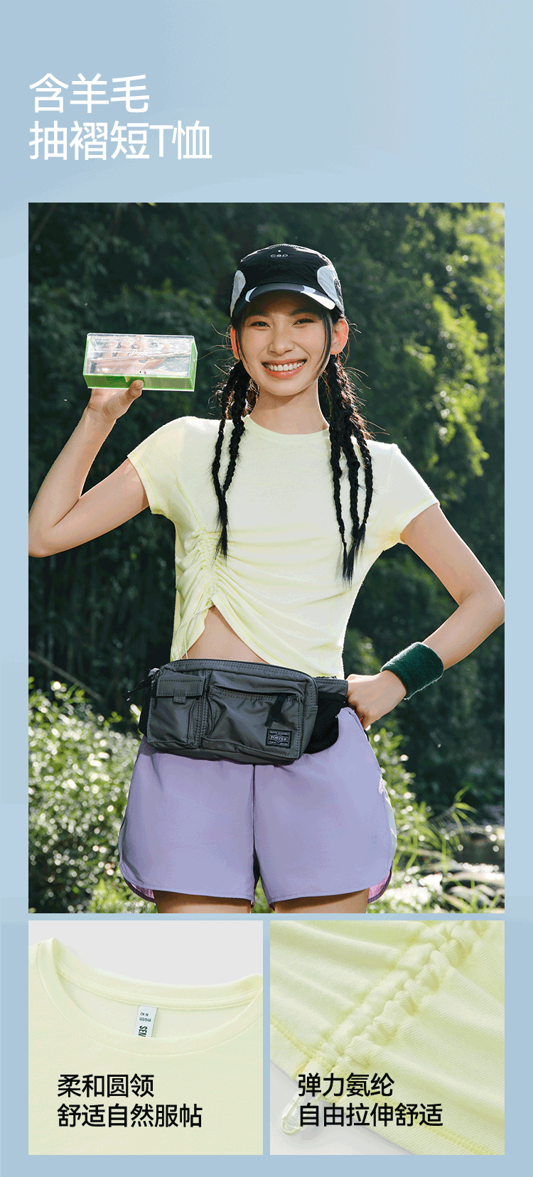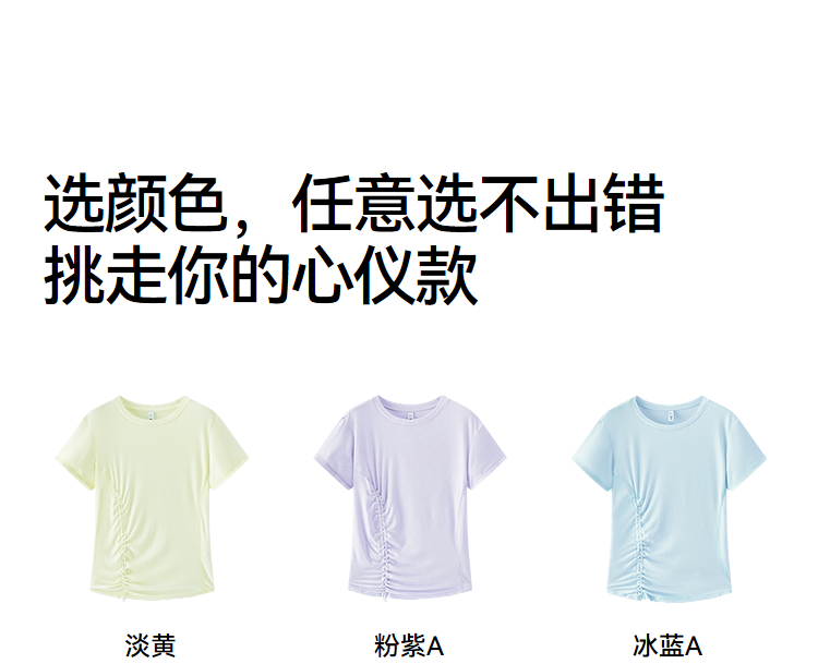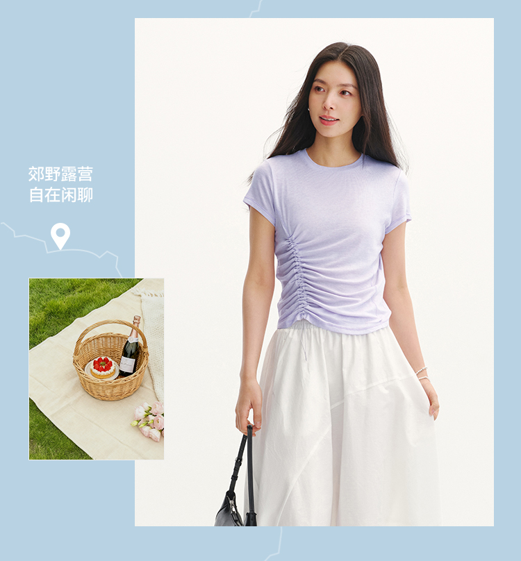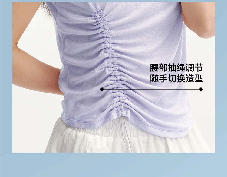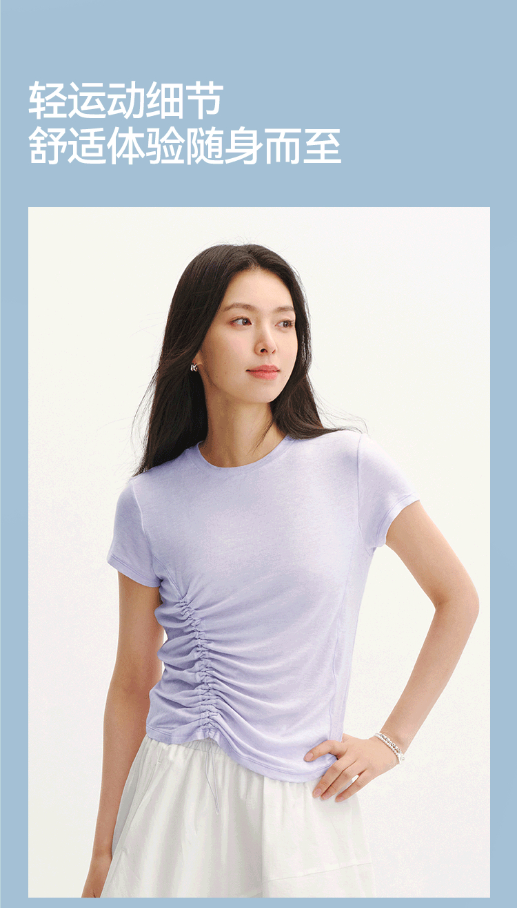 森马短袖T恤女夏季短款抽绳褶皱纯色修身圆领2026新款温柔系衣服