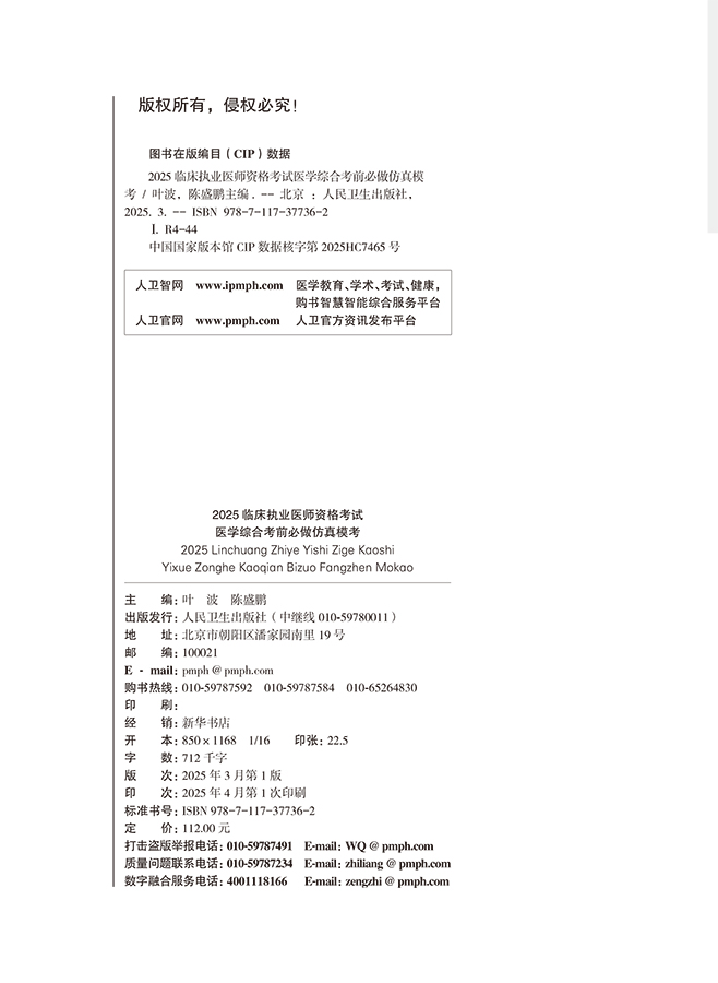 2025临床执业医师资格考试医学综合考前必做仿真模考 叶波 陈盛鹏编 2025执业医师 医师资格考试用书 9787117377362人民卫生出版社