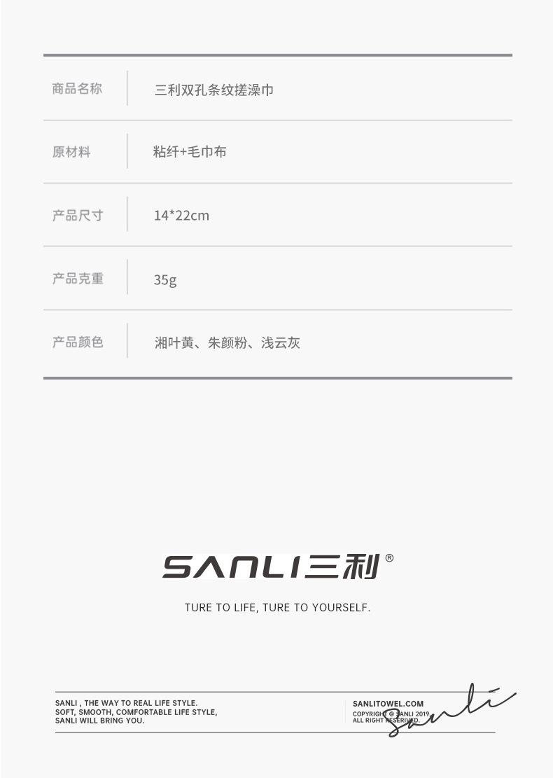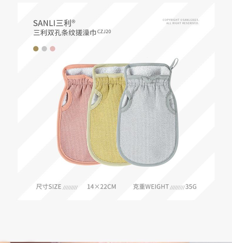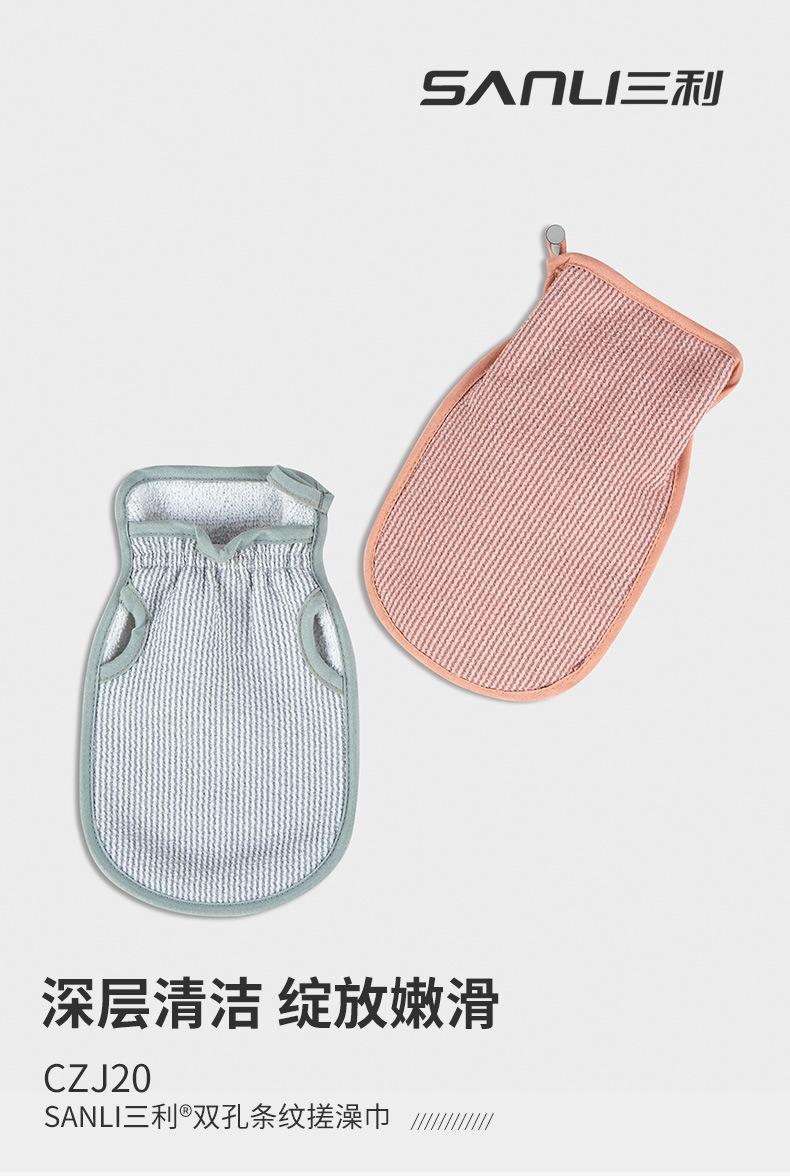 三利毛巾新款双孔搓背搓澡巾洗澡巾搓泥搓澡神器加厚海绵沐浴手套