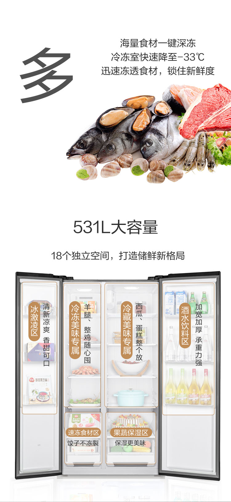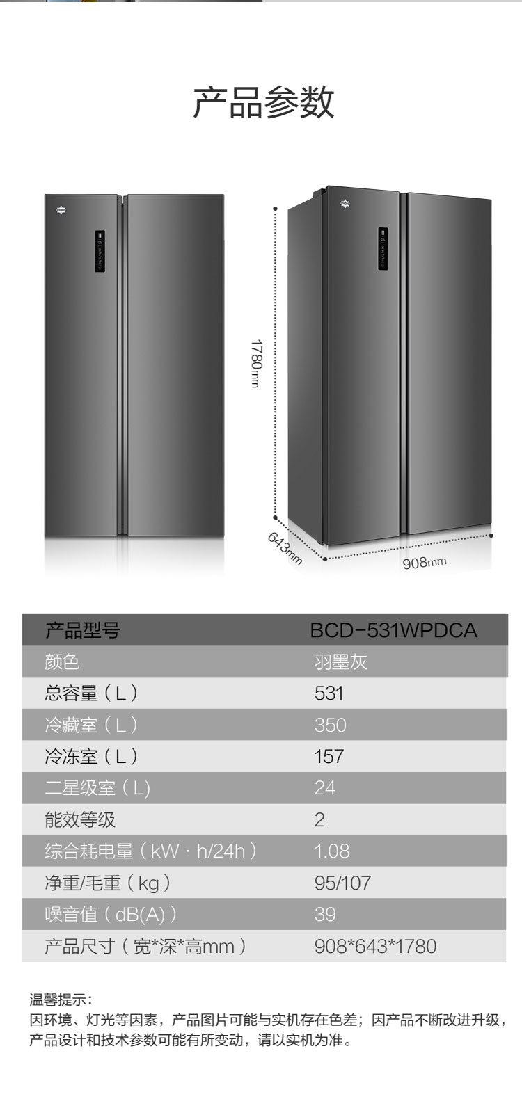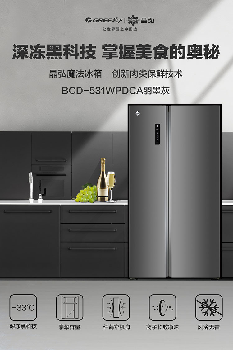 晶弘·对开门冰箱 531L BCD-531WPDCA /羽墨灰