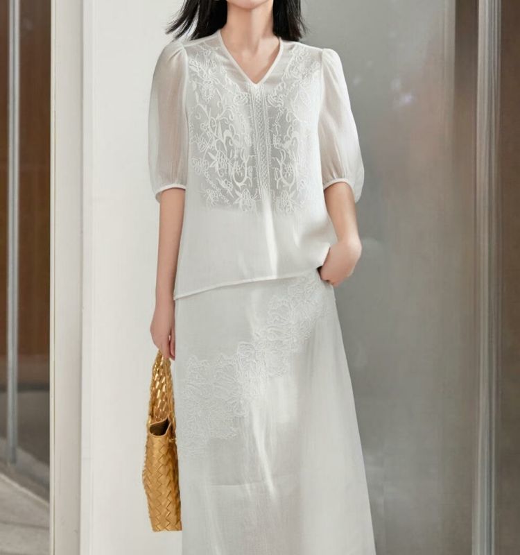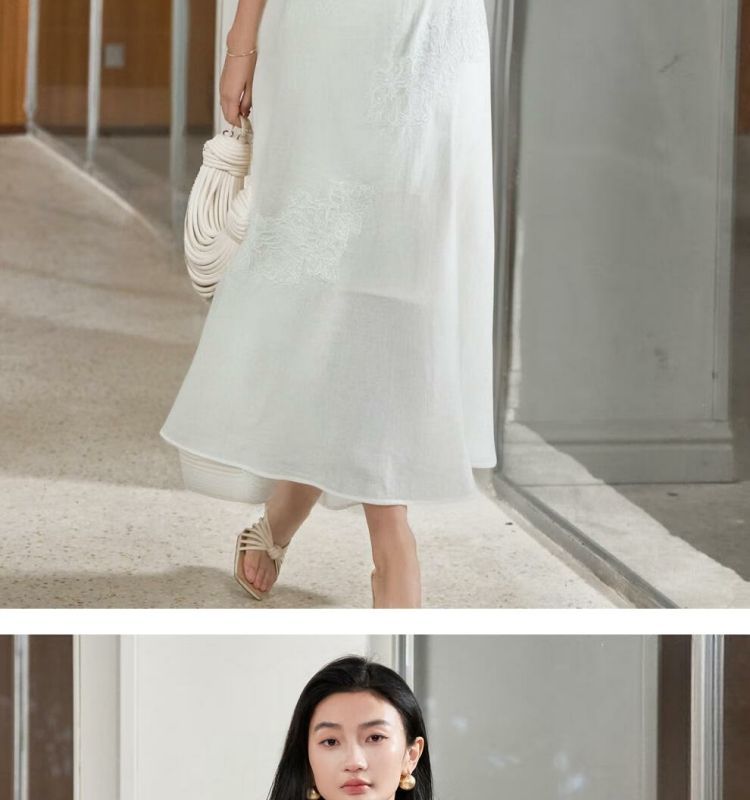 米思阳2025夏季新款呼吸感苎麻拼接蕾丝衬衫亚麻半裙套装5M25BG3630