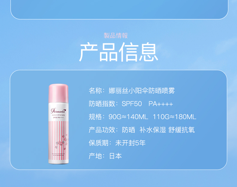 日本娜丽丝防晒(防晒喷雾180ml/瓶、防晒霜40g/支)