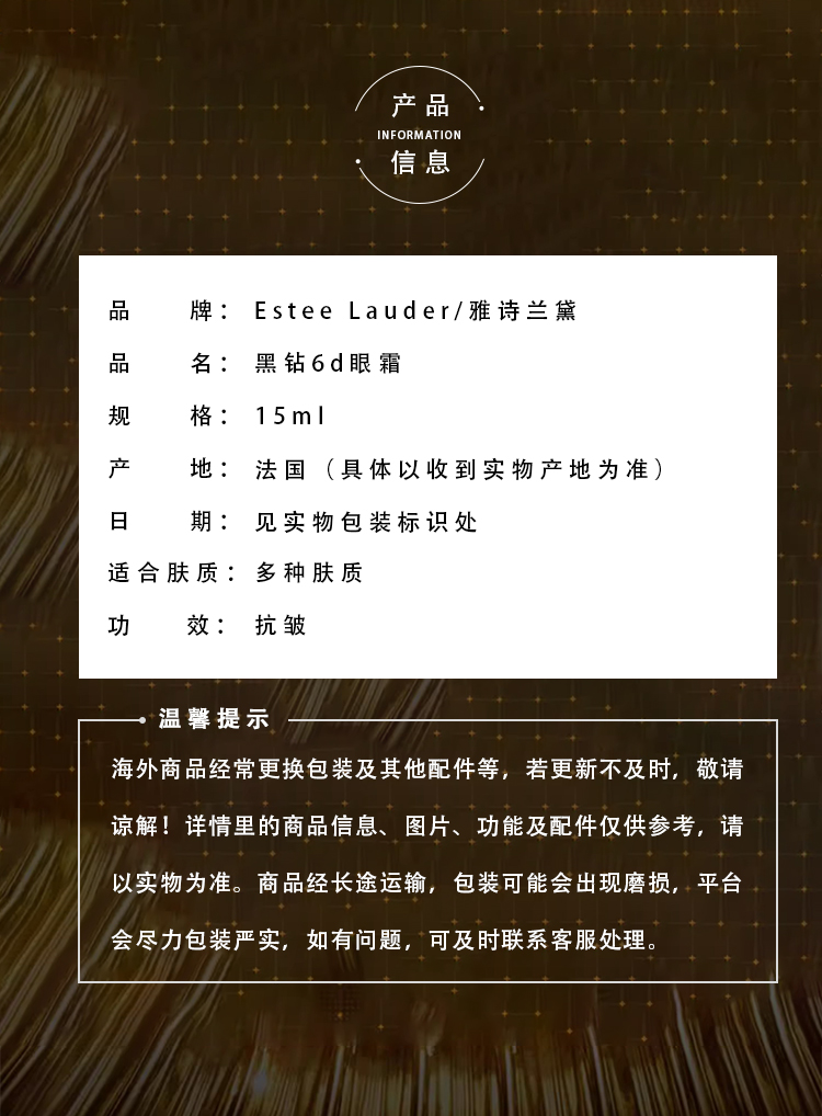 雅诗兰黛白金6D黑钻眼霜15ml 淡纹单泪沟抗皱紧致提拉(CDF)