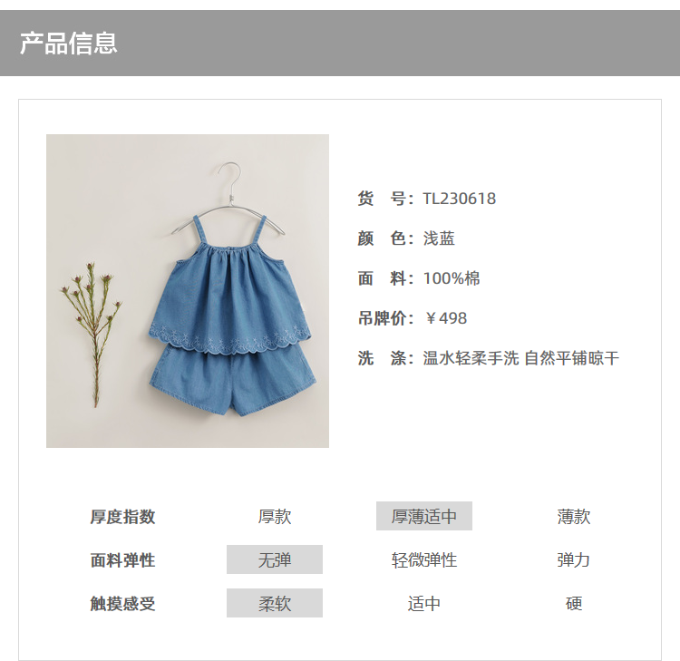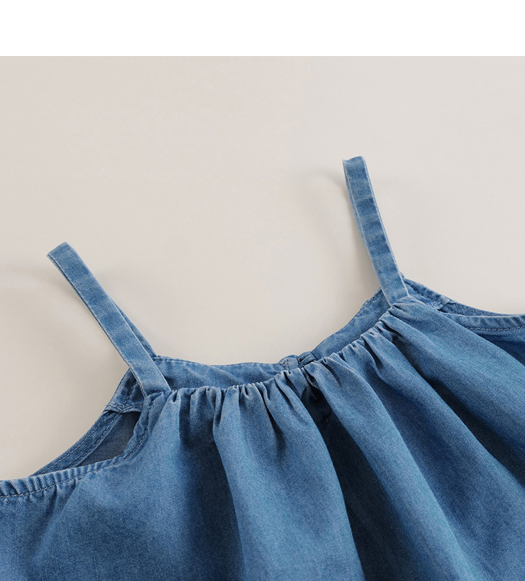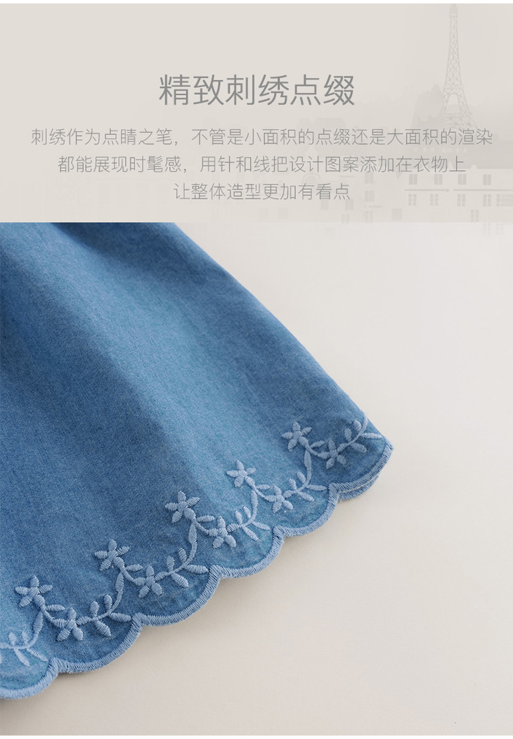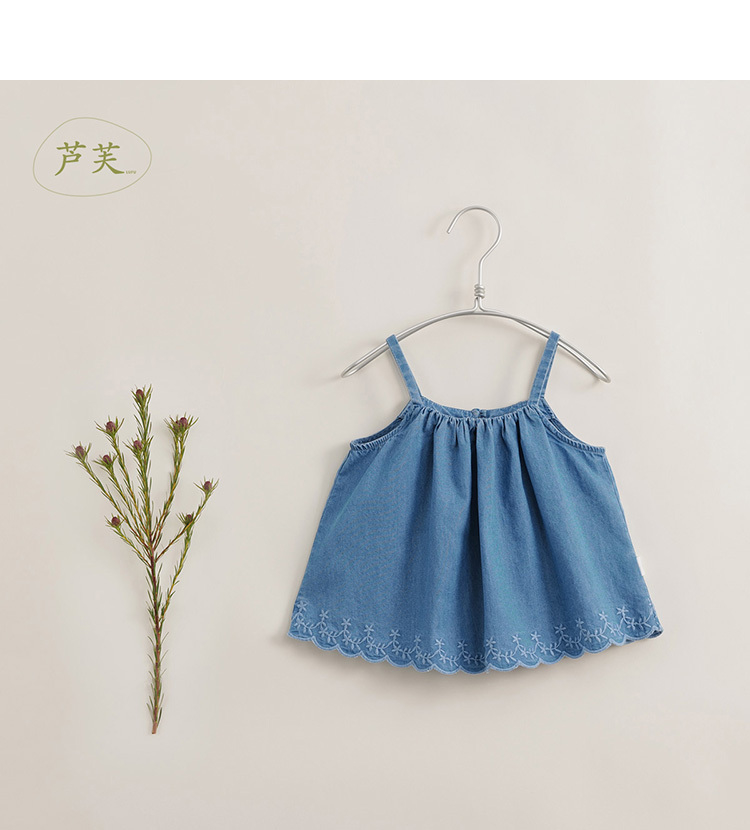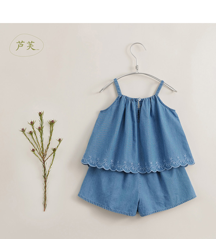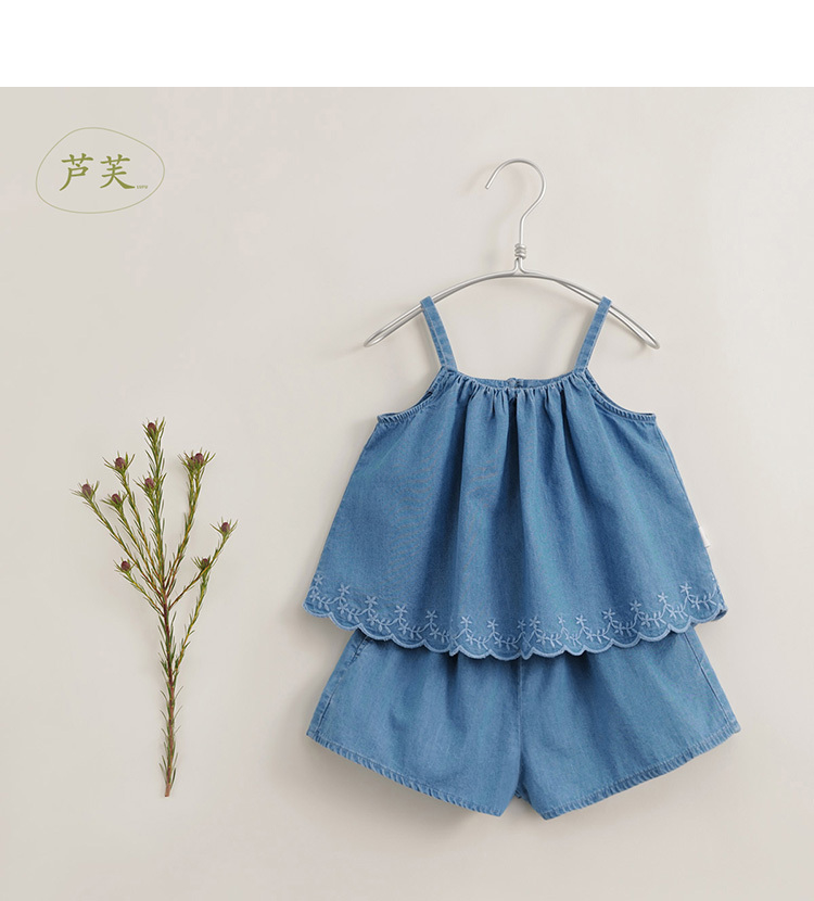 【马克珍妮 芦芙】新款夏装 女童绣花纯棉牛仔吊带套装230618