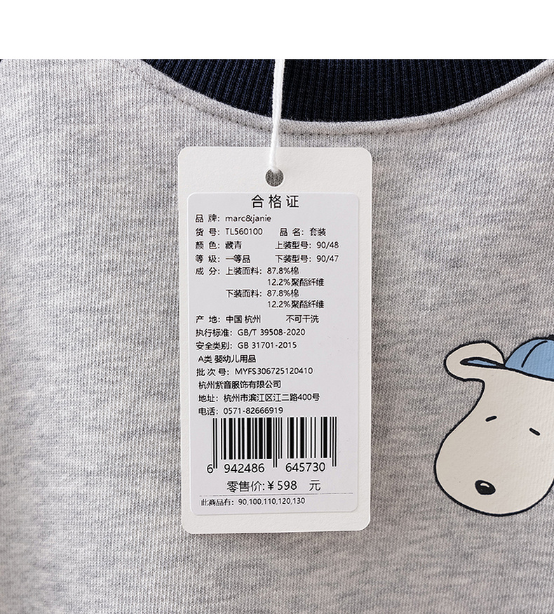 马克珍妮旅行小狗男童拼色卫衣套装2026年春装新款560100