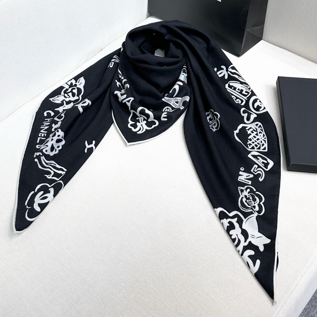 秋冬特惠💰430 香奈儿新款围巾【丝毛双面同色印花】