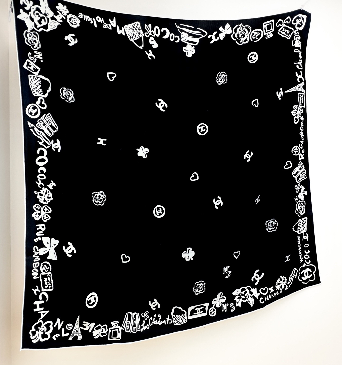 由各种香水瓶、山茶花、双C等香家原素组合而成