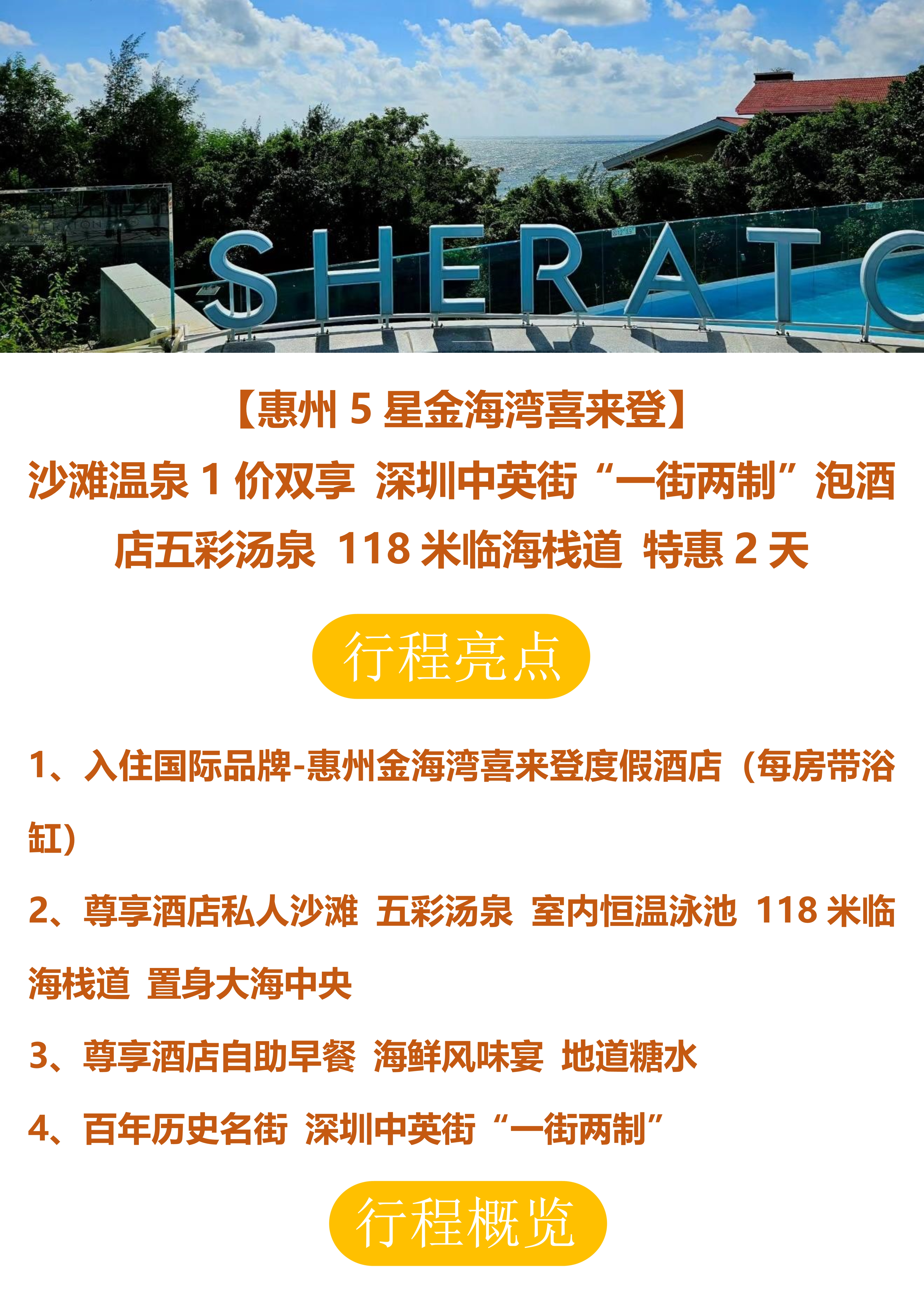 【惠州 5 星金海湾喜来登】特惠 2 天