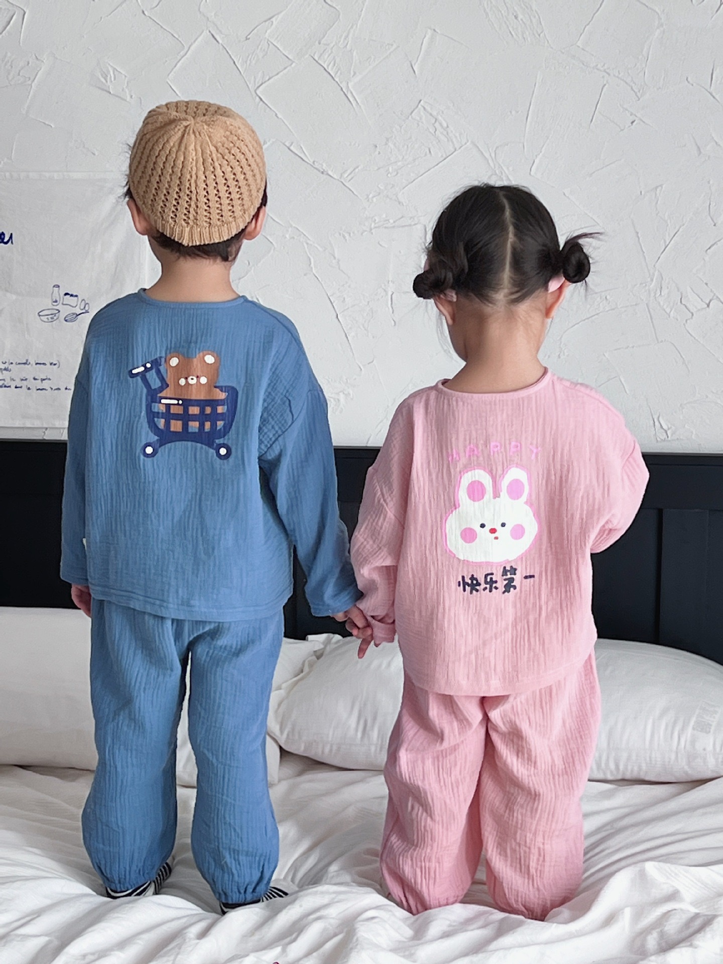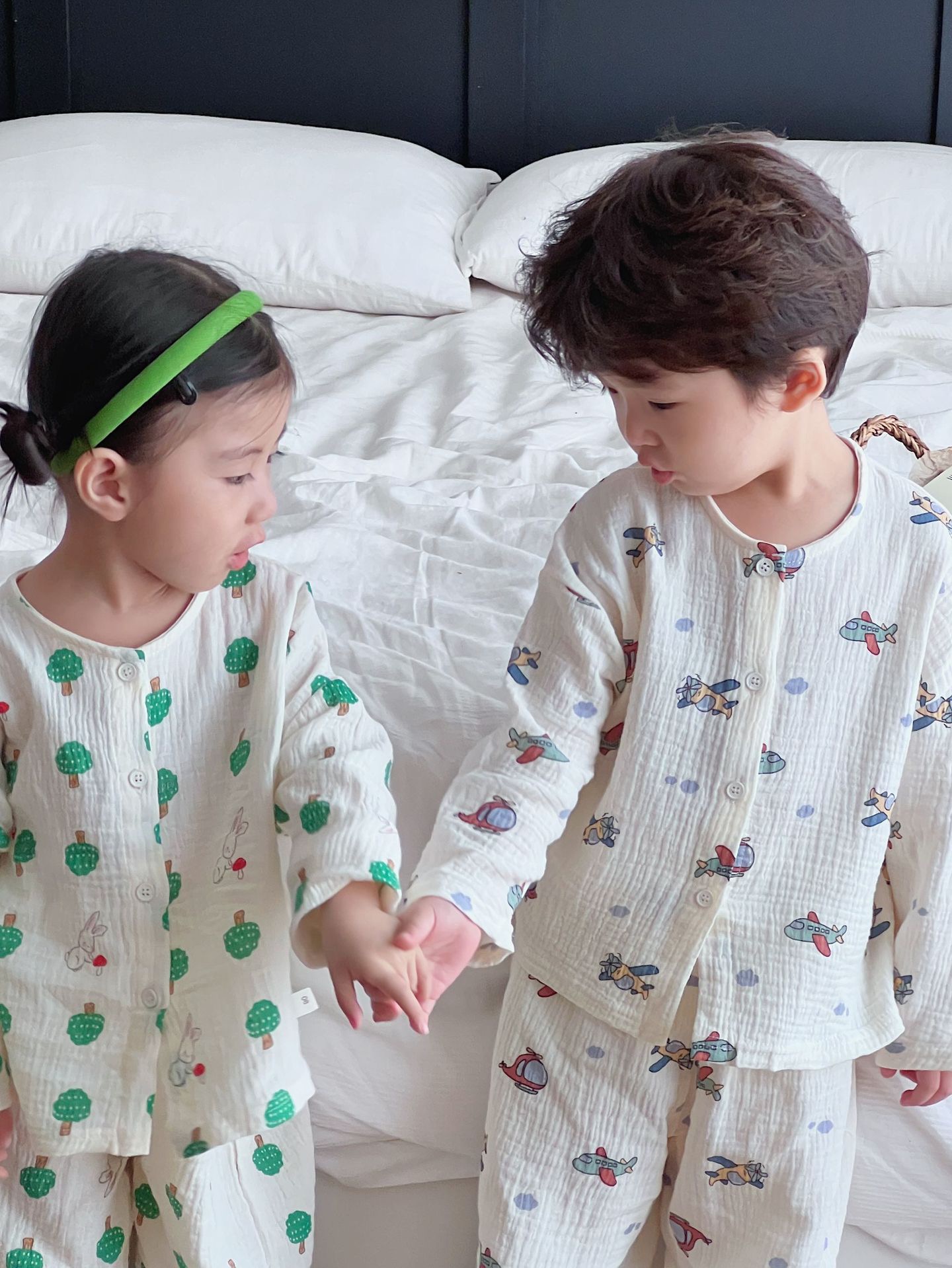 【YW】无忧购儿童韩版ins长袖棉纱家居服套装(截单后7天发货)