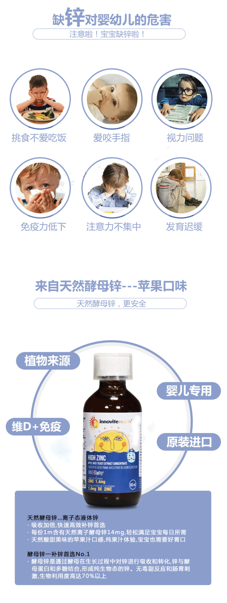 英珞维 新品加拿大进口天然离子锌滴剂 婴幼儿液体锌宝宝补锌60ml