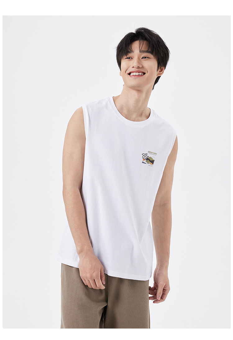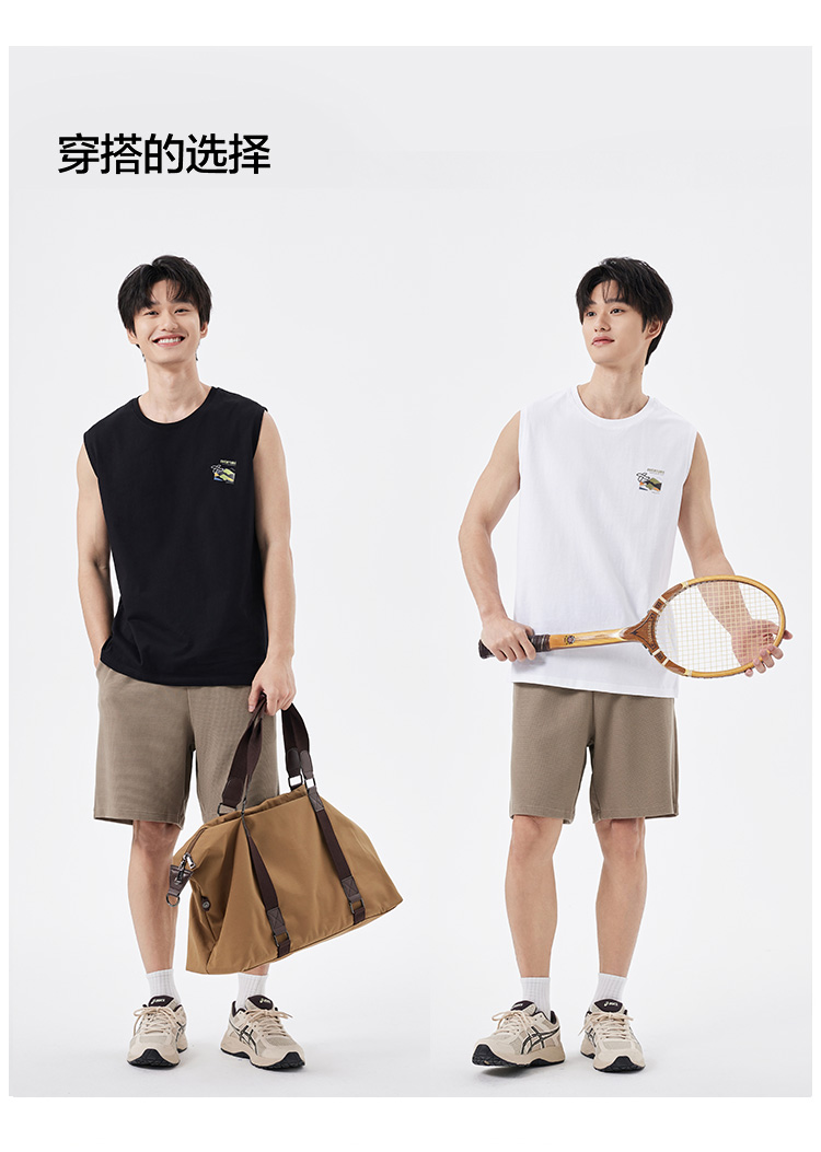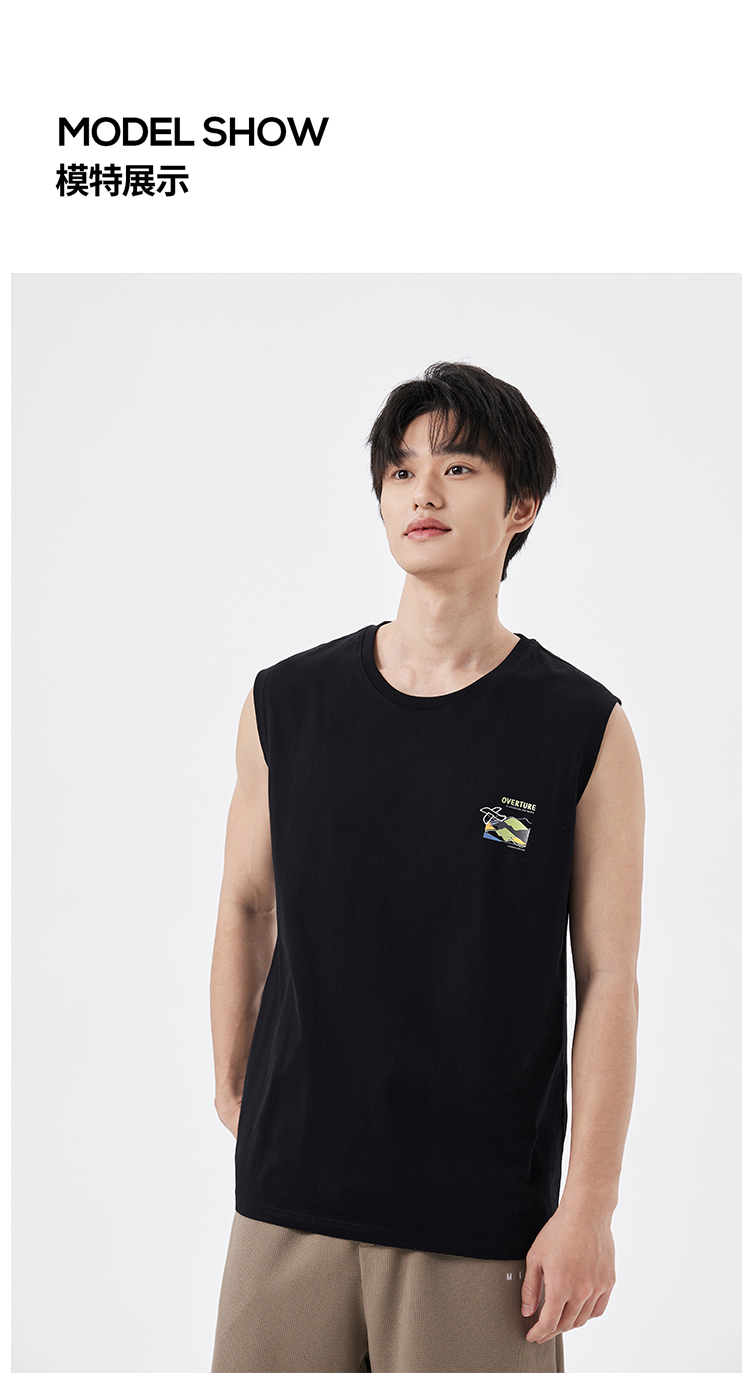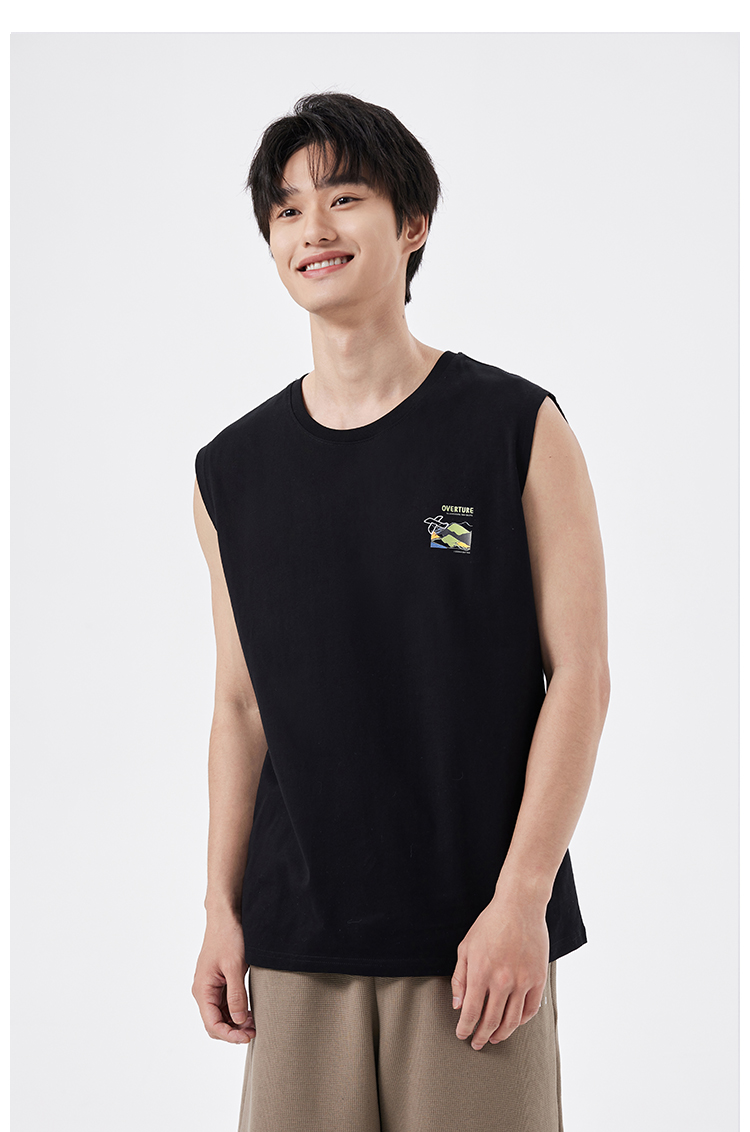 gxgjeans【100%棉】休闲户外男士无袖T恤25夏款简约百搭青少年背心K&C