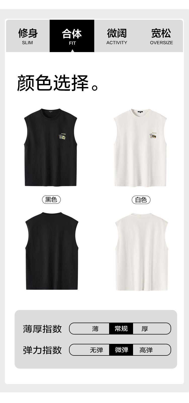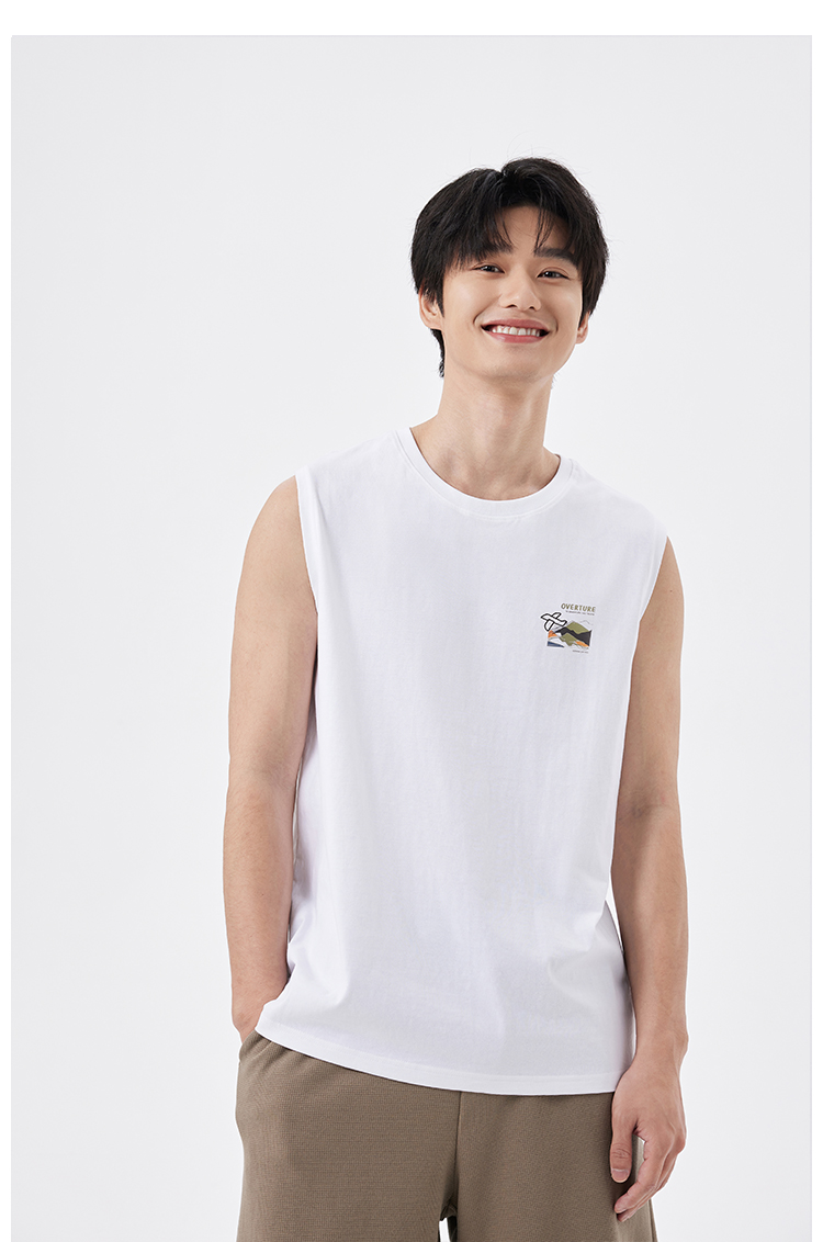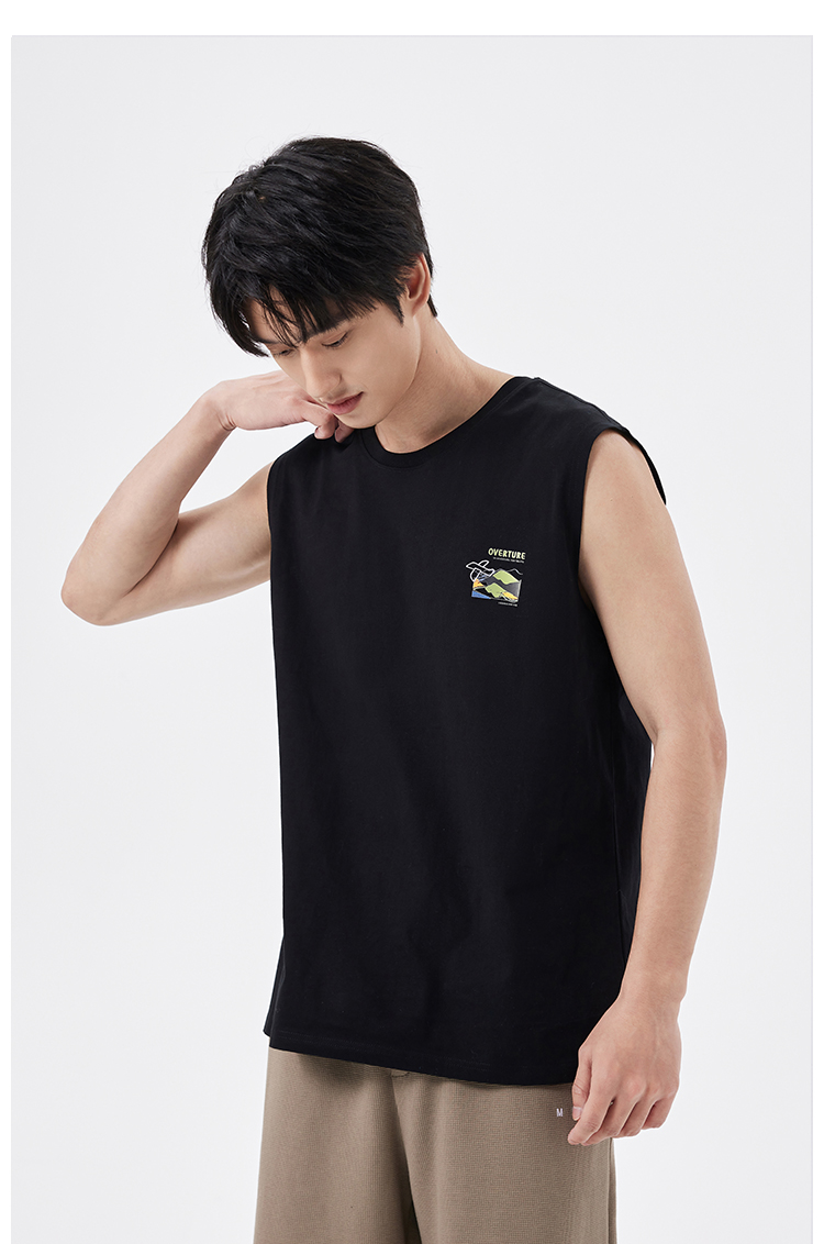 gxgjeans【100%棉】休闲户外男士无袖T恤25夏款简约百搭青少年背心K&C