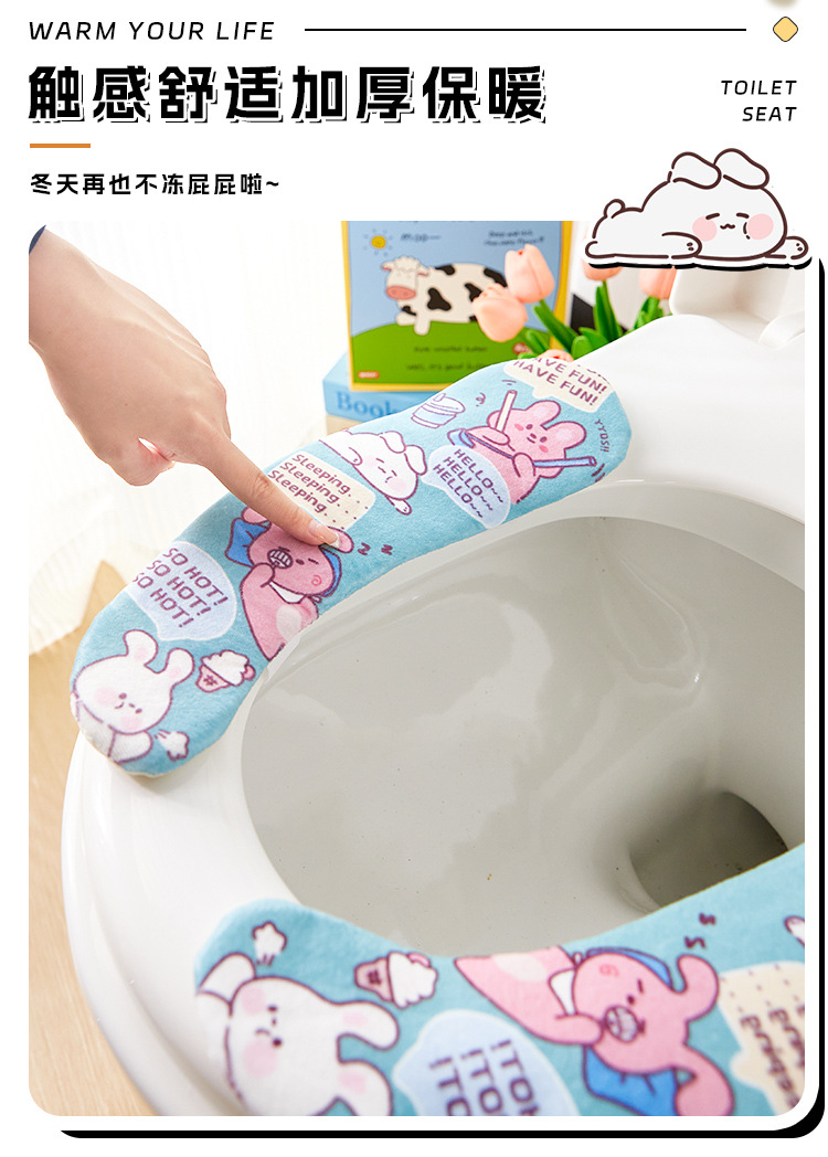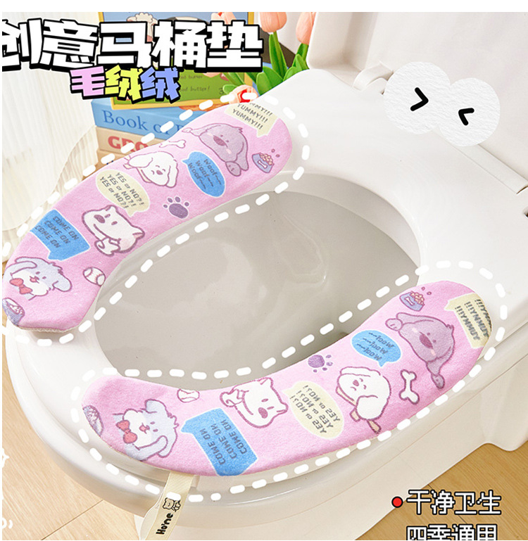 「四款可选!毛绒绒」马桶坐垫粘扣款四季通用坐便垫套居家日用耐脏可水洗冬季加厚马桶垫子